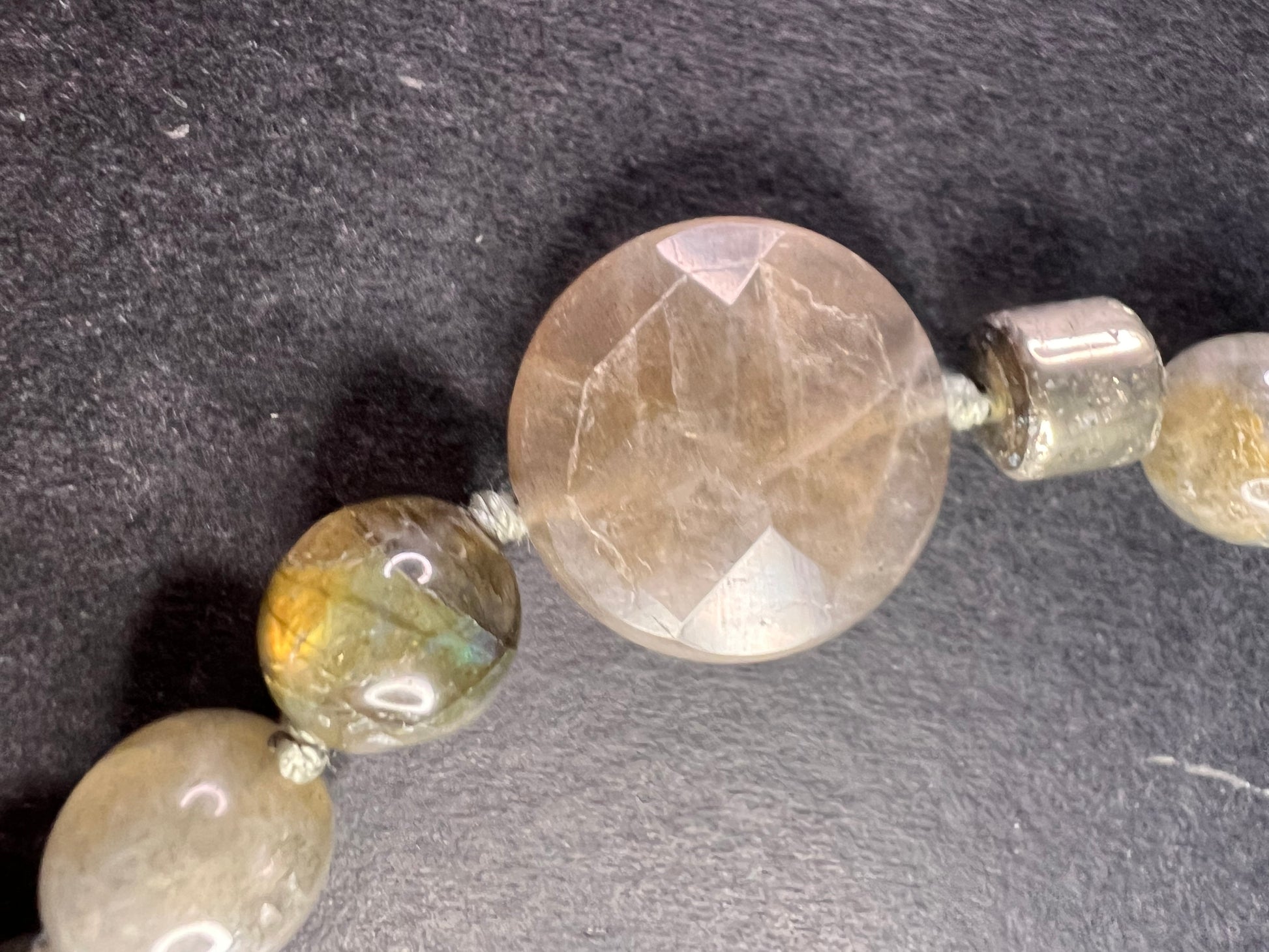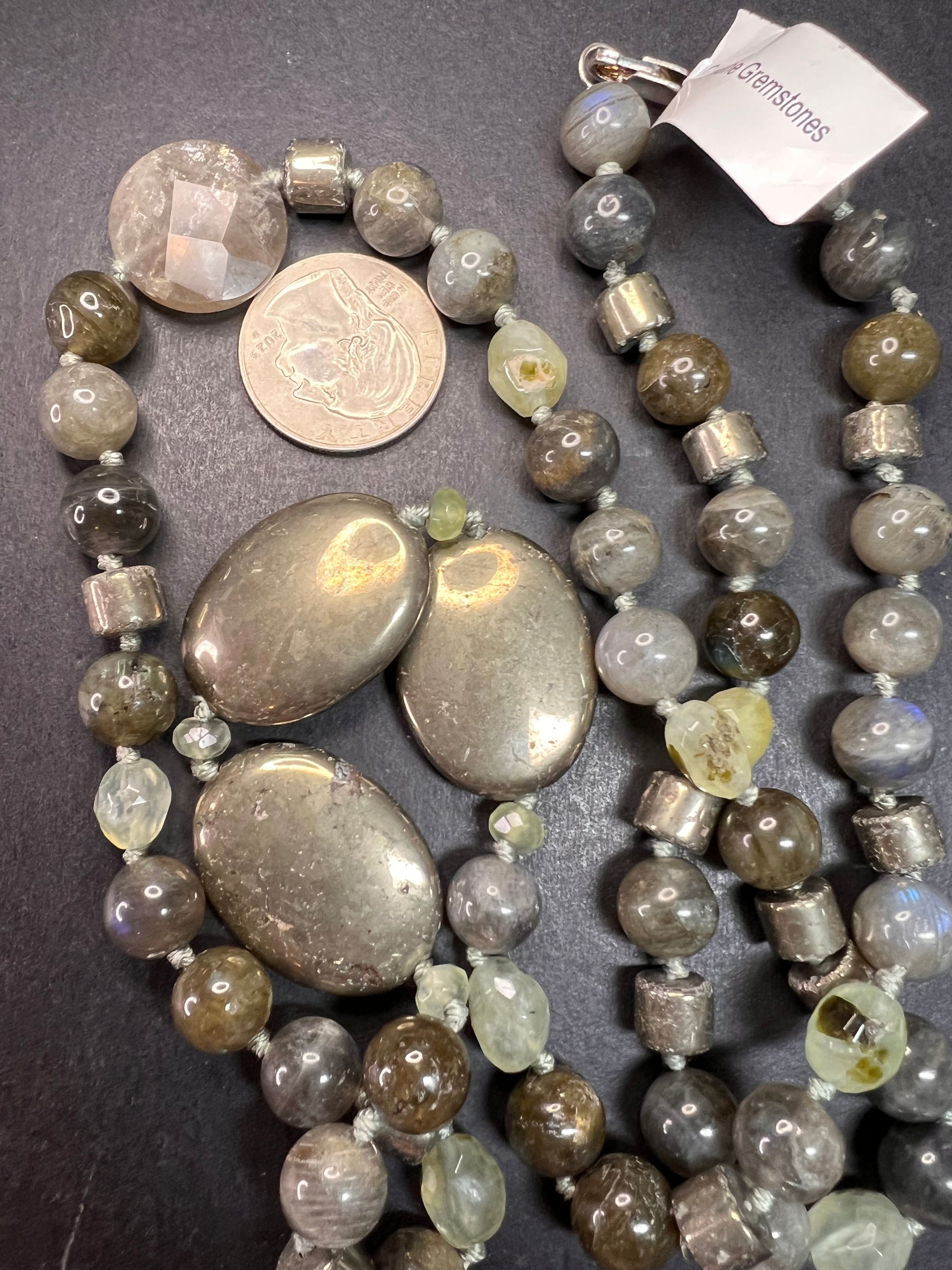 NEW pyrite and labradorite 32 inch necklace with sterling silver clasp