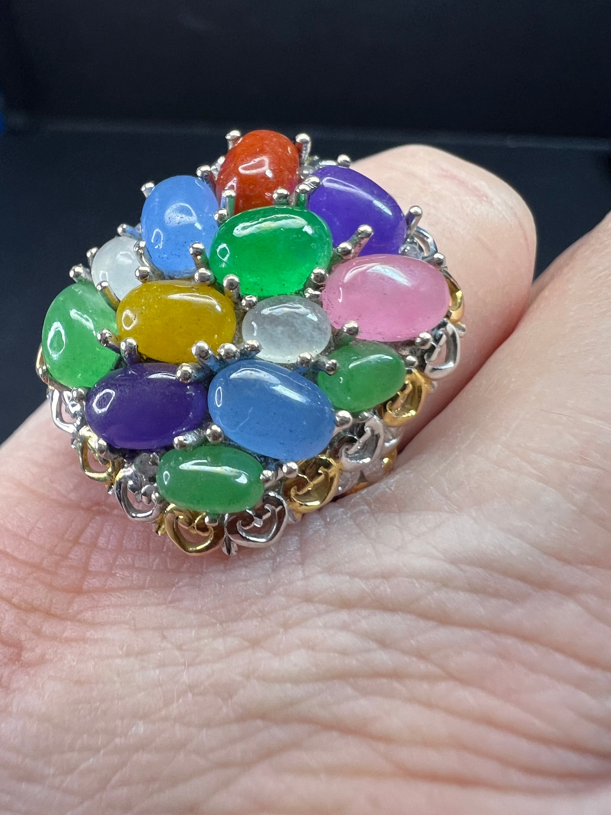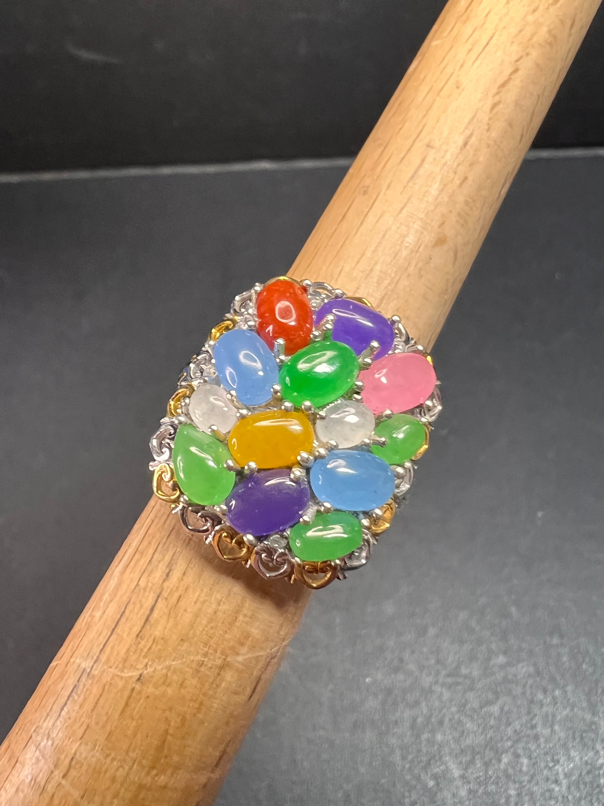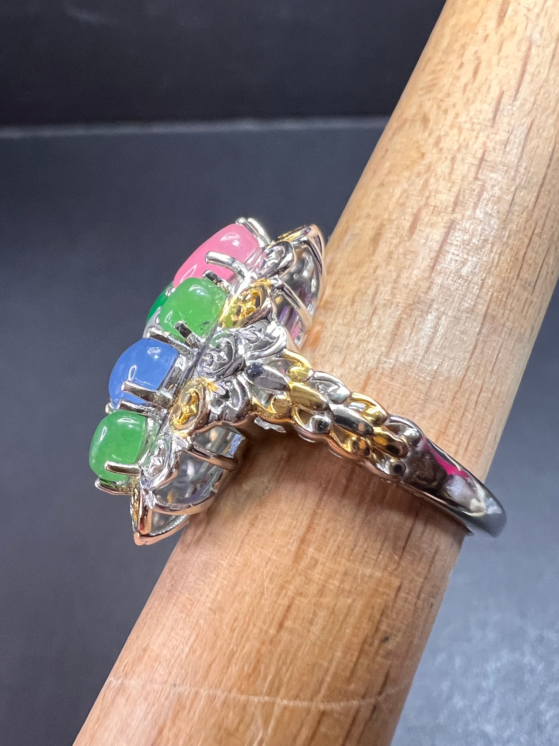 NEW rainbow harmony jade ring in vermeil and rhodium over sterling silver size 5