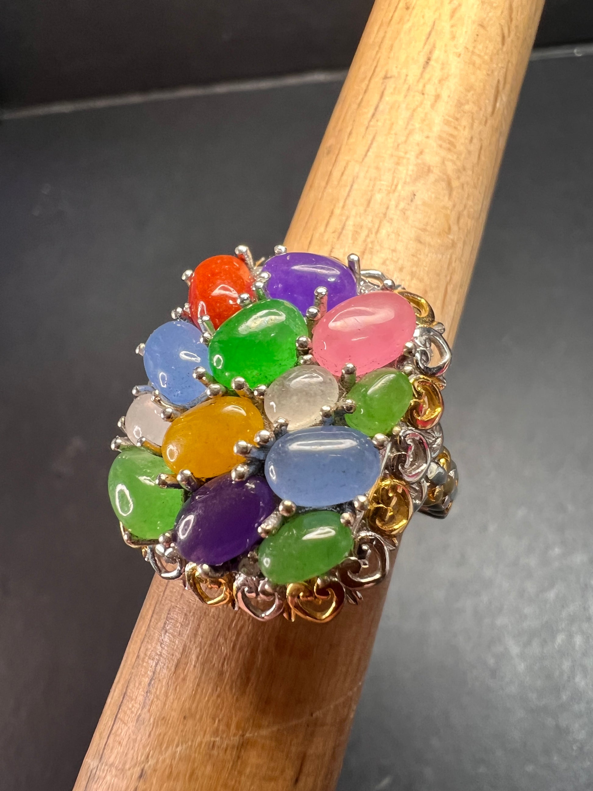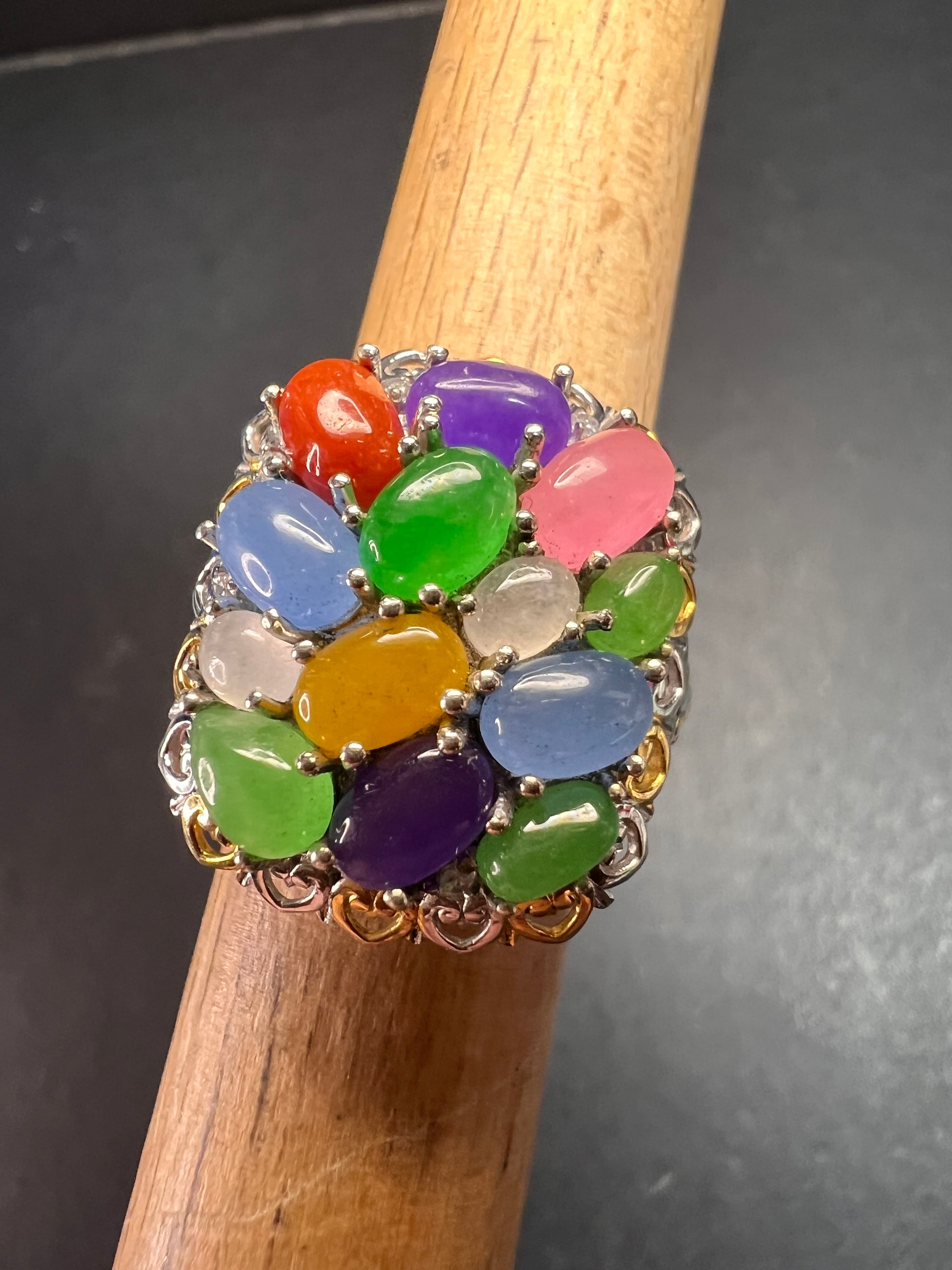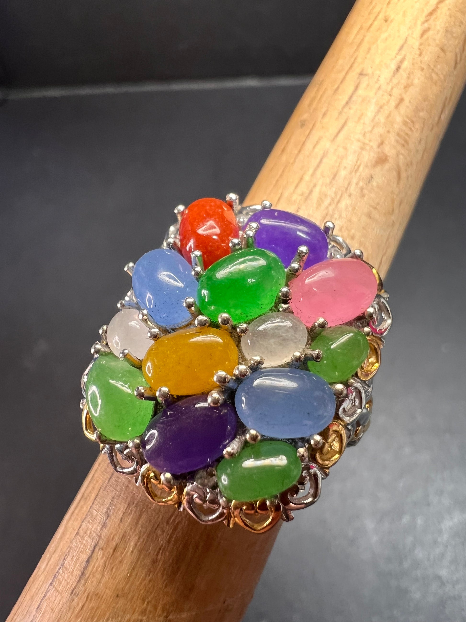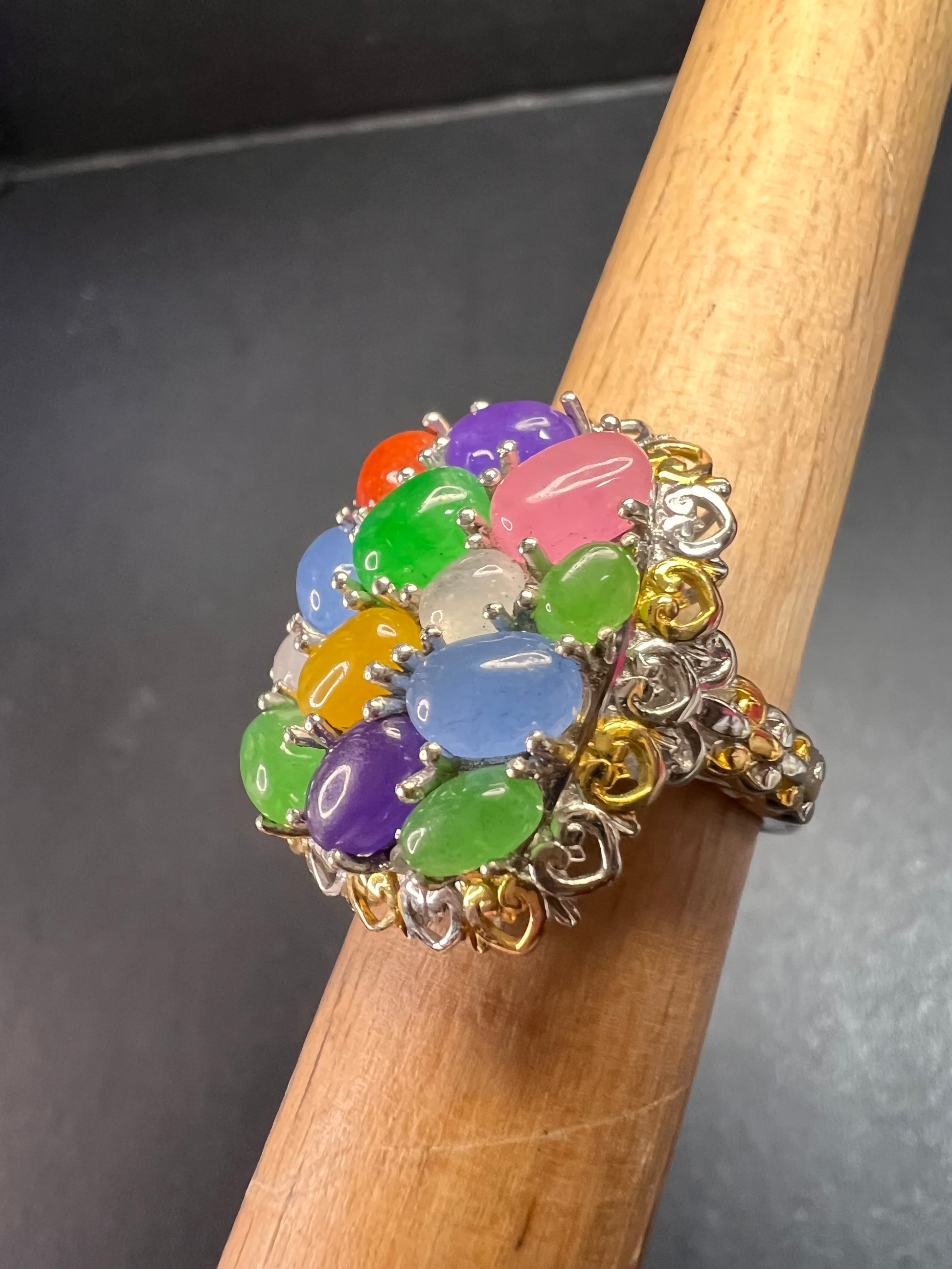 NEW rainbow harmony jade ring in vermeil and rhodium over sterling silver size 5