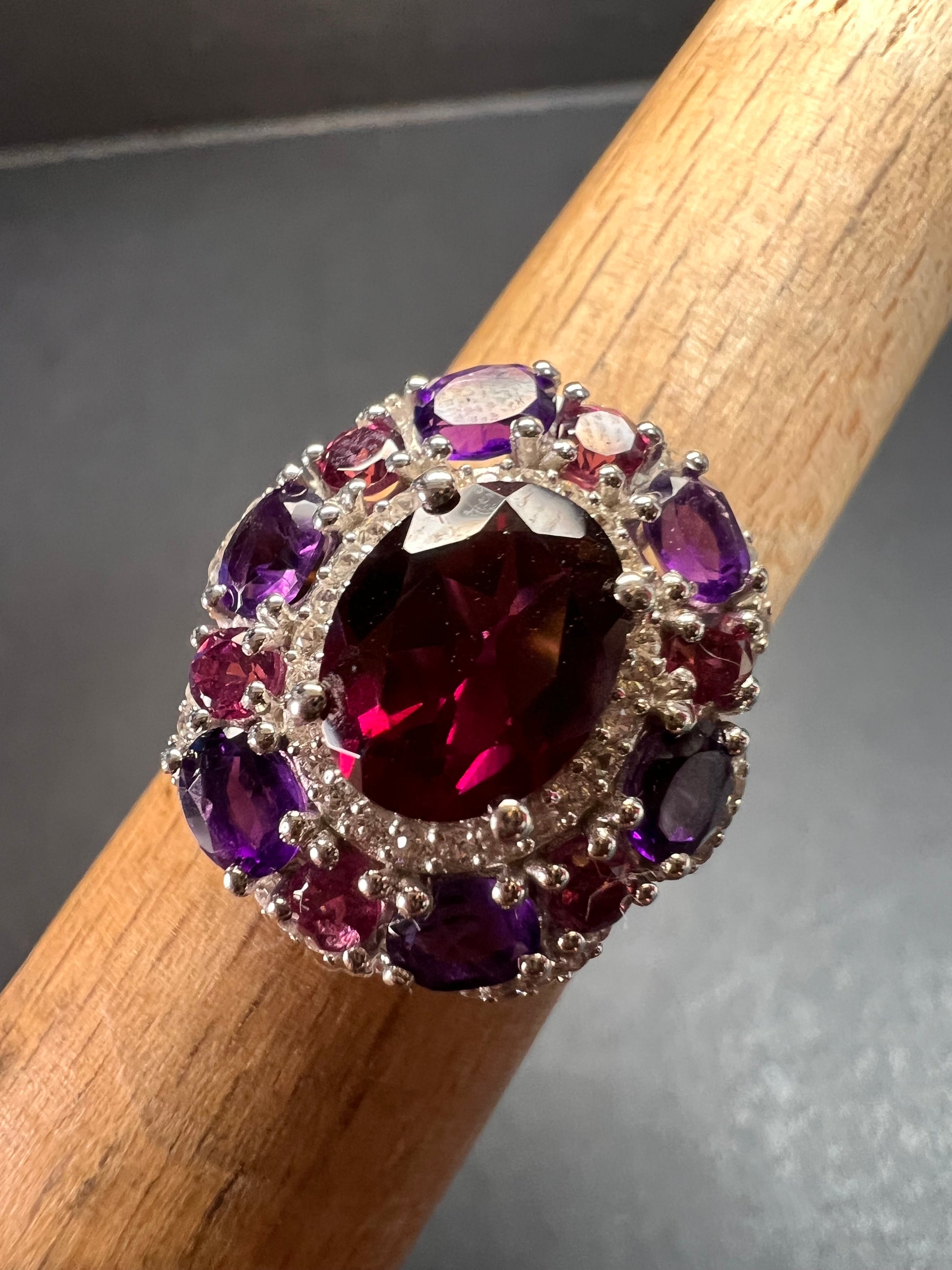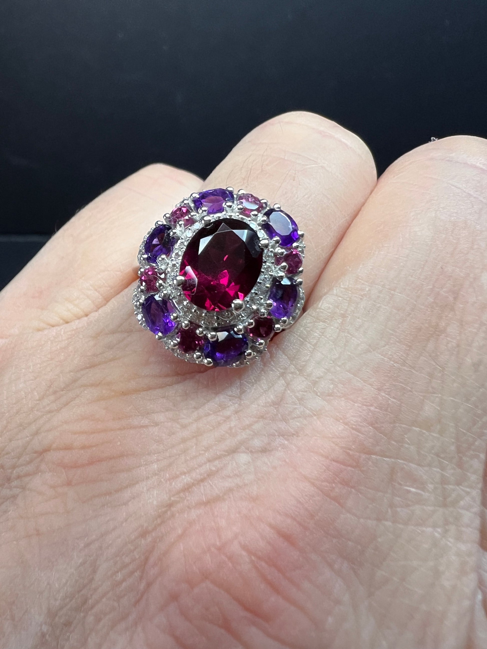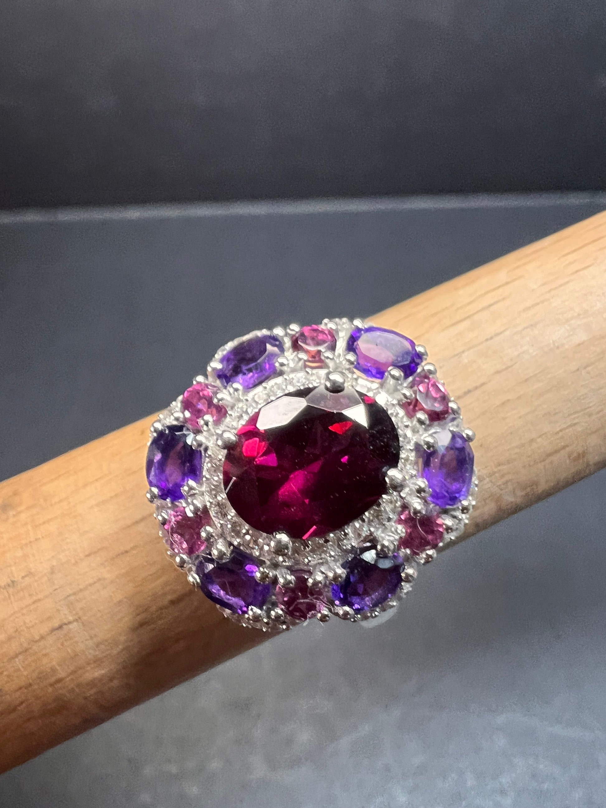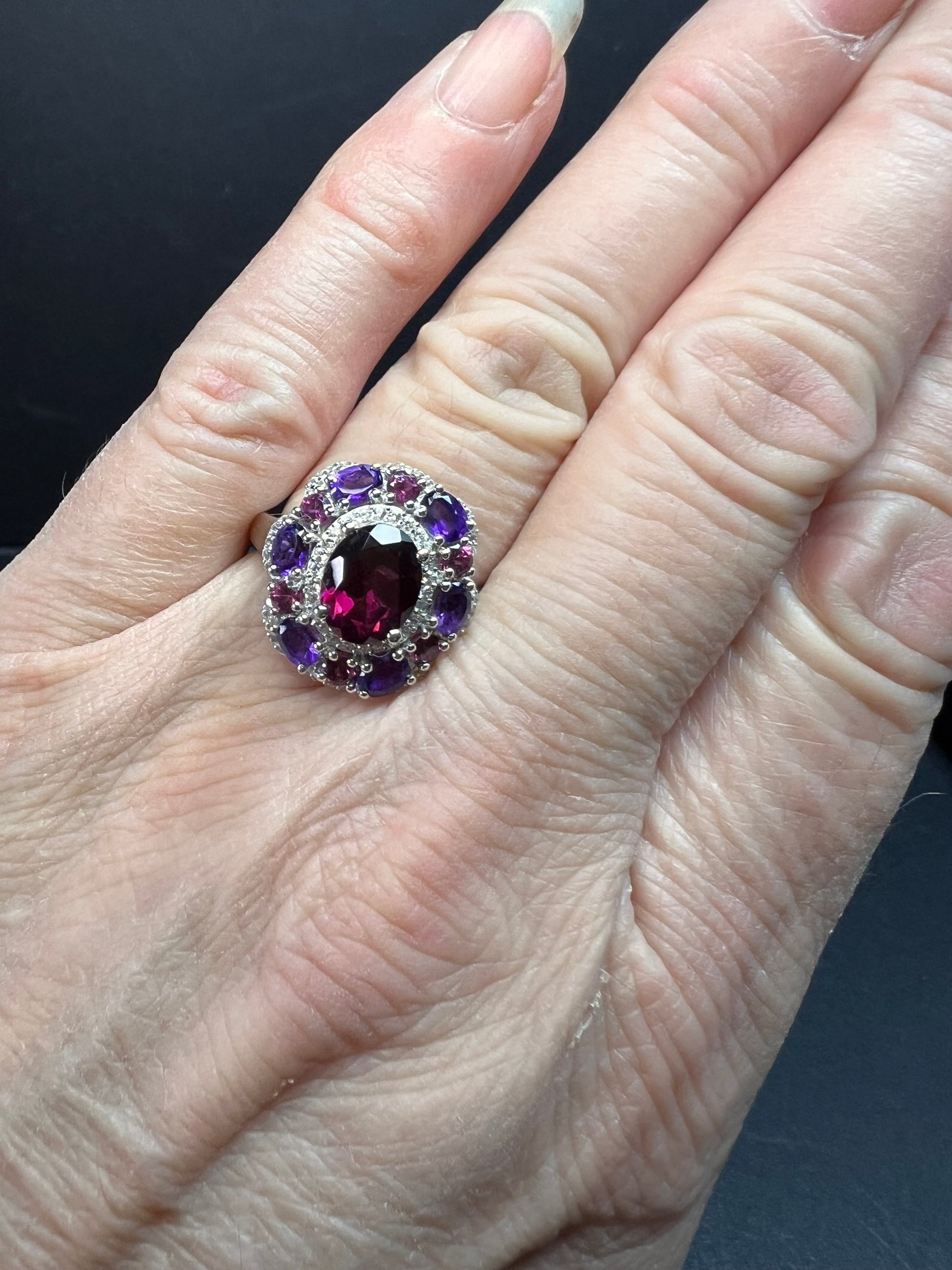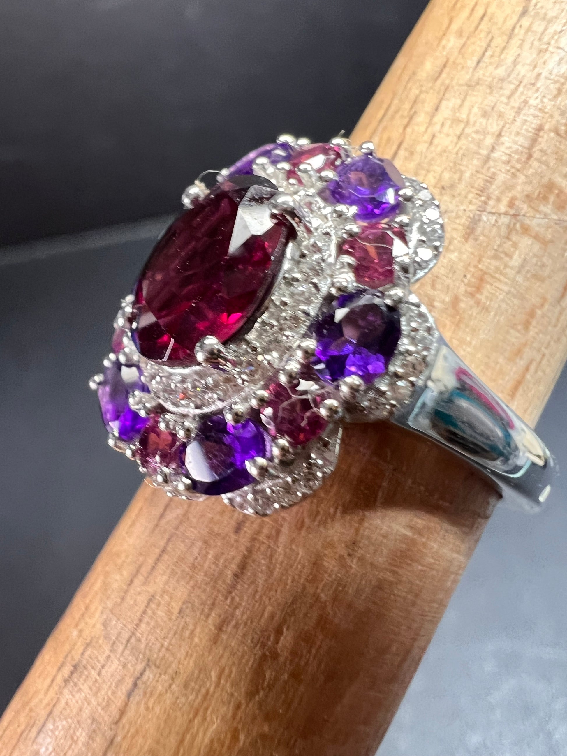 NEW rhodolite garnet and amethyst ring in sterling silver size 7