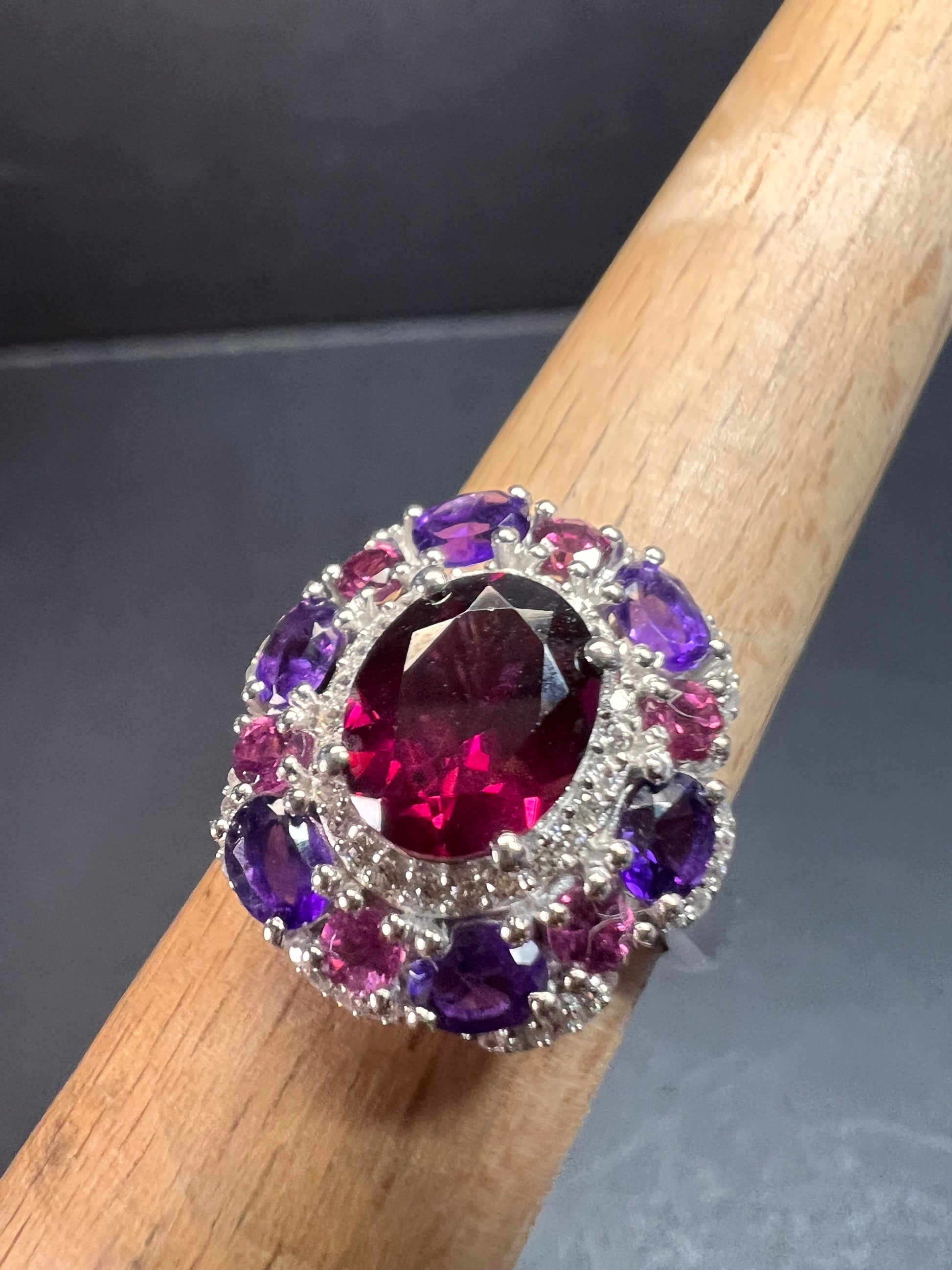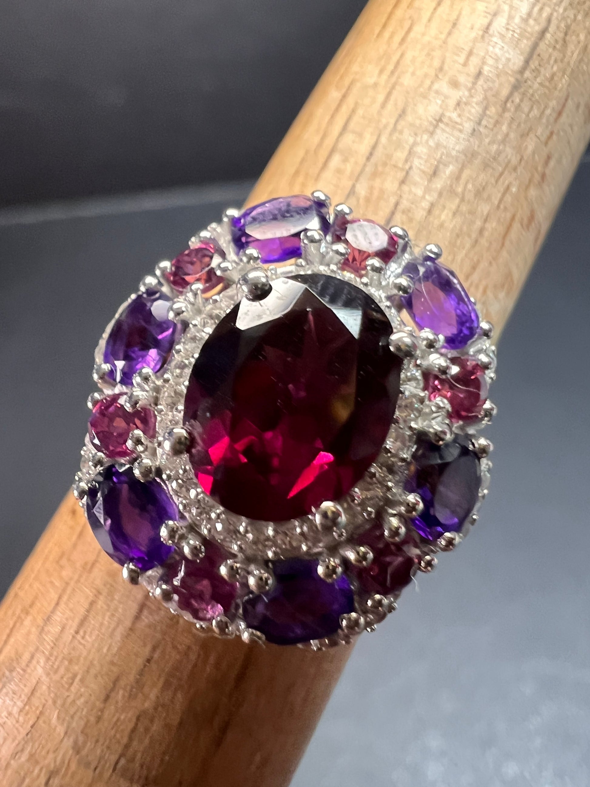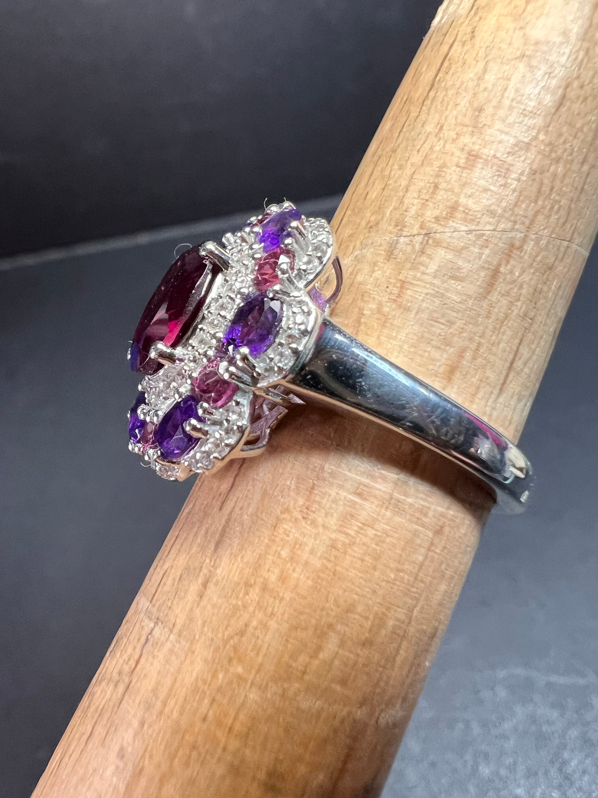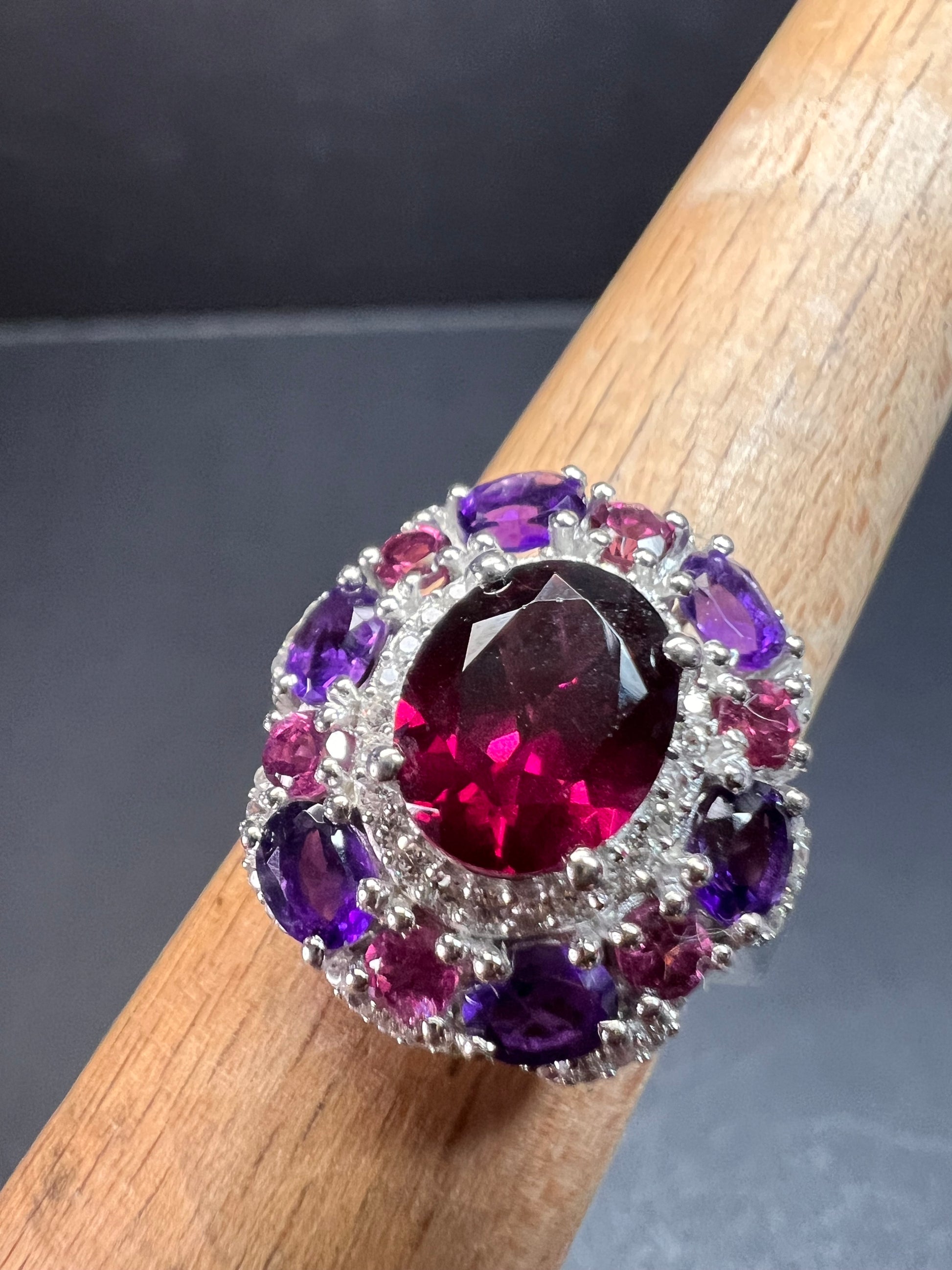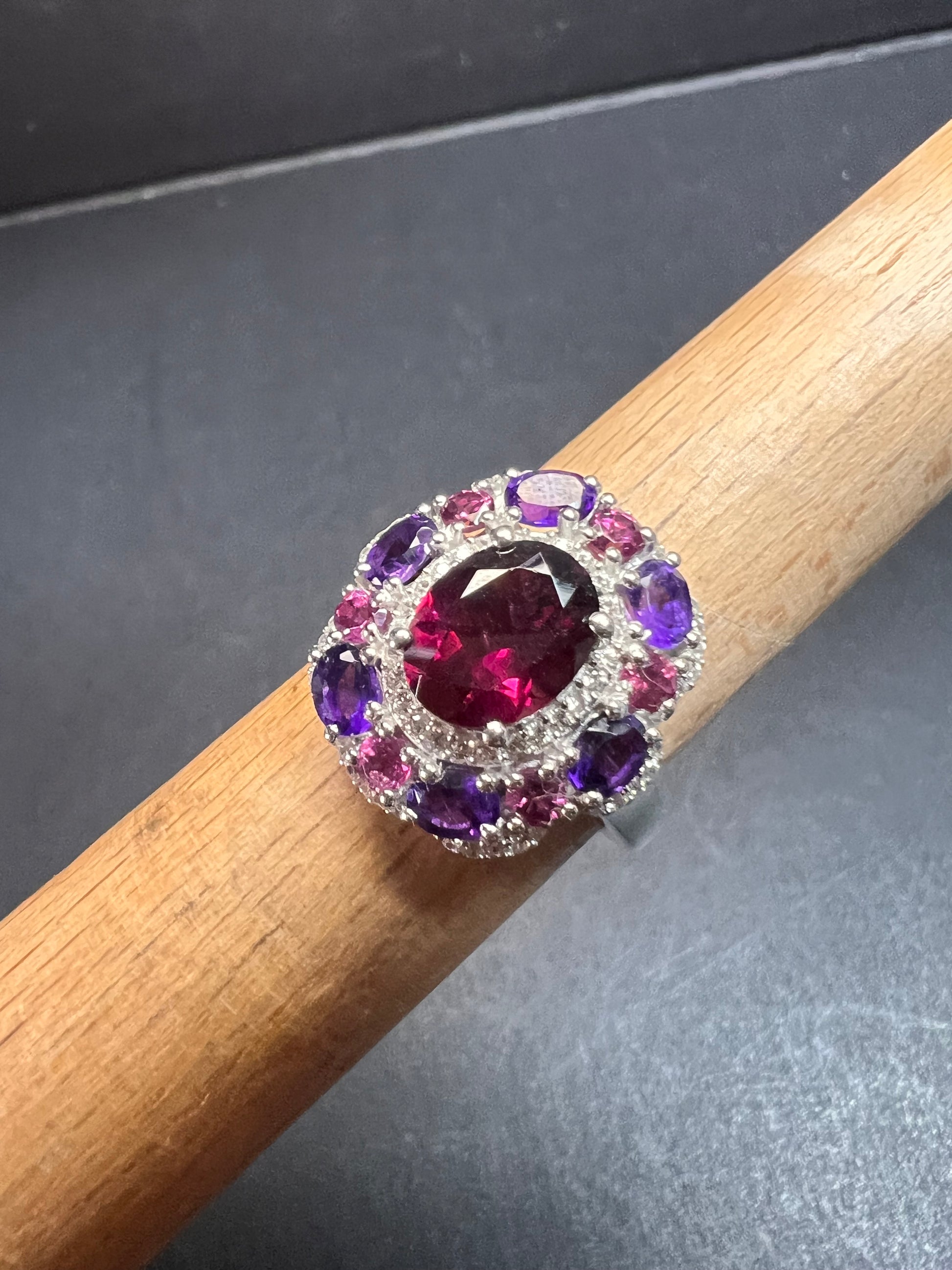 NEW rhodolite garnet and amethyst ring in sterling silver size 7