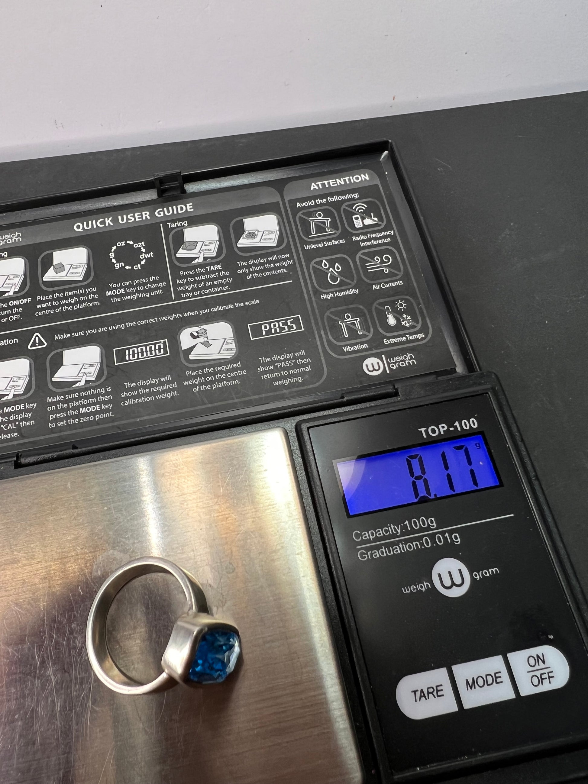NEW size 8 Swiss blue topaz sterling silver ring size 8.17 grams