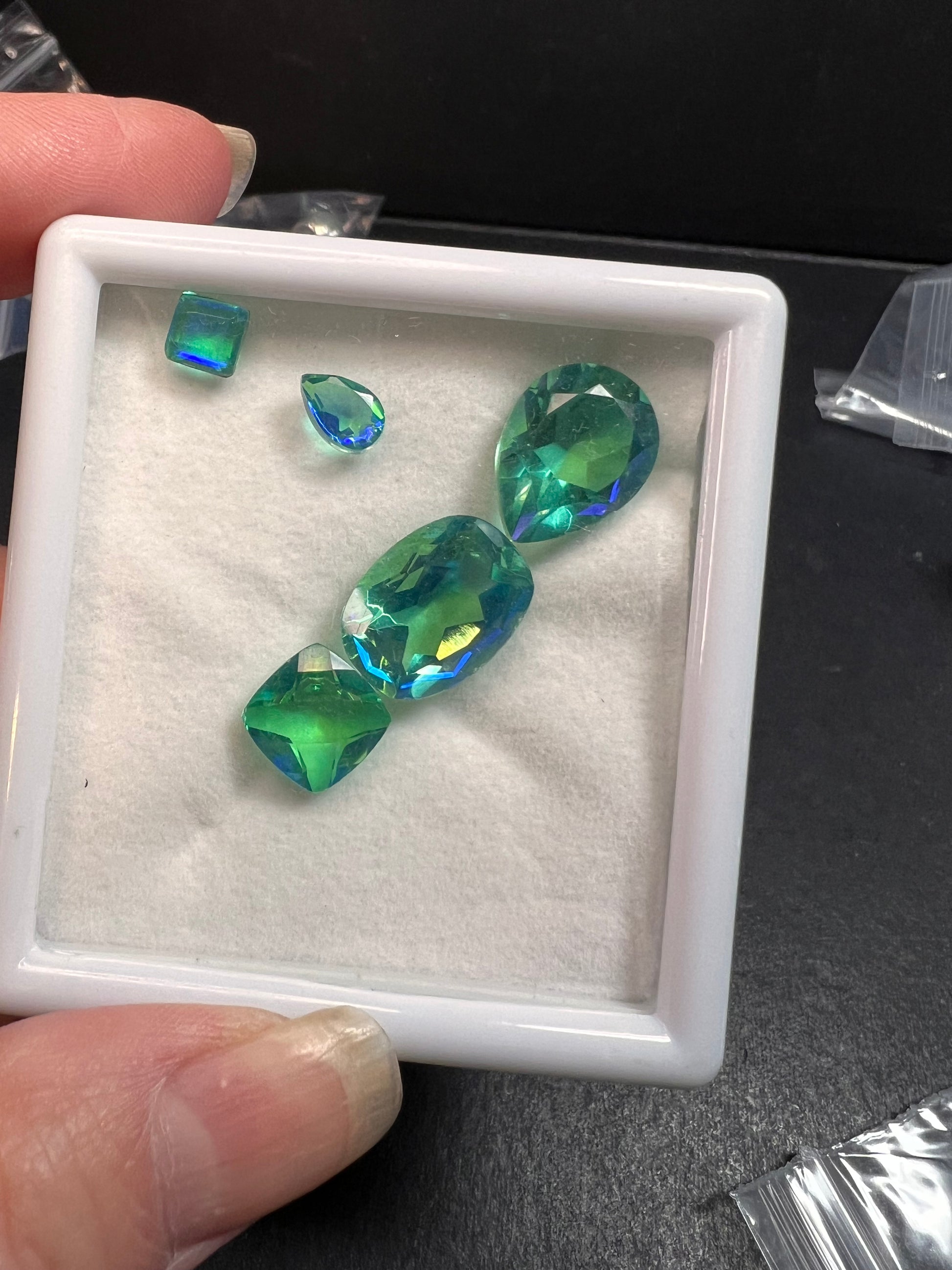 5 mixed sizes and shapes of peacock triple quartz gemstones totaling 25 ctw