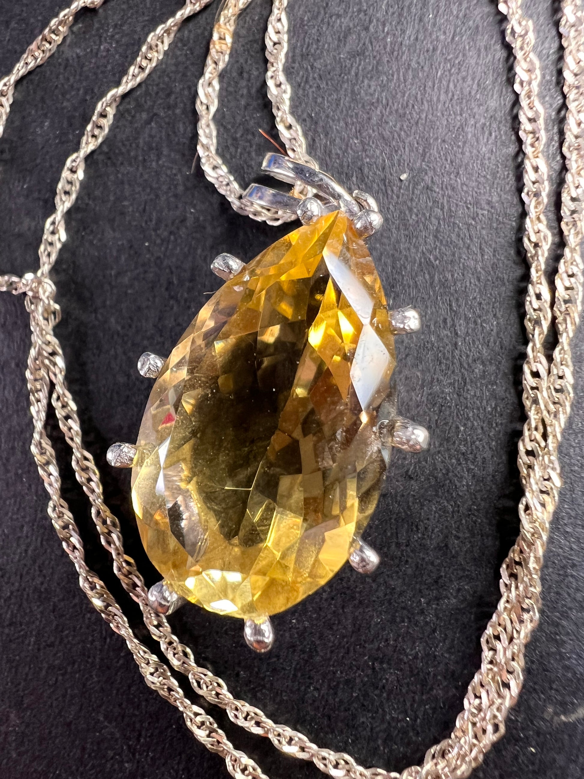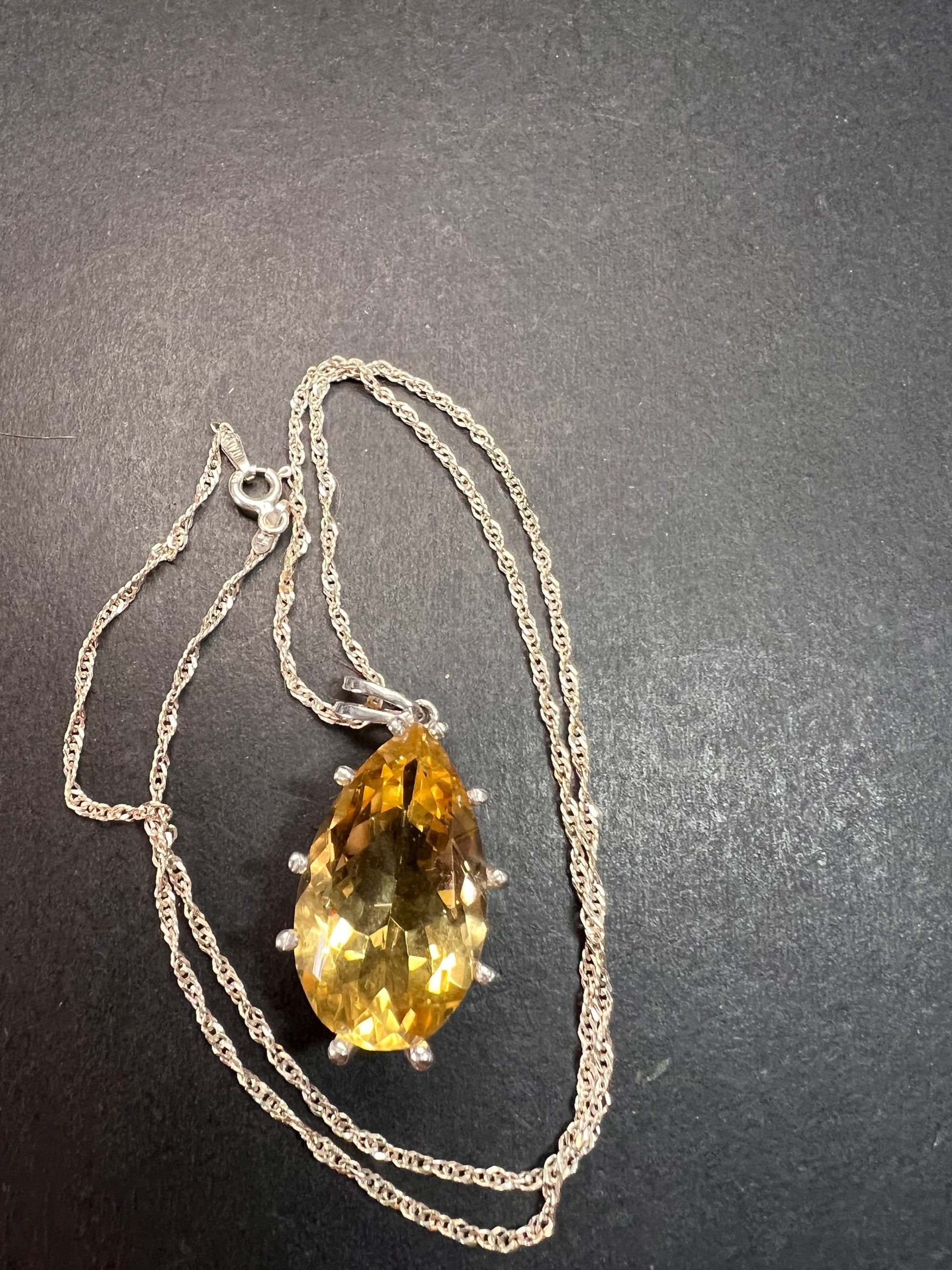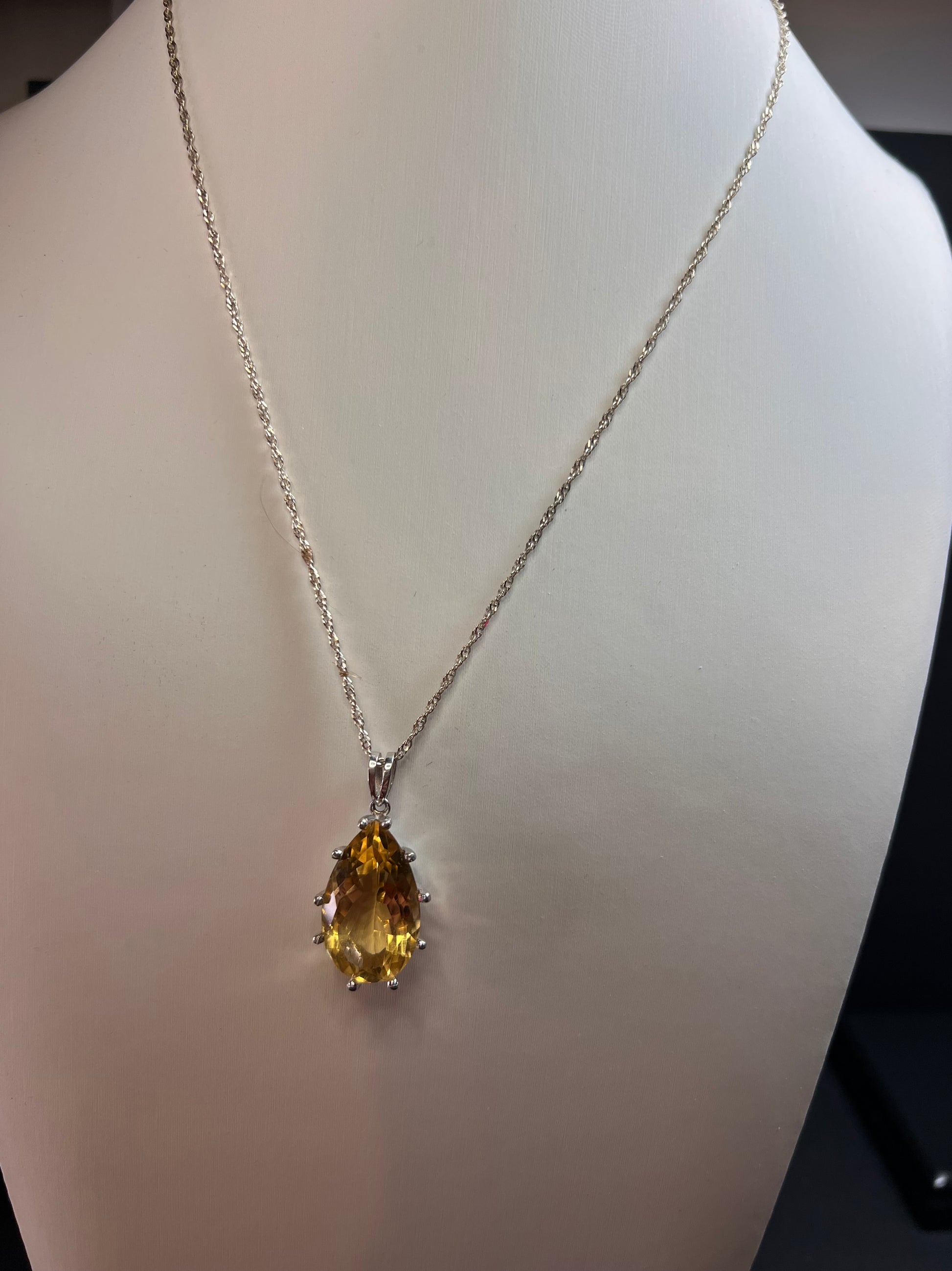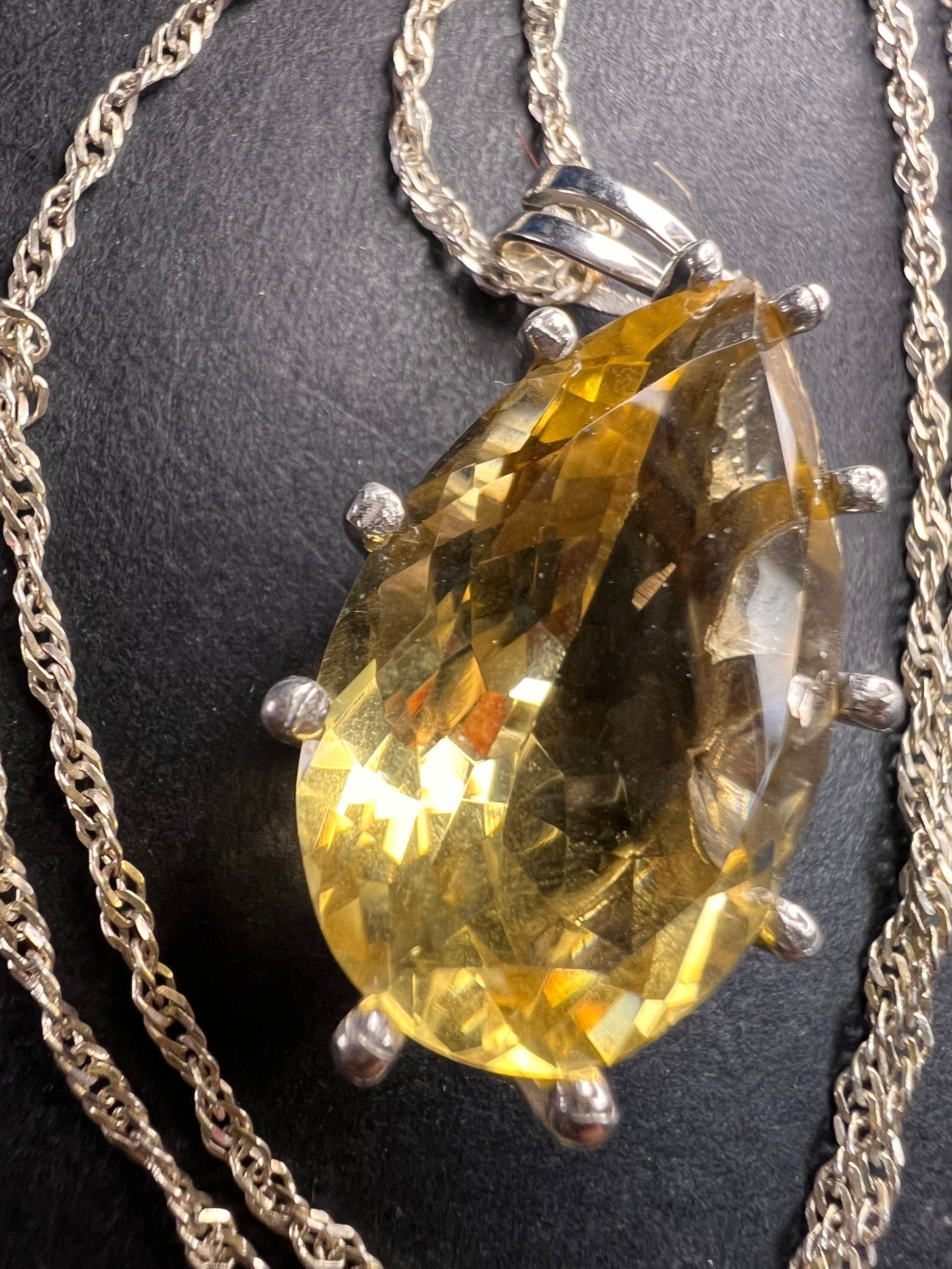 Pear cut citrine sterling silver pendant and chain