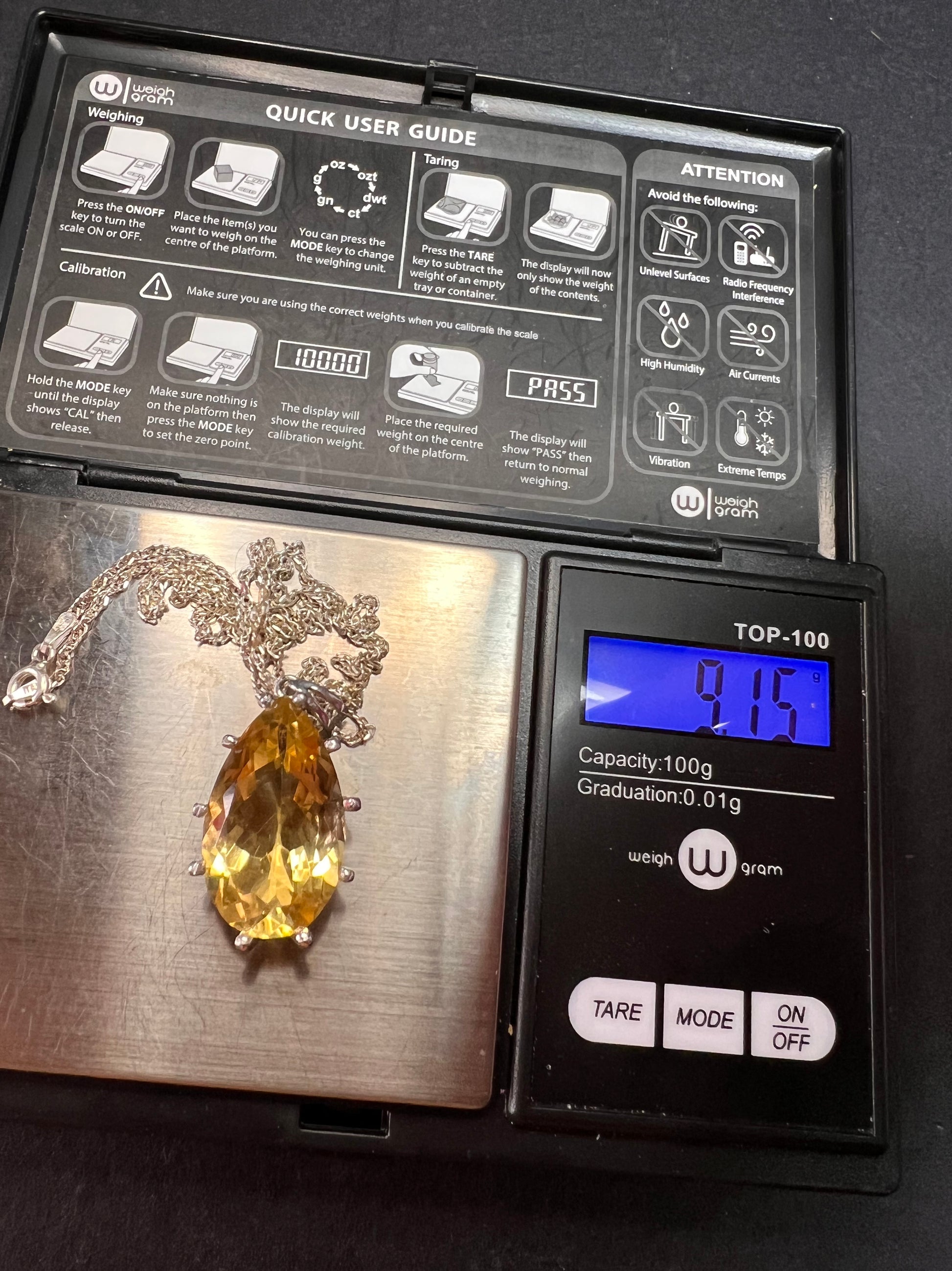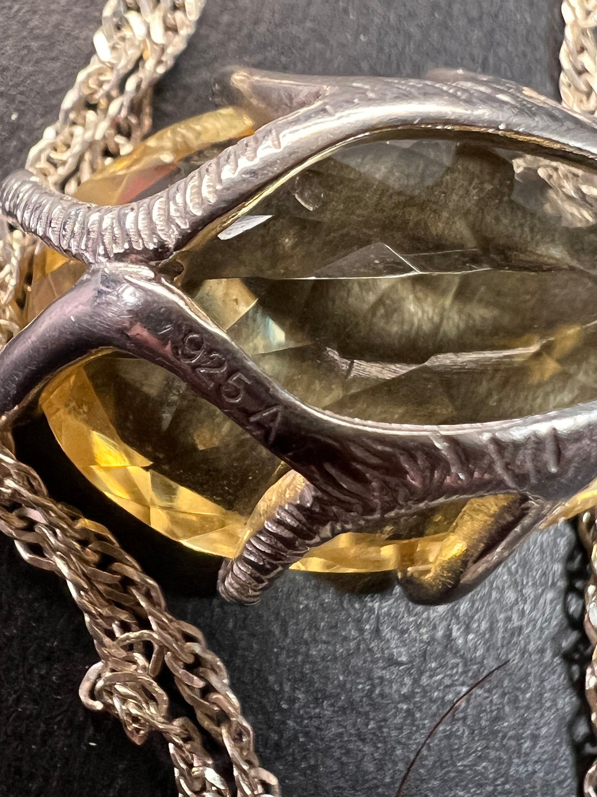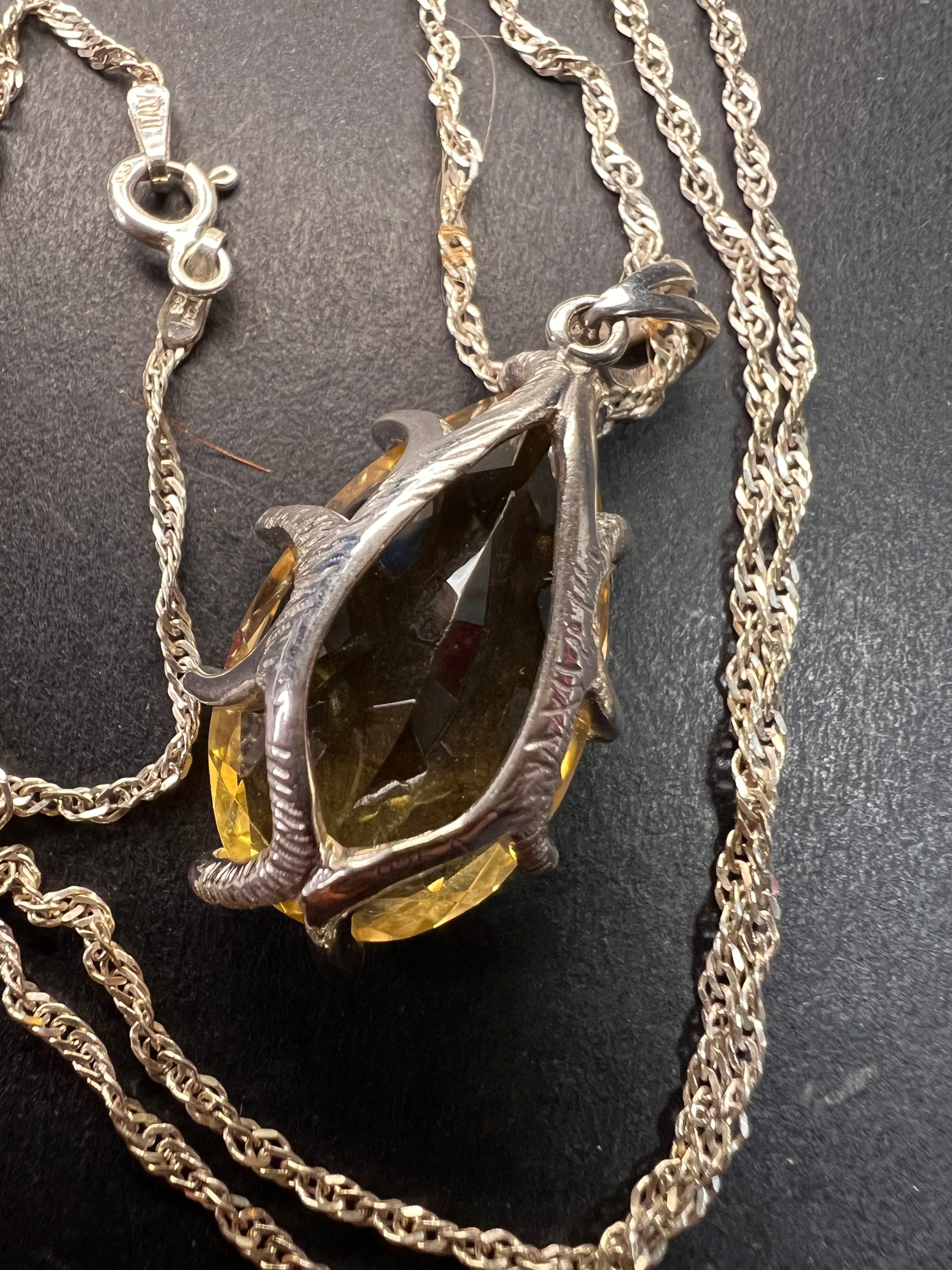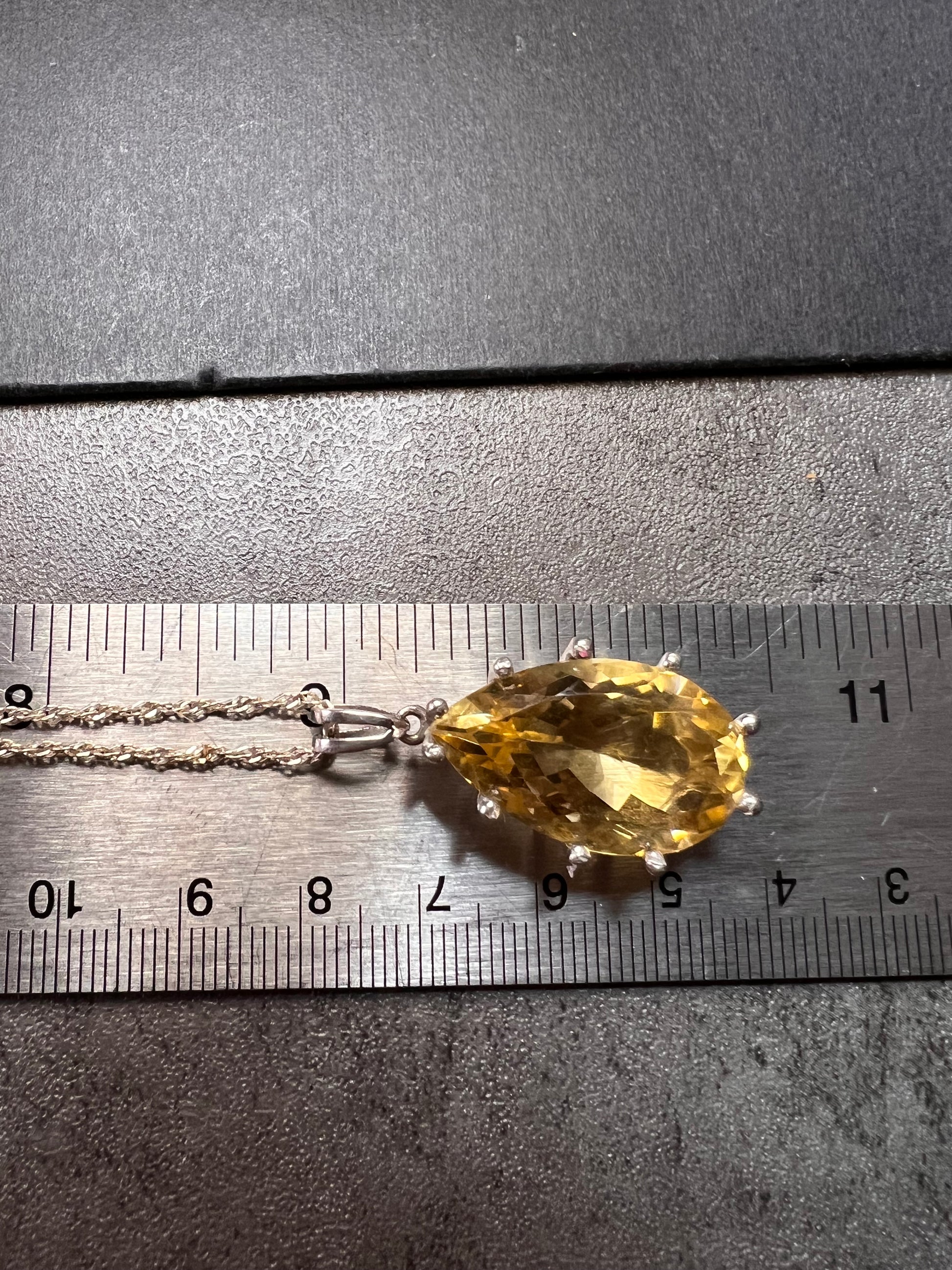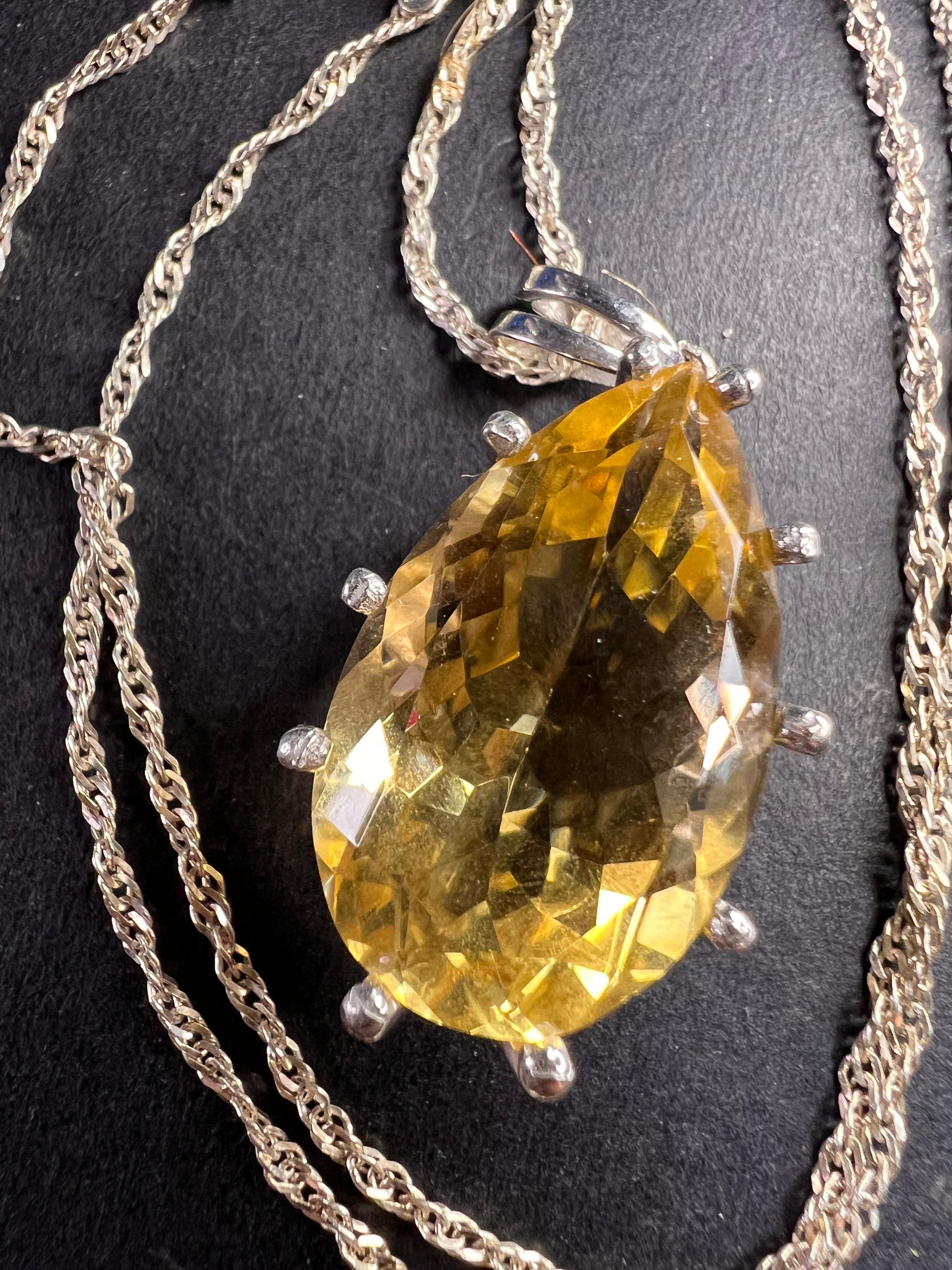 Pear cut citrine sterling silver pendant and chain