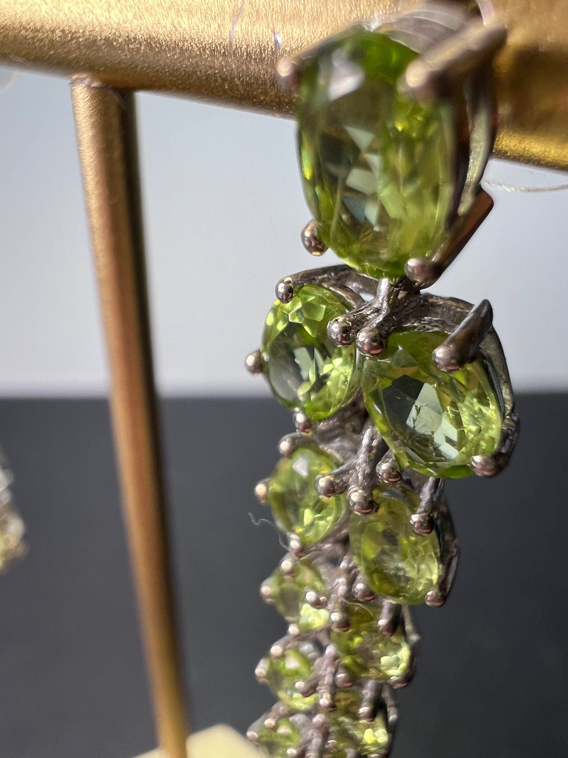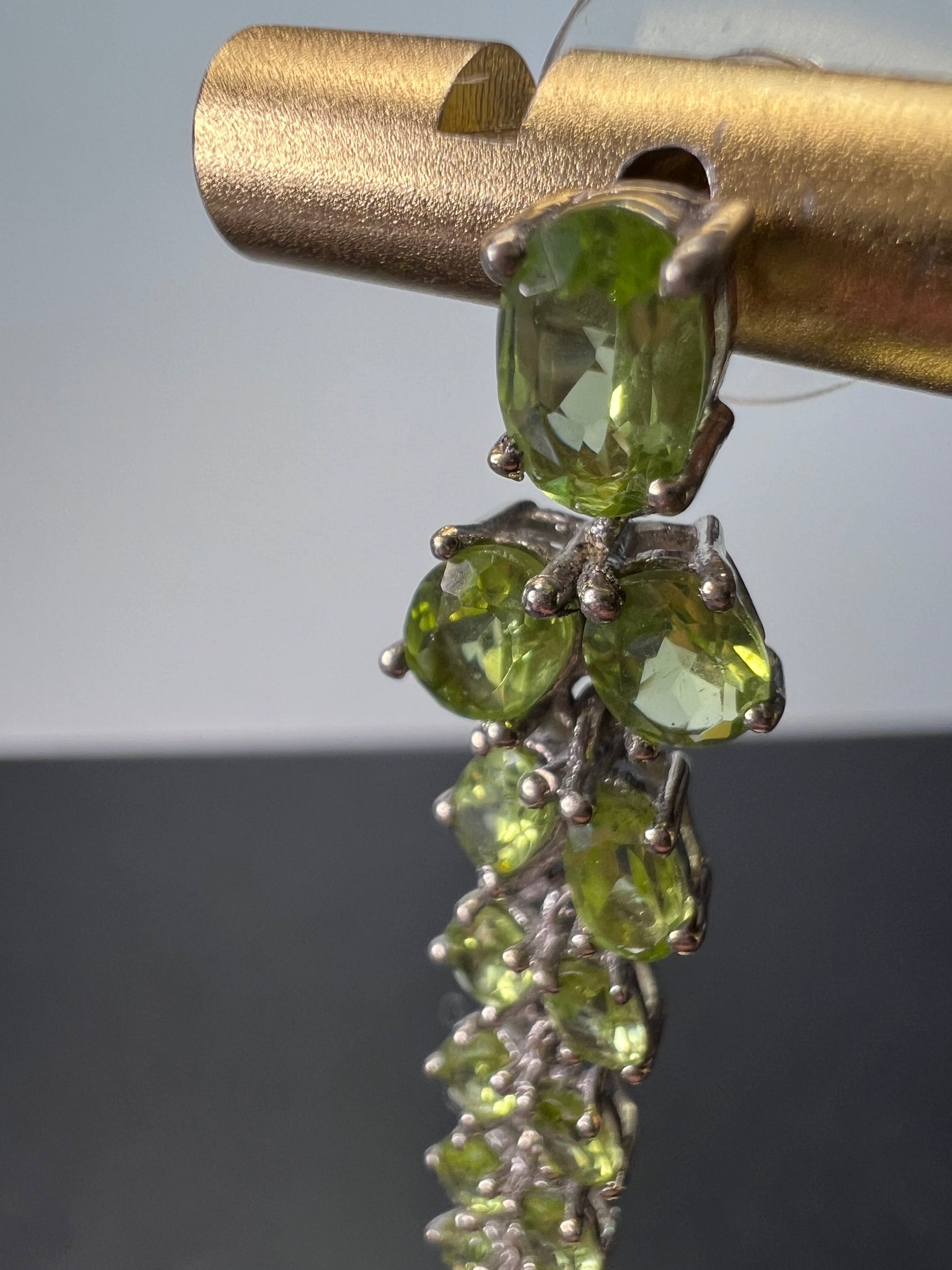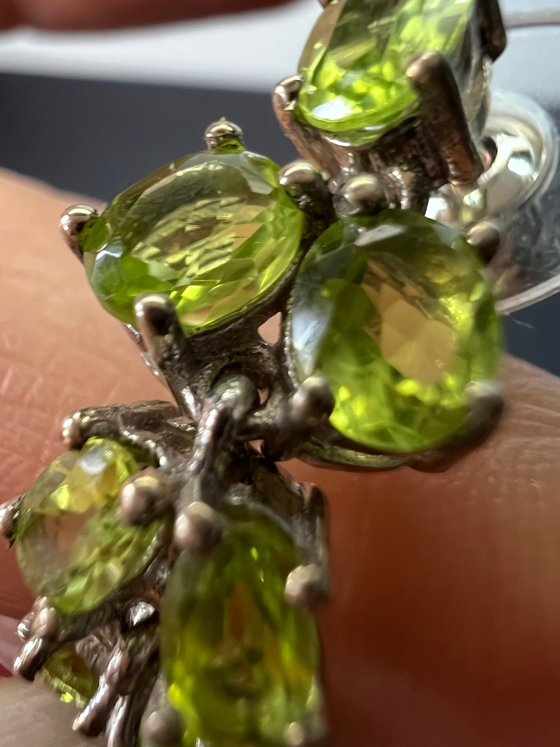 Genuine green peridot gemstones in a sterling silver prong setting. These most likely have a rhodium plating too. 925 STS