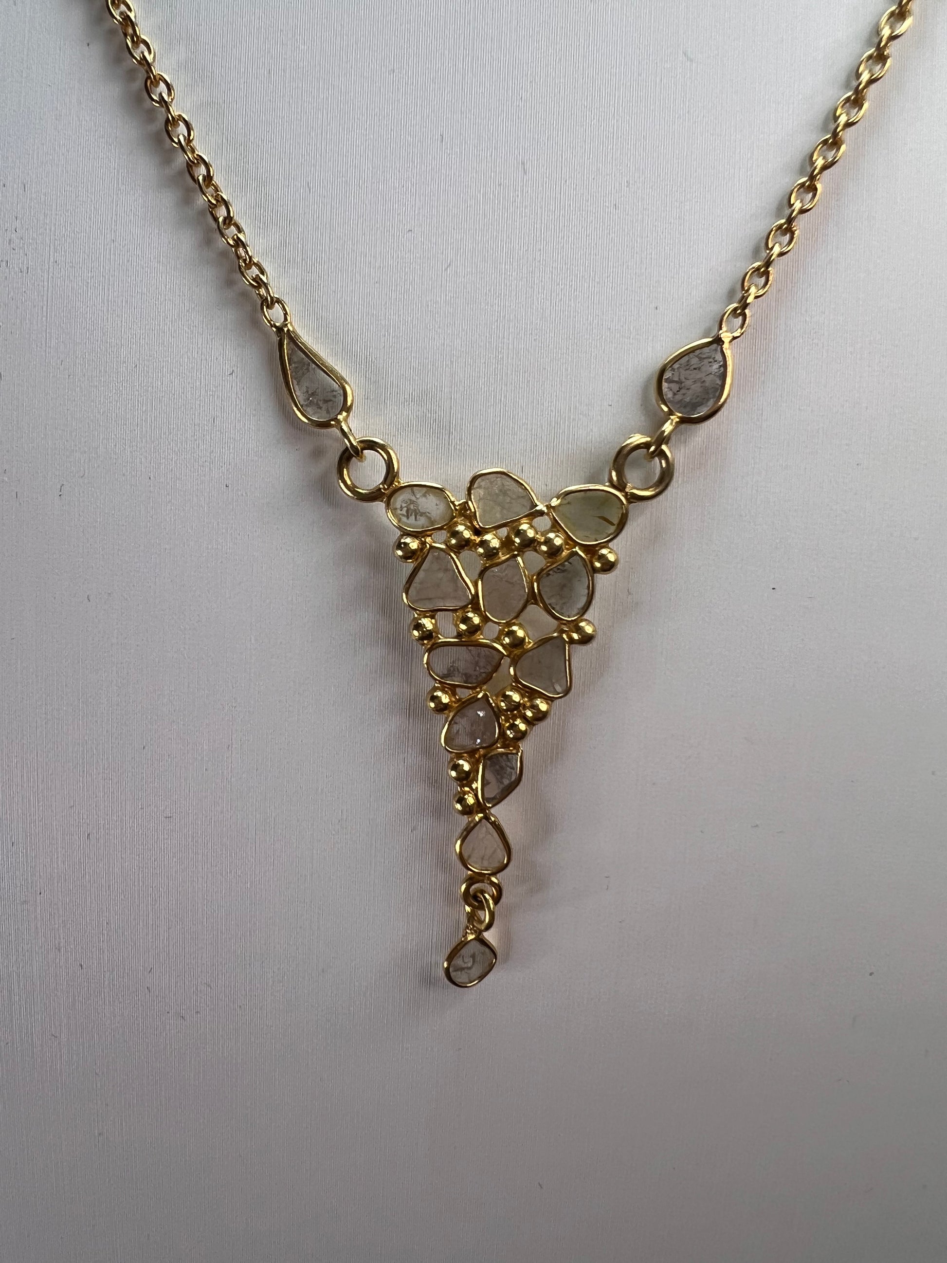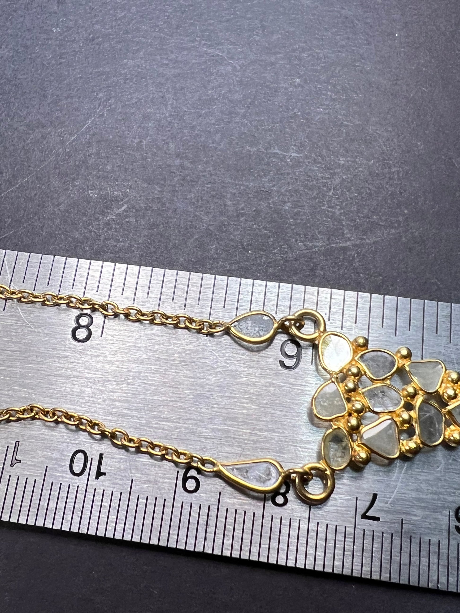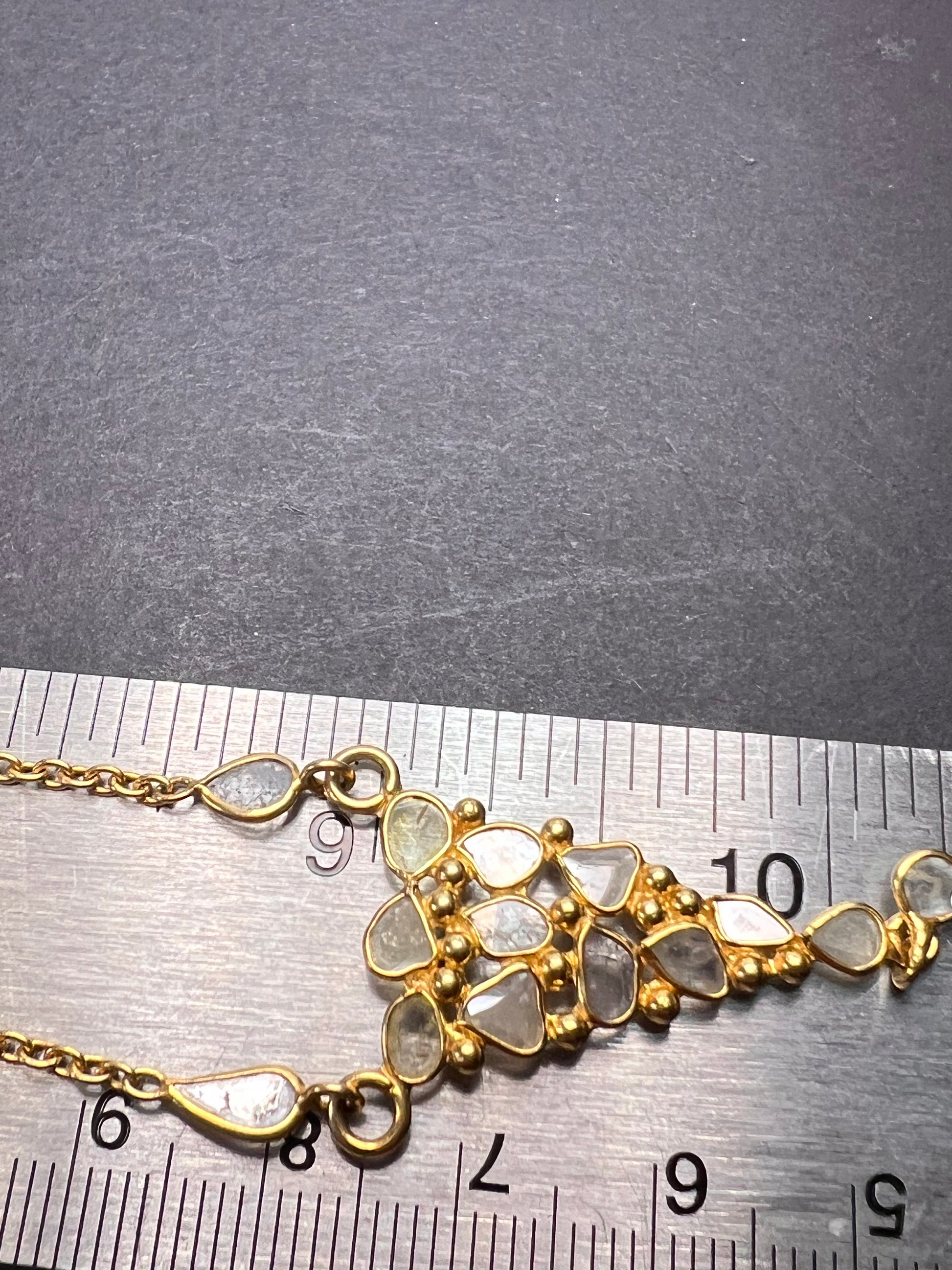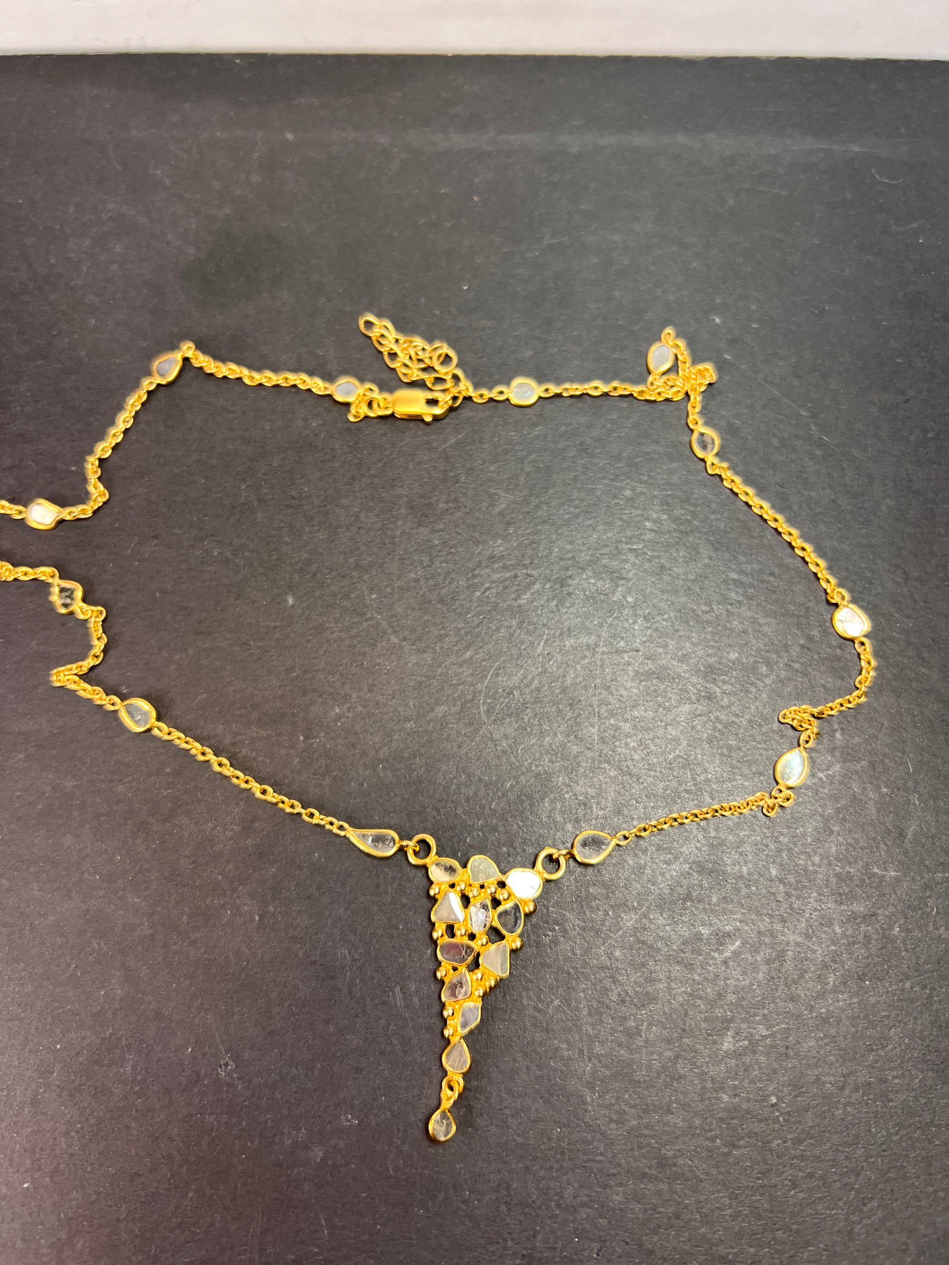 Genuine earth mined Polki diamond slices in a vermeil yellow gold over sterling silver. Measures about 18 inches in length with extension chain adding another 2 inches if desired. Lobster clasp. These necklaces sell for around $2-300+ with retail values up to $8-900 .
