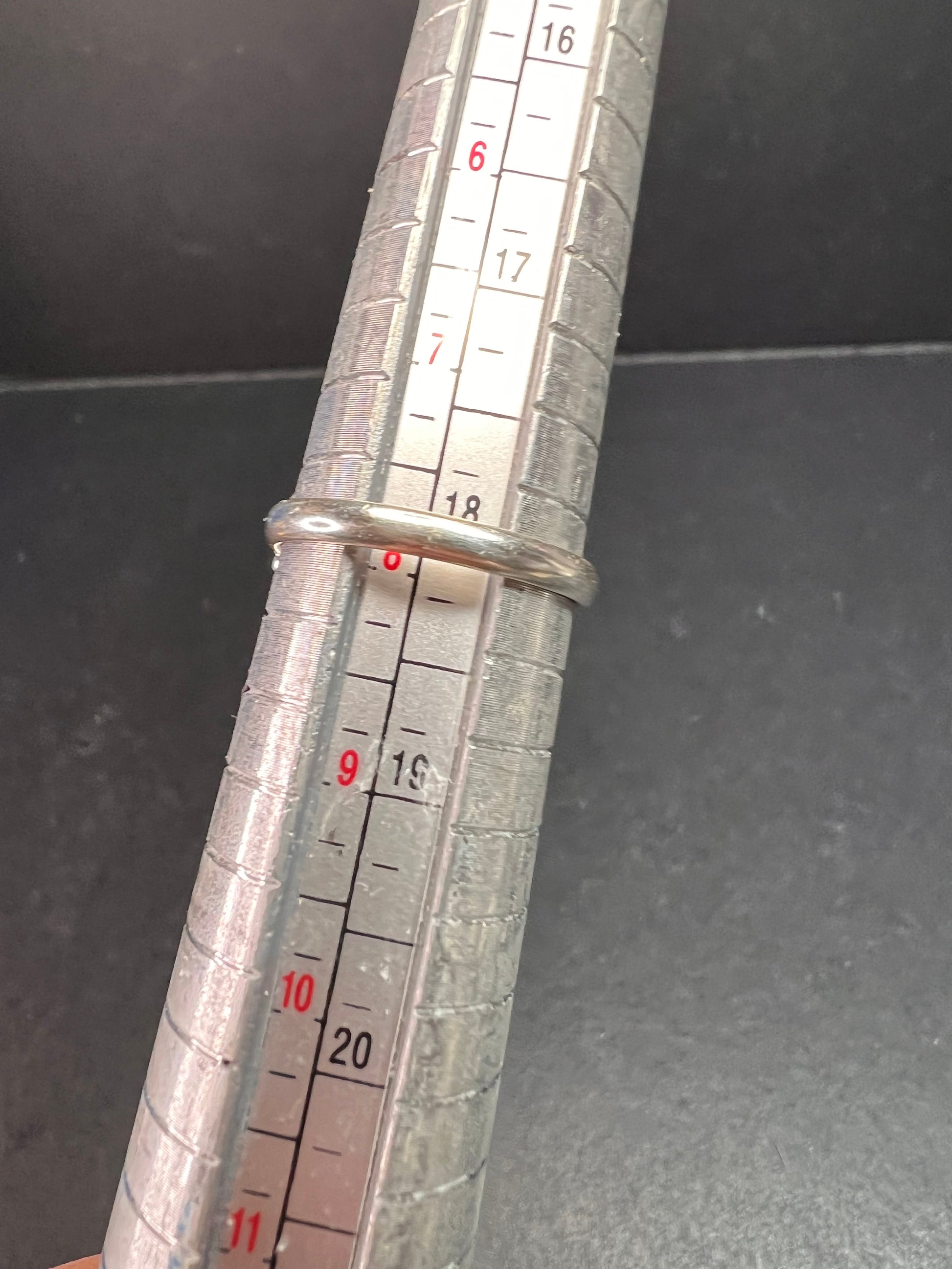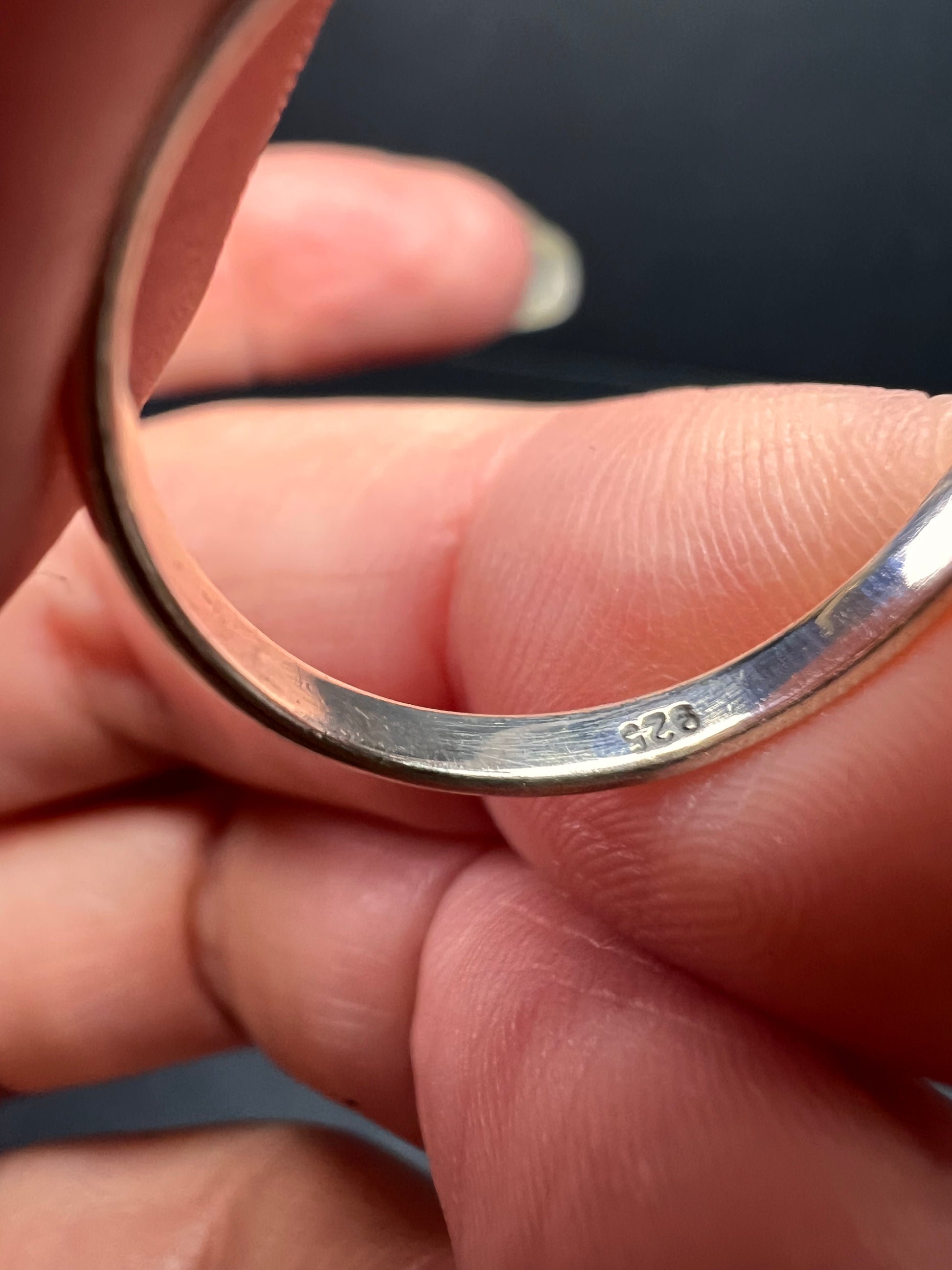 Genuine red marquise cut garnet gemstone bezel set in authentic 925 sterling silver. Measures a size 8. No other markings. 2.70 grams.