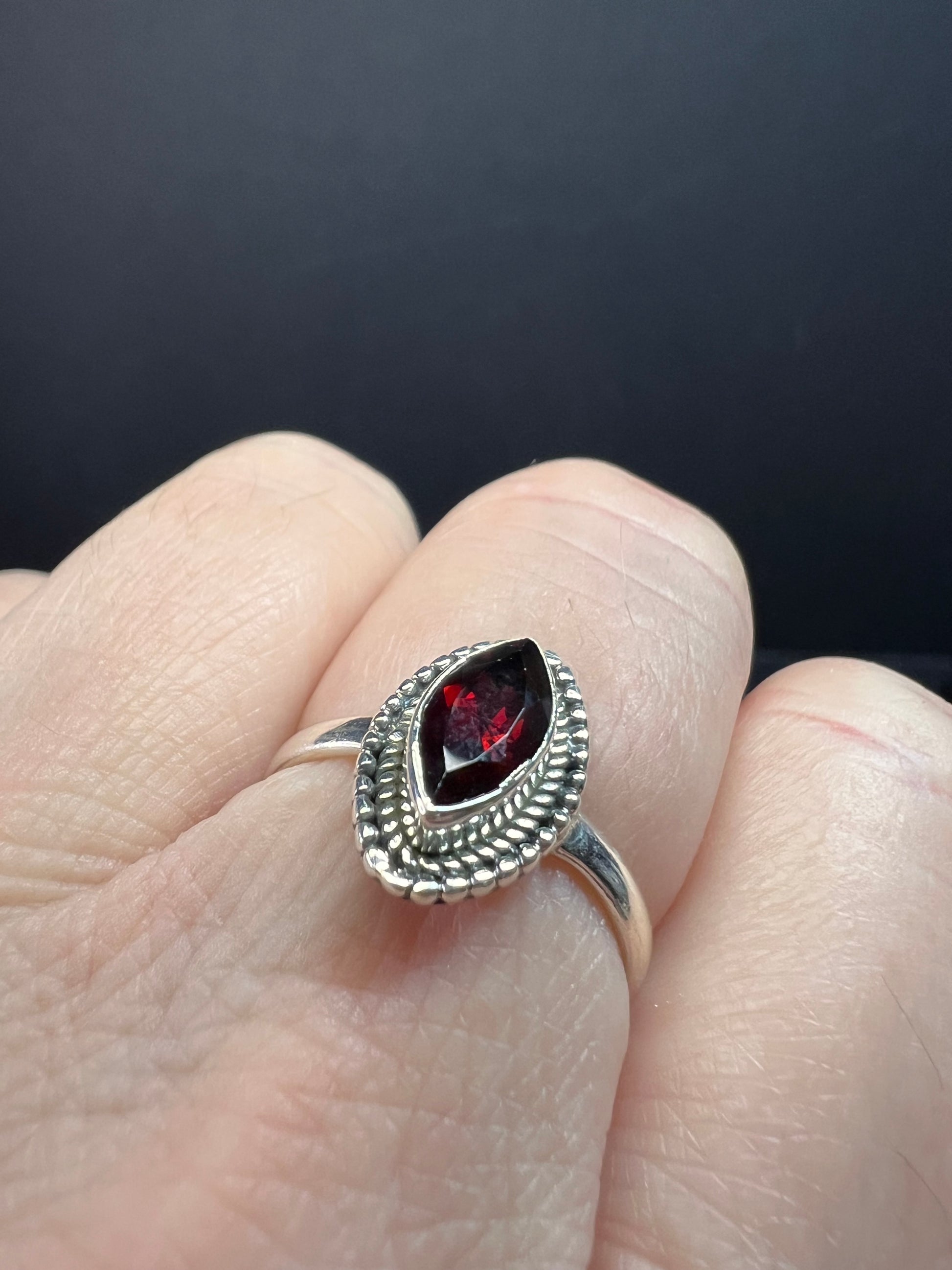 Red garnet marquise gemstone sterling silver ring size 8