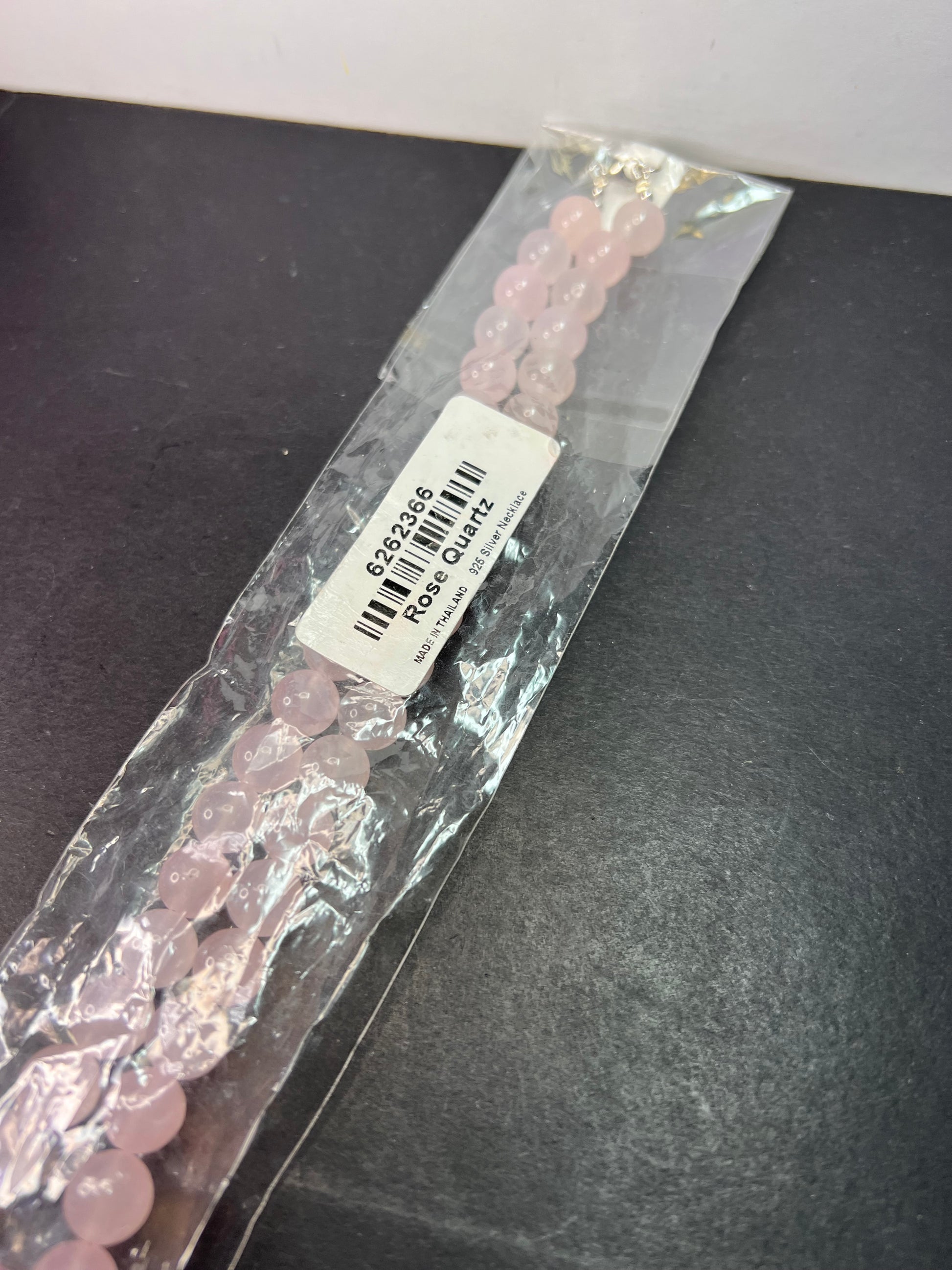 Rose quartz beaded 18 inch necklace with sterling silver clasp *NEW*