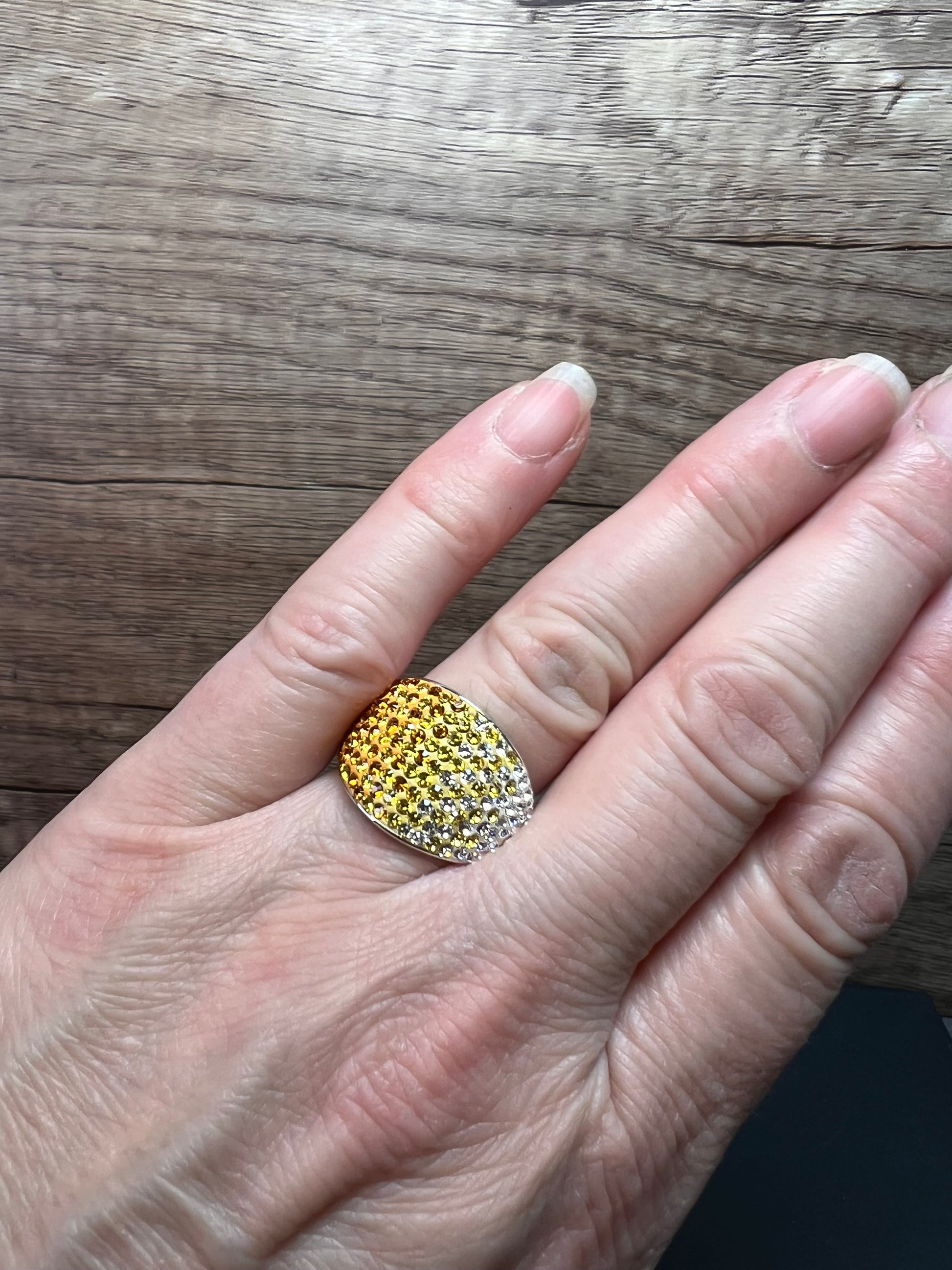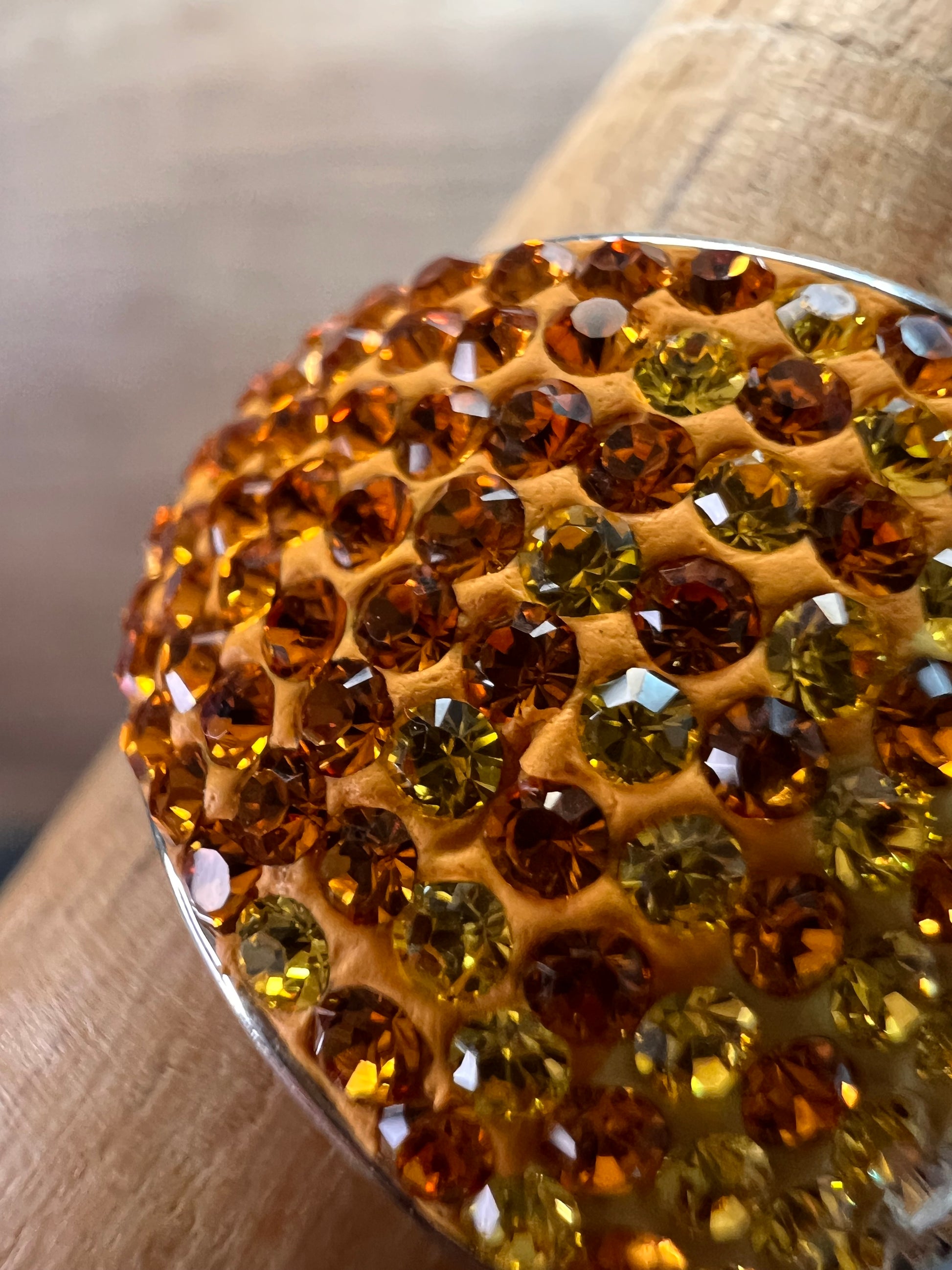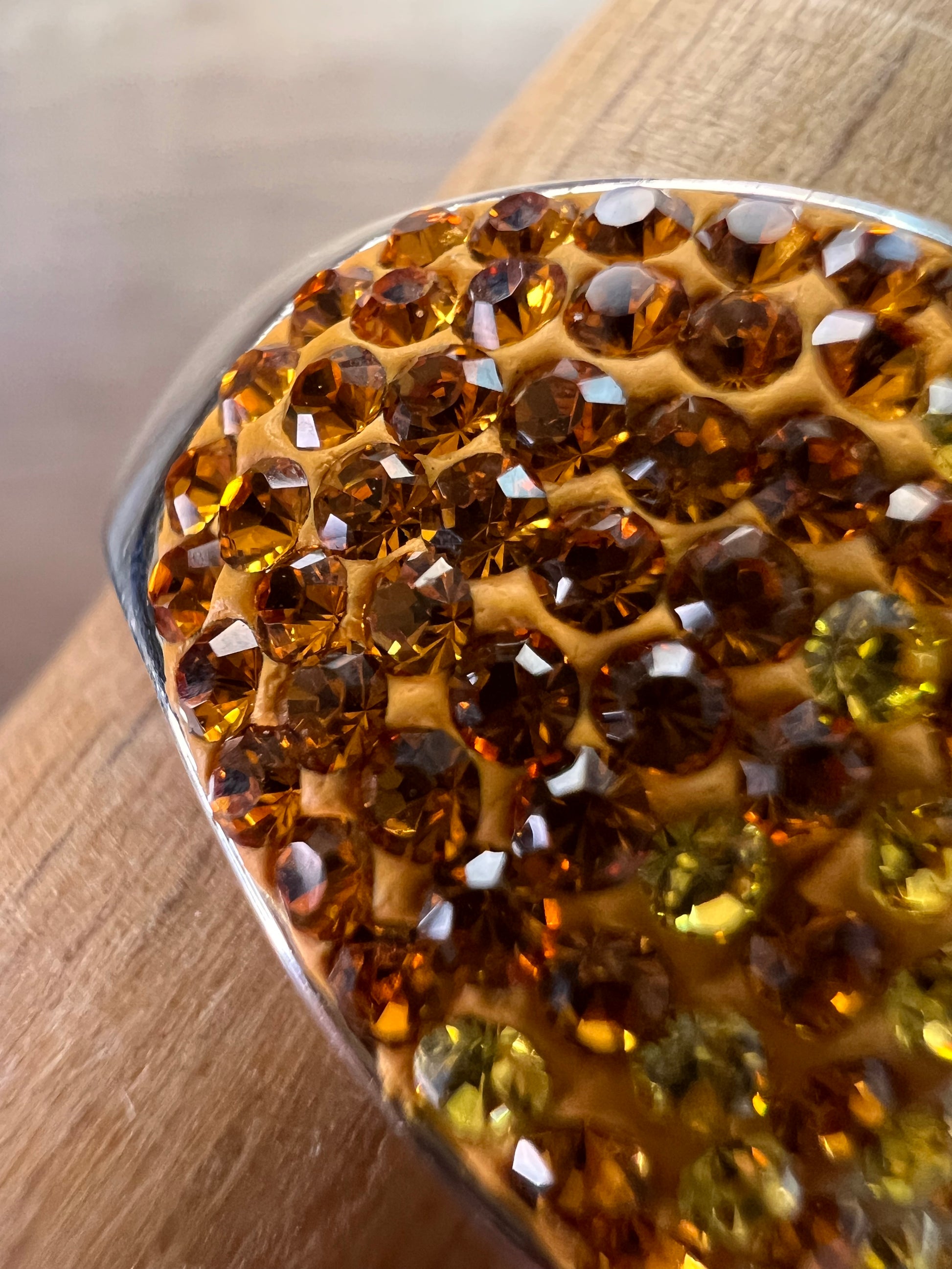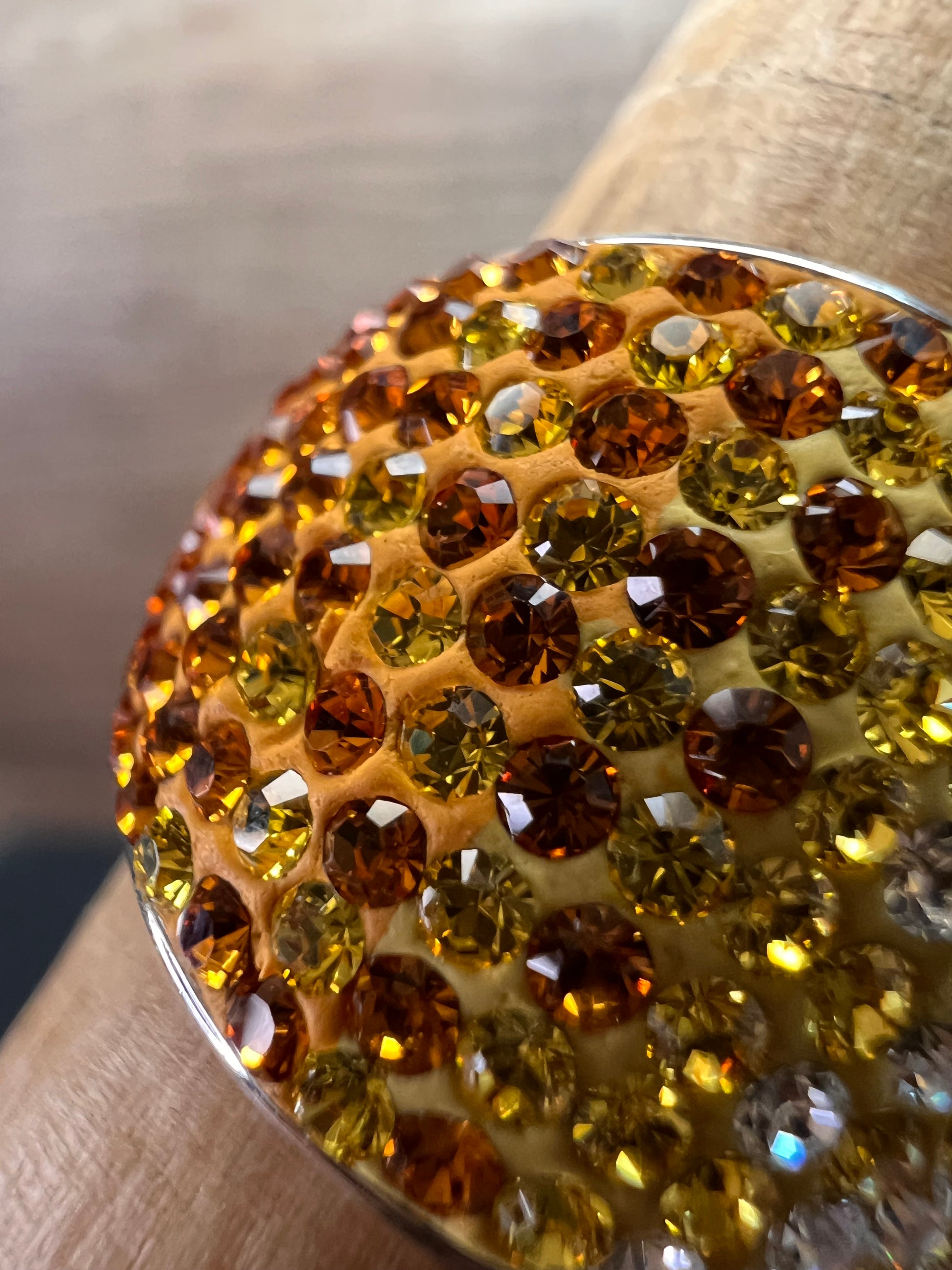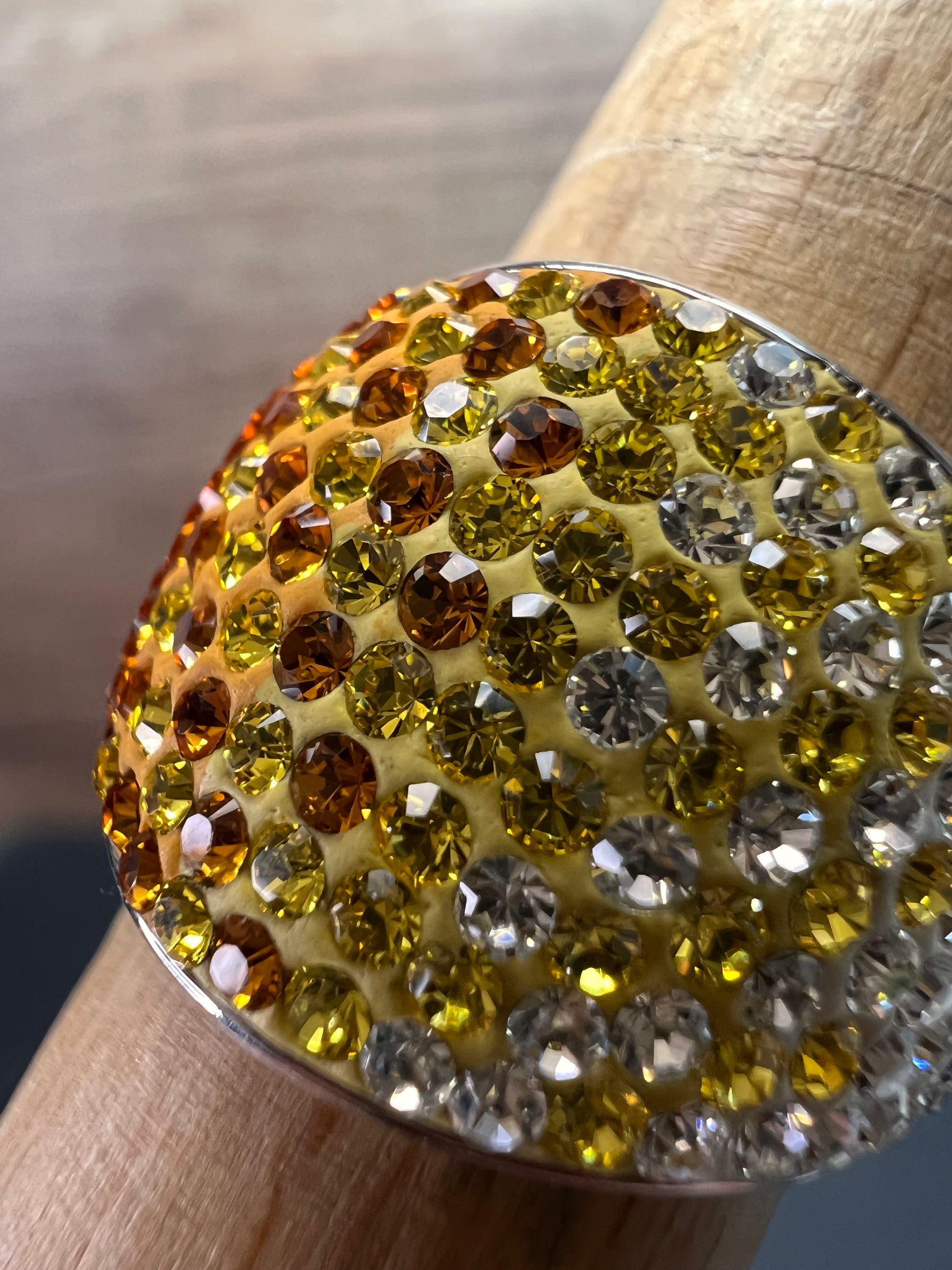 Signed Chelsea Taylor designer sterling silver ring with encrusted yellow ombré rhinestones. Size 8. Made in Thailand. Covered with an e coating to protect finish and stones. 925. Total weight is 7.94 grams. This is a sturdy, well made ring with a nice weight.