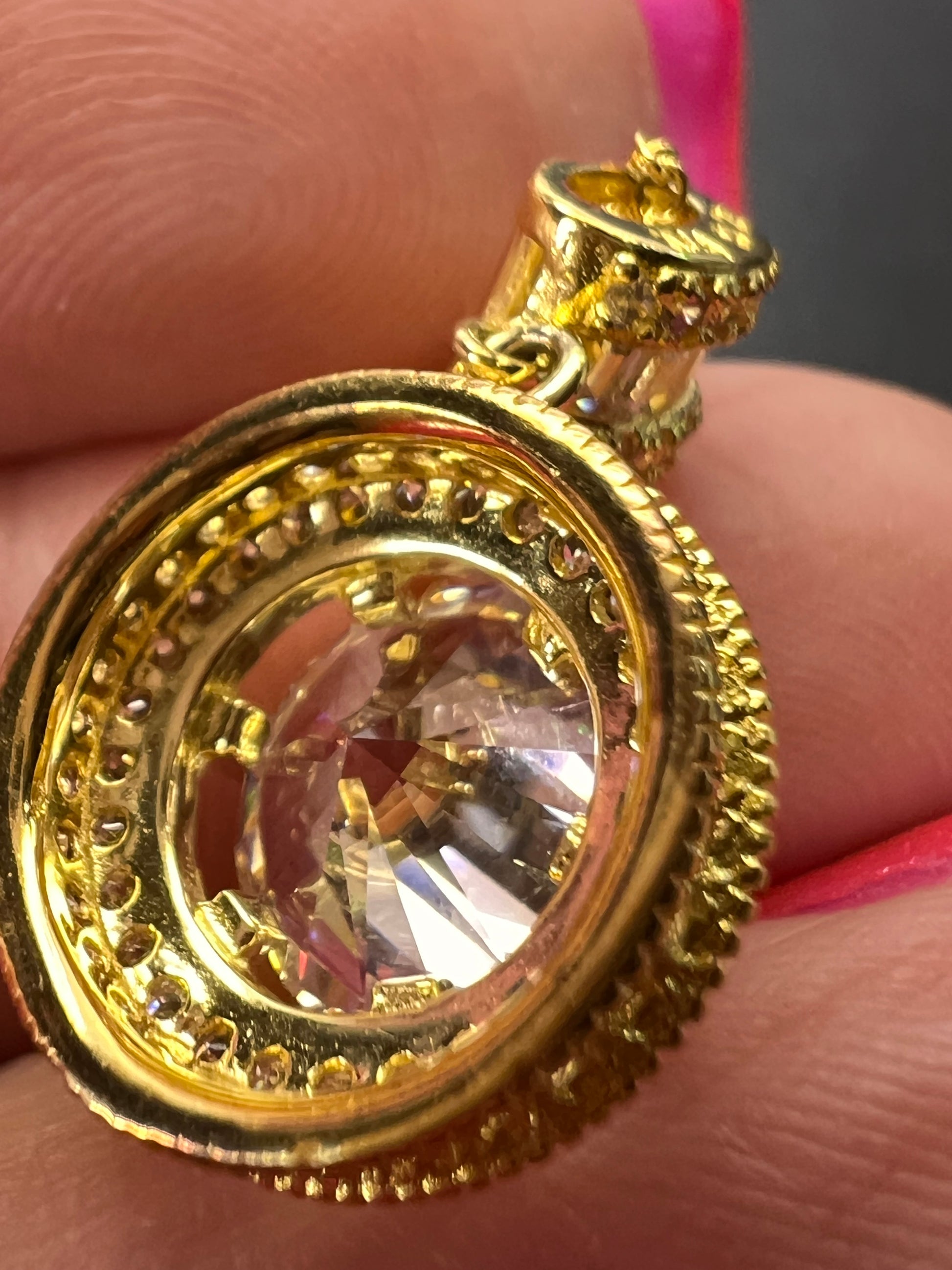 Signed FZN gold over Sterling CZ halo pendant and chain necklace