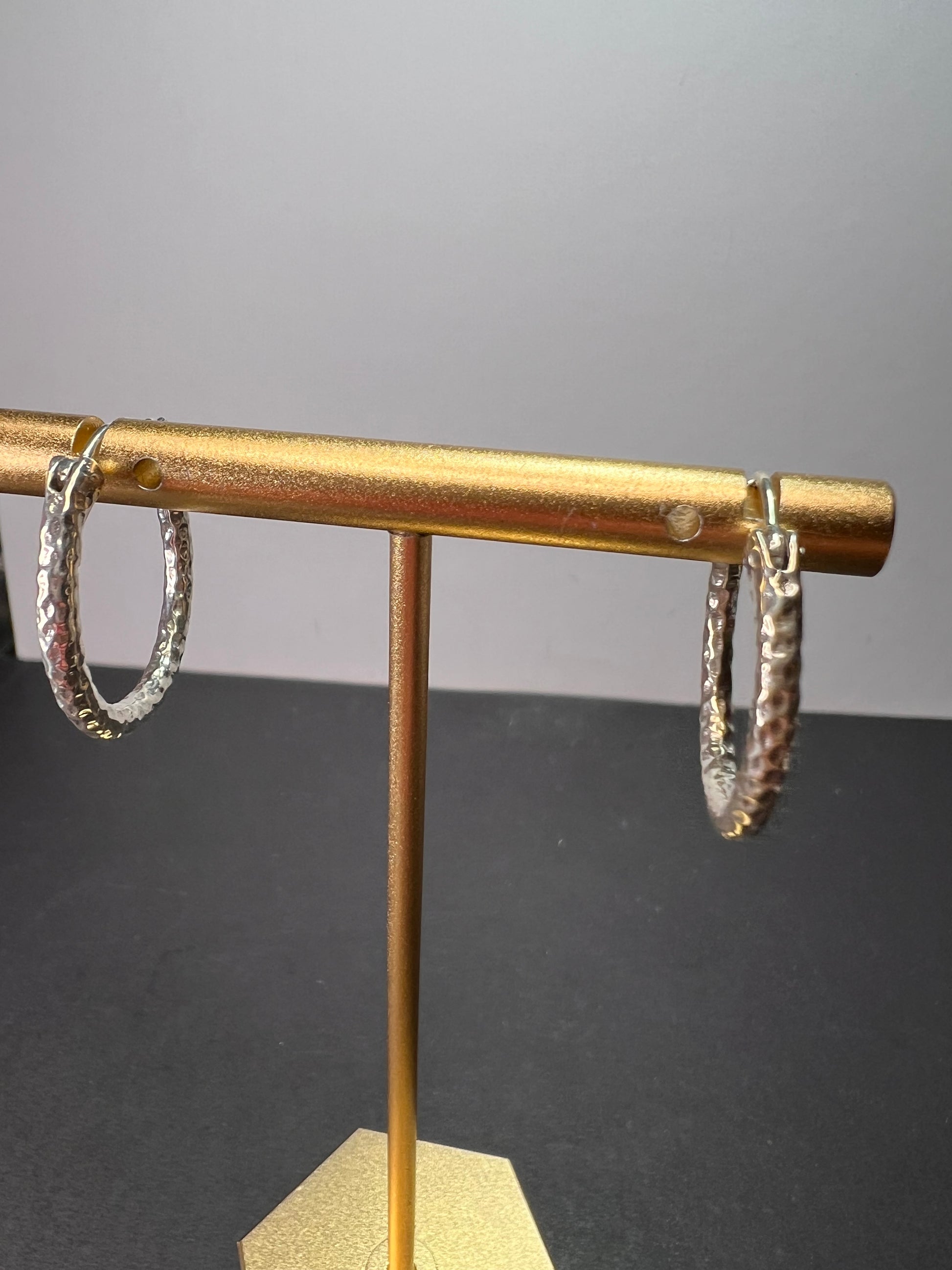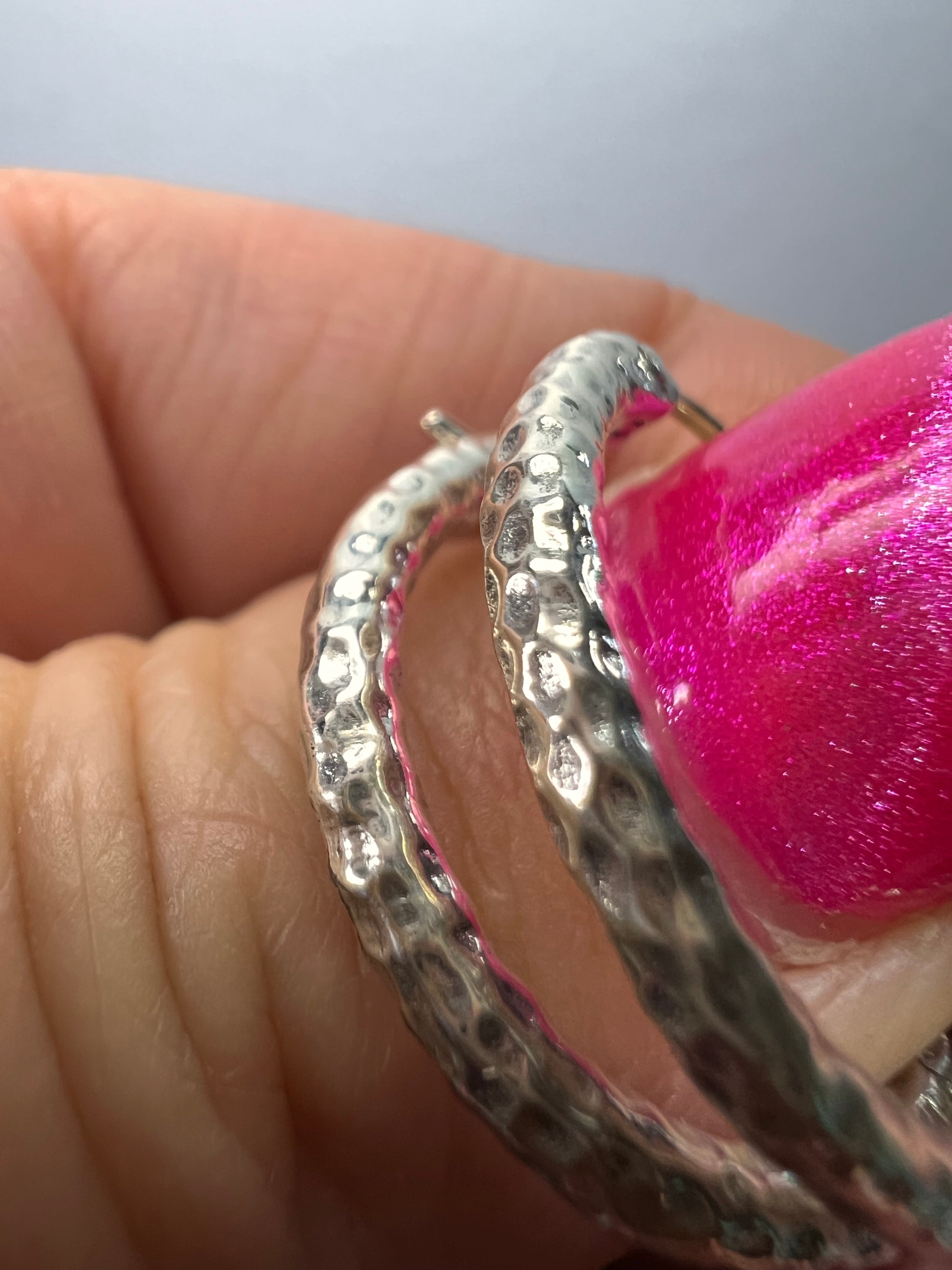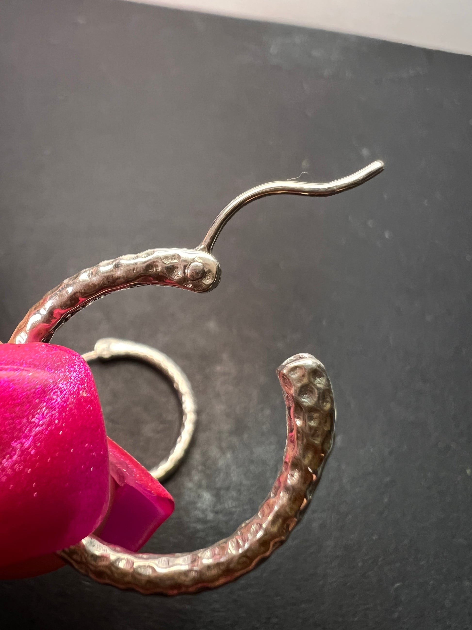 Signed Sarda sterling silver hammered hoop earrings new in bag