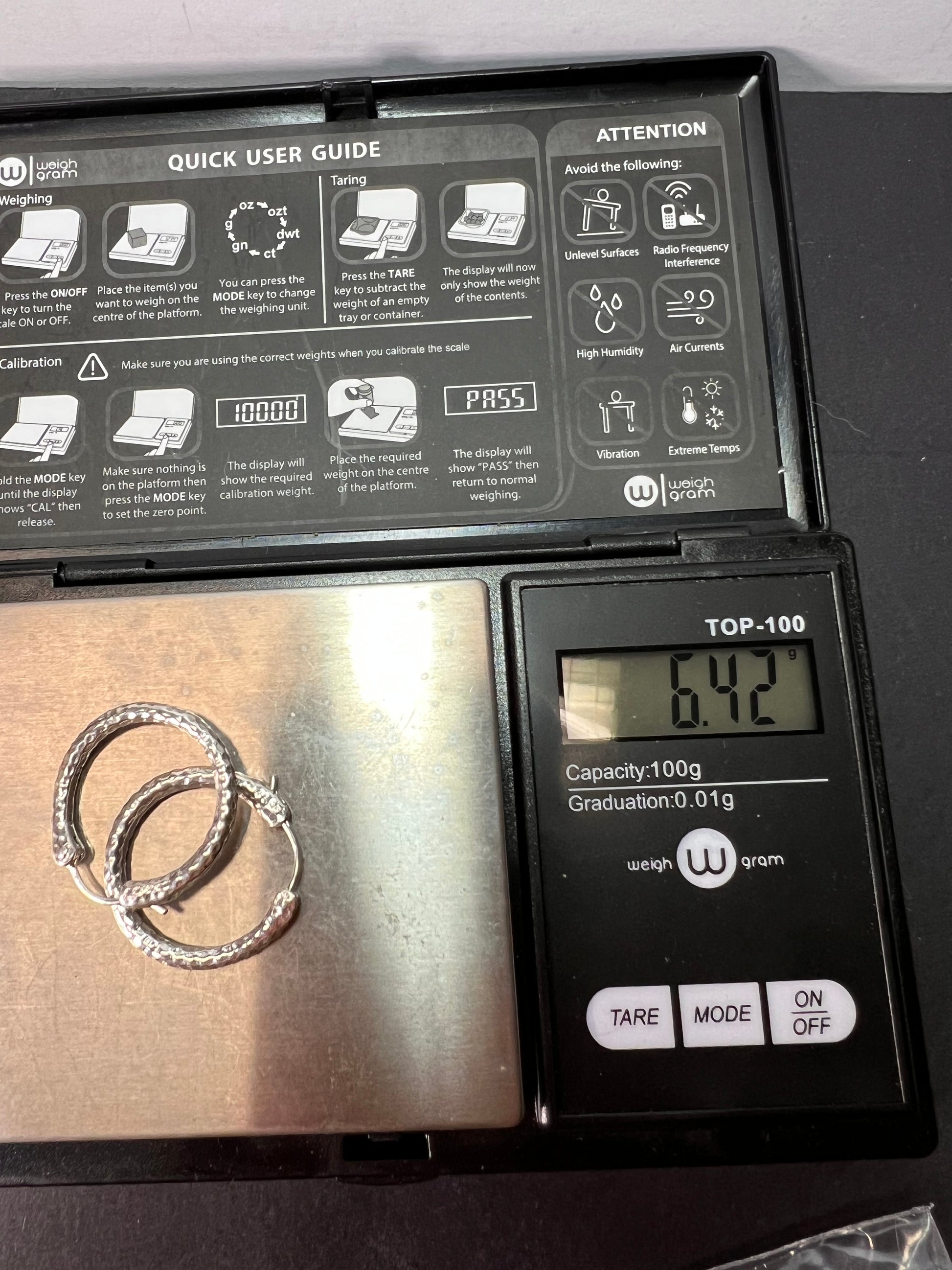 Stamped Sarda 925 designer hammered hoop earrings. Total weight 6.42 grams
