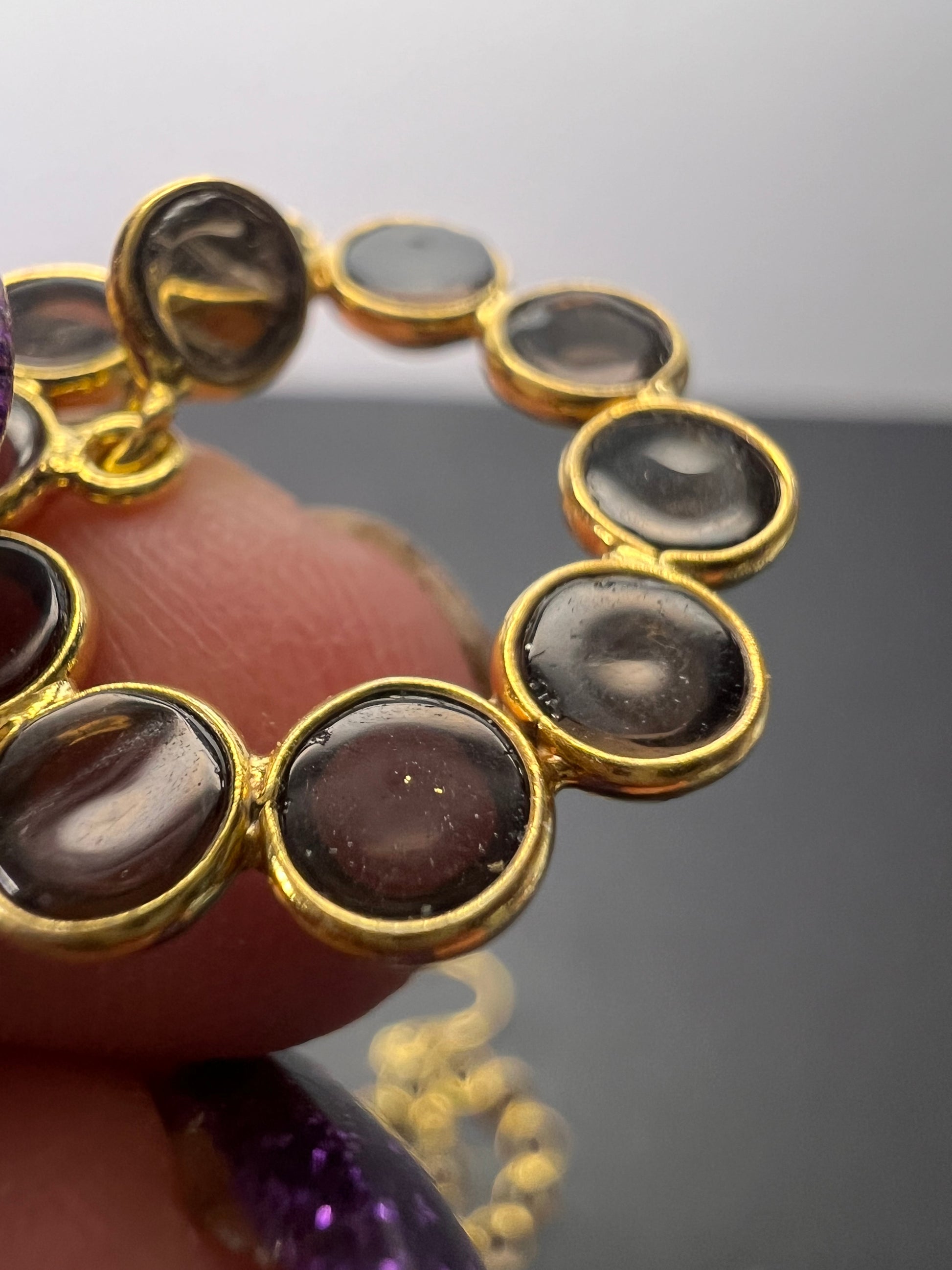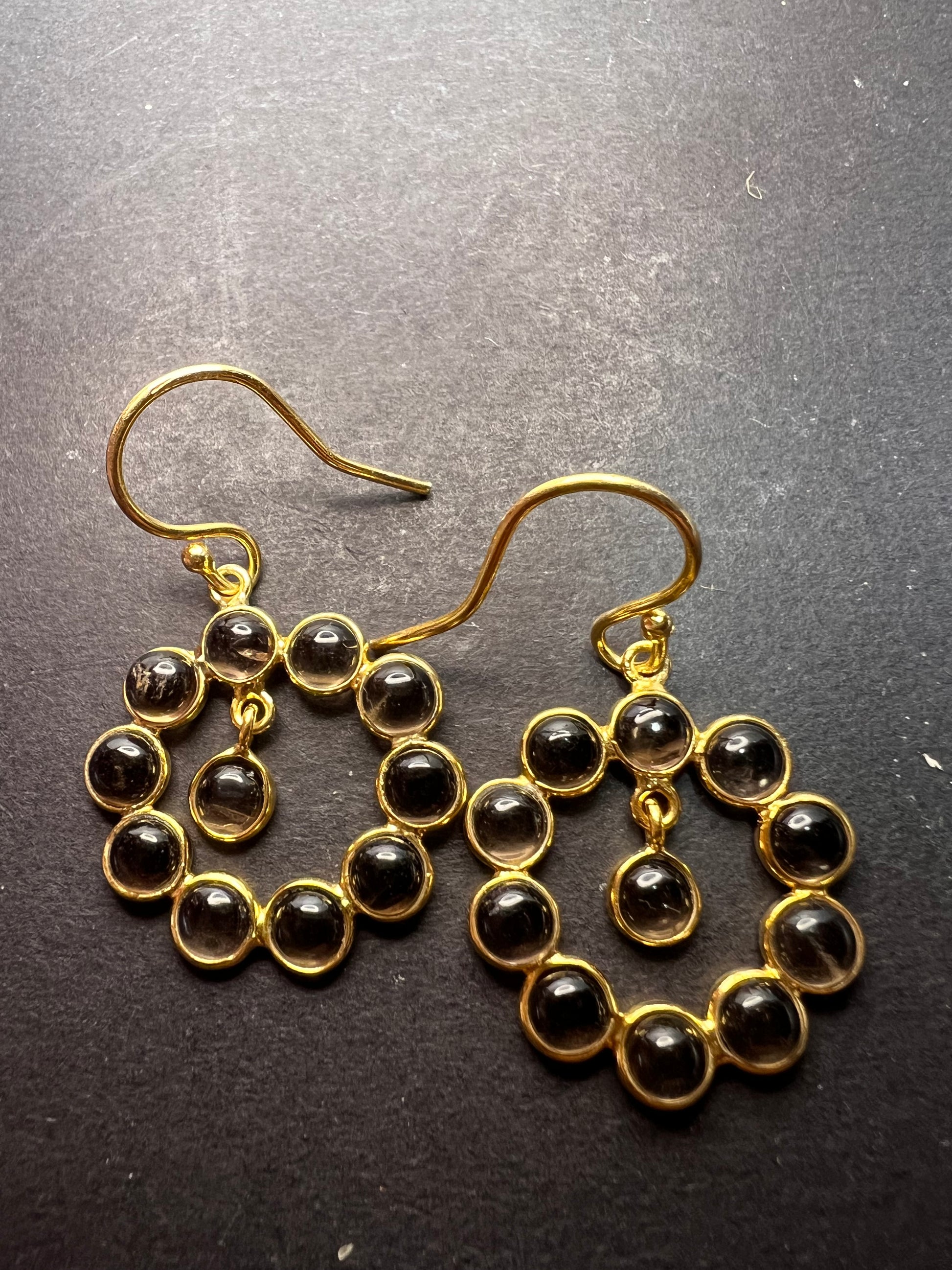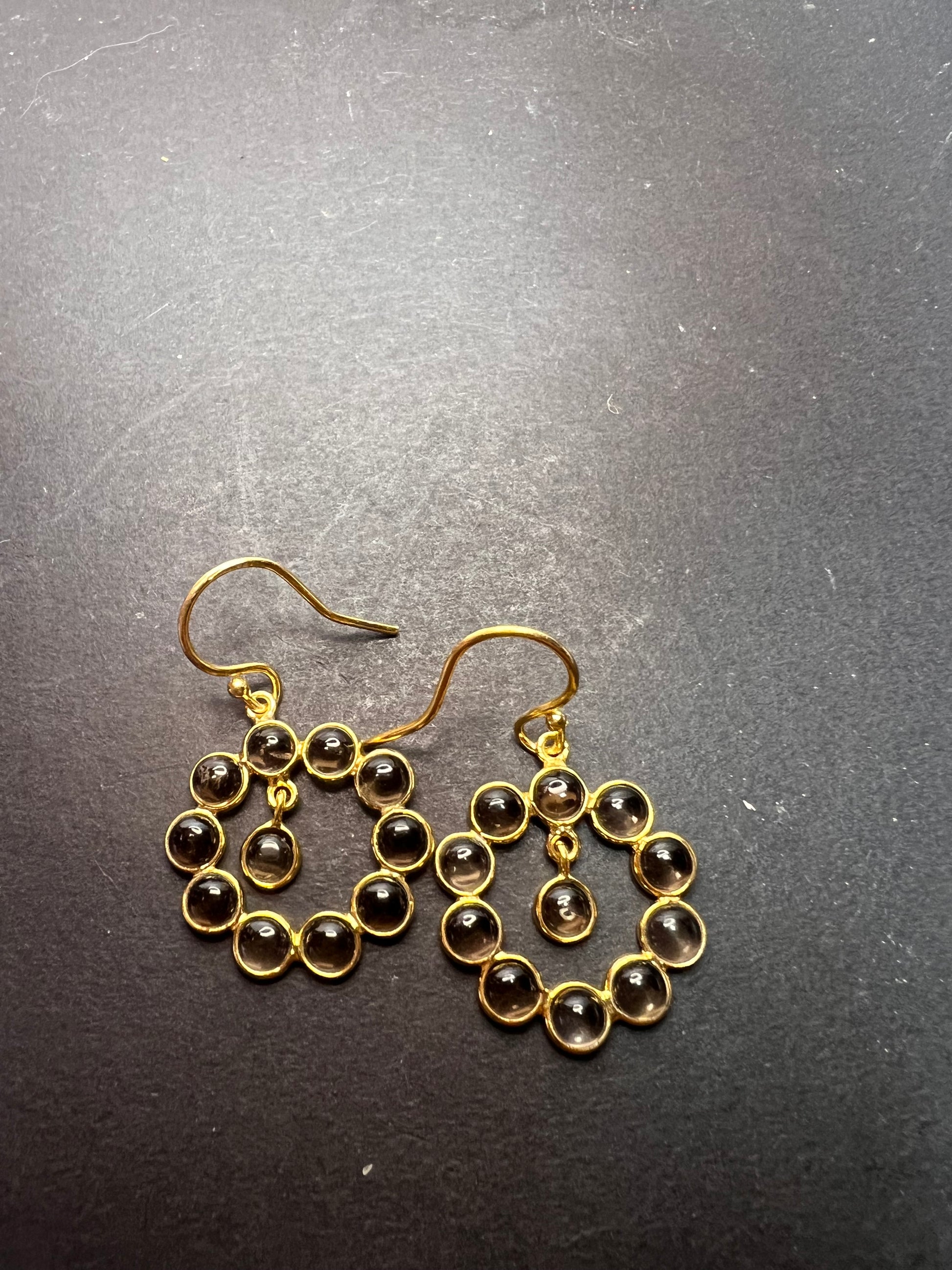 Brown cabochon stones are smoky quartz. I couldn’t find a stamp anywhere on the metal but these are being priced so low that it wouldn’t make a huge difference anyways. I’m pretty sure they’re vermeil though. I just couldn’t say for sure. So take them as you will.