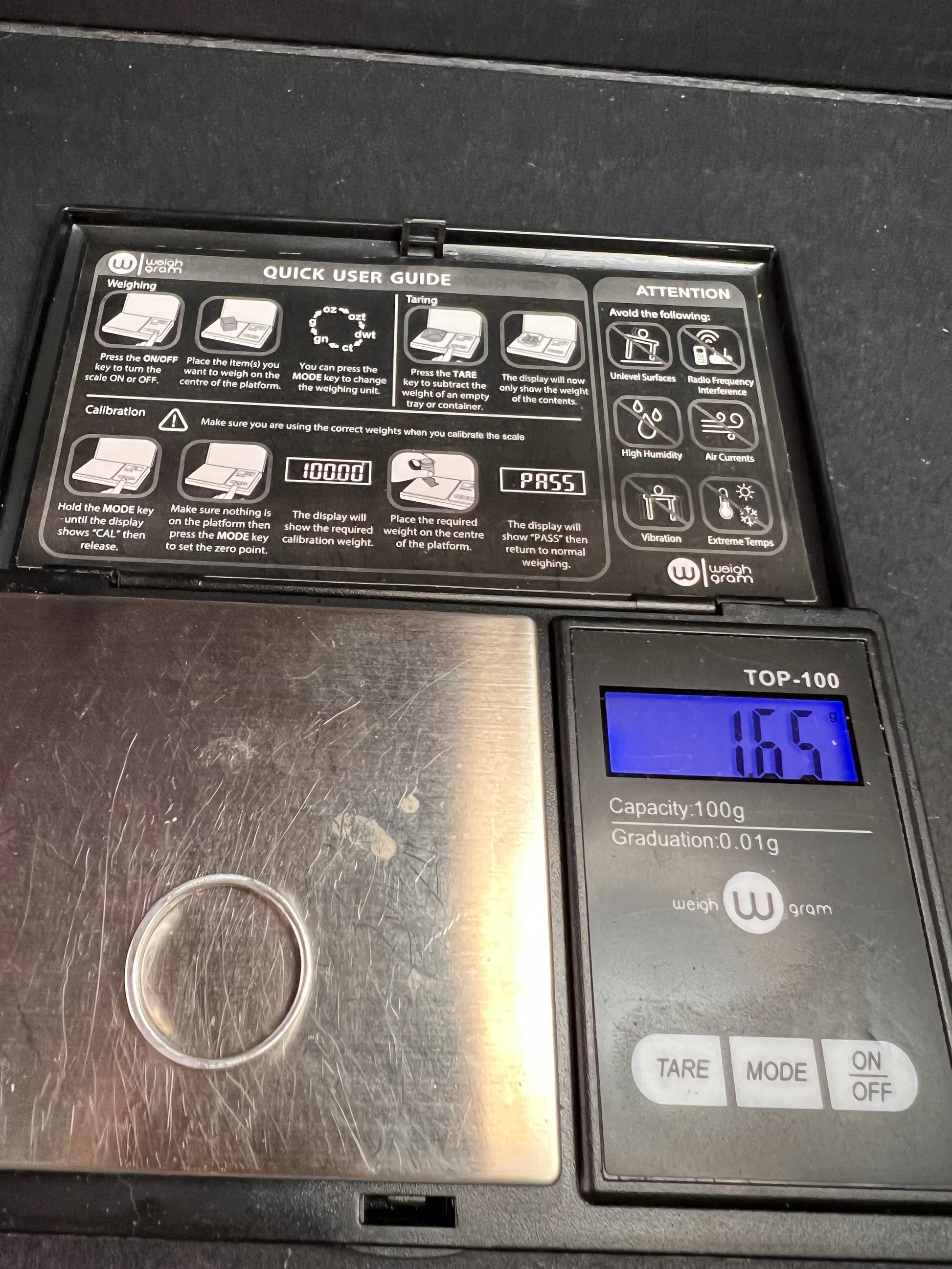 Pre owned sterling silver band ring in good condition with light surface wear from normal use. The front features the word FAMILY in bold blackened lettering, giving it a meaningful, simple design that works well for everyday wear. It’s a comfortable, low-profile band that can be worn alone or stacked. Inside the shank is stamped 925 IBB TH, confirming sterling silver made by IBB with Thai production. Ring size measures 7 on the mandrel and the ring weighs 1.65 grams. A sweet minimalist piece for anyone who wants to keep family close.