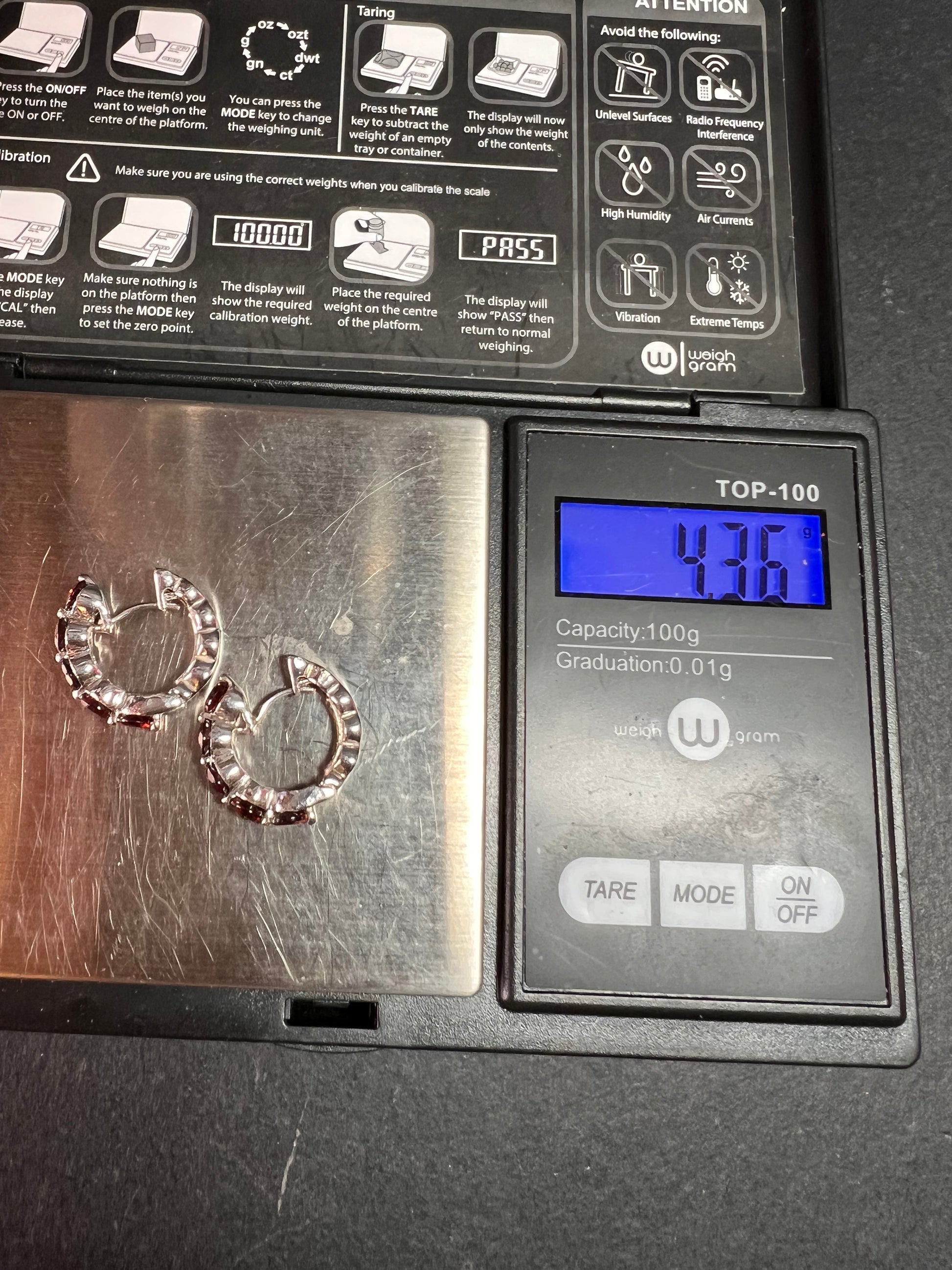 Sterling Silver Garnet Inside-Out Hoop Earrings 925 Thailand Pre Owned