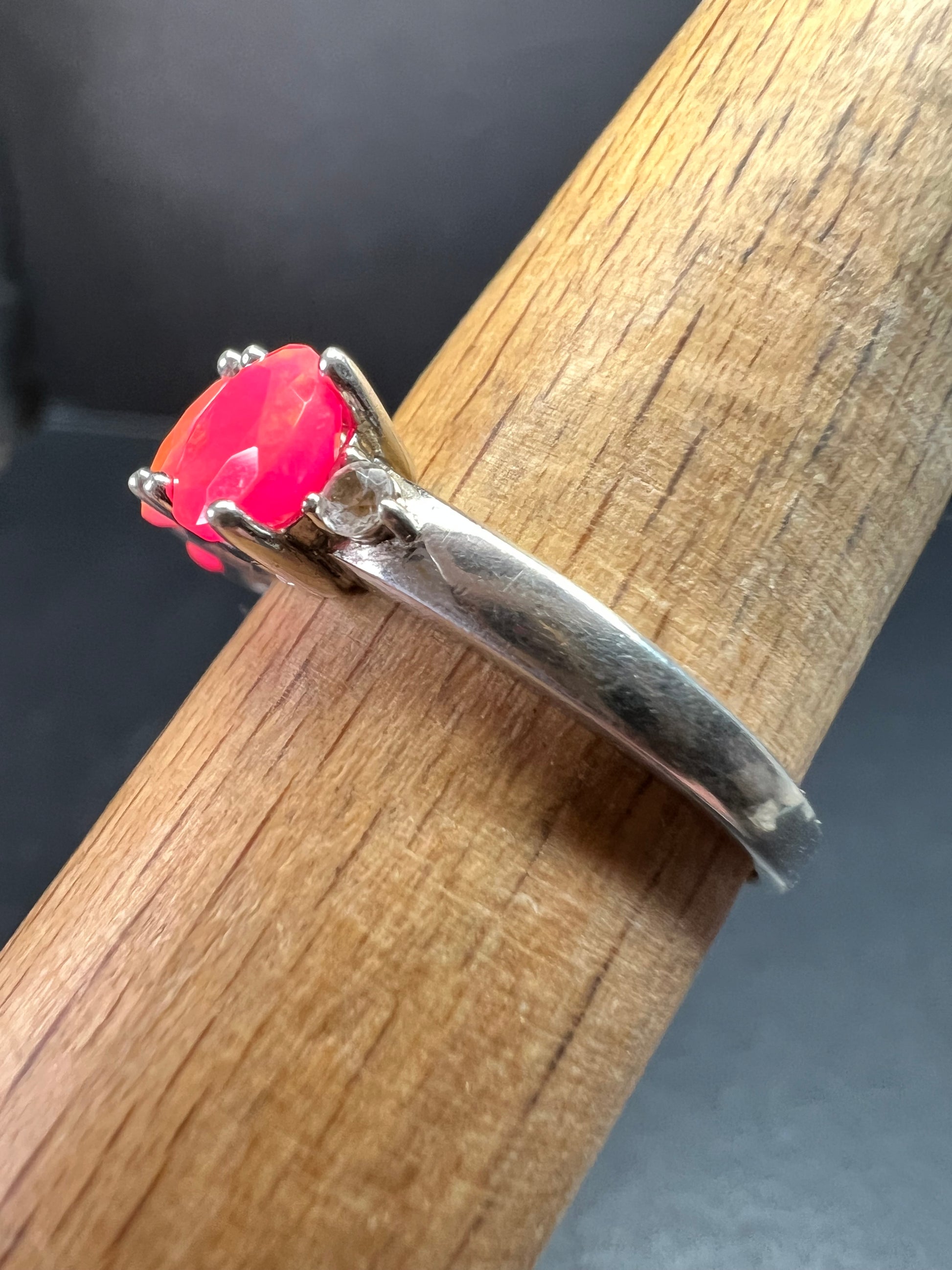 Sterling Silver Neon Pink Opal Ring Size 9 Topaz 925