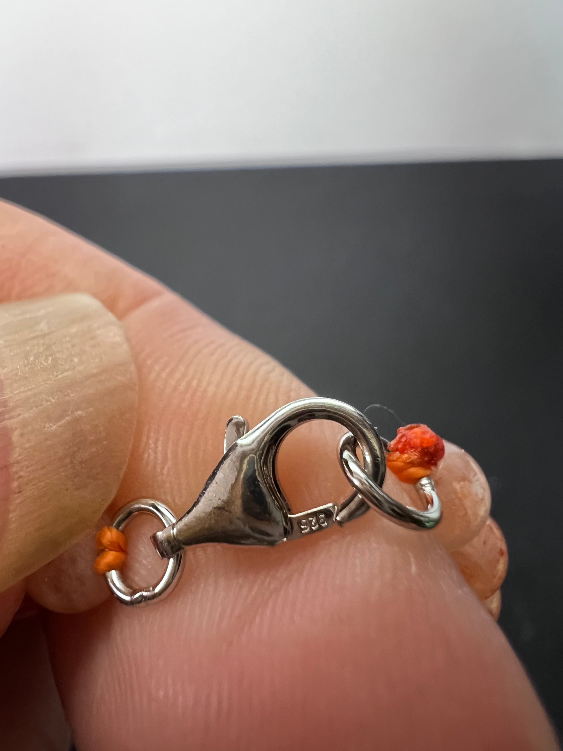 Genuine sunstone in graduated sizes. Lobster clasp is sterling silver. Measures about 18 inches.