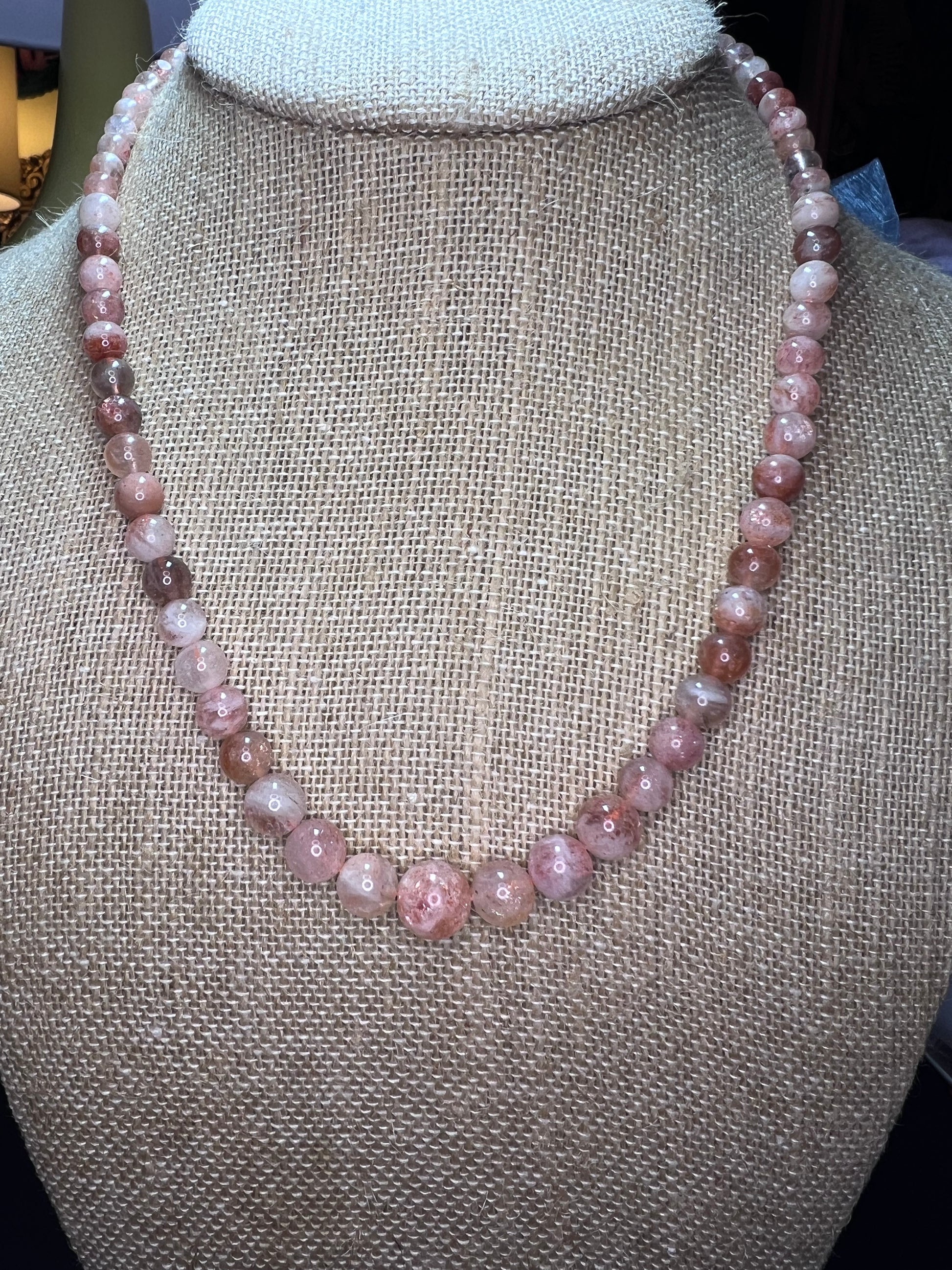 Sunstone graduated bead necklace 18 inches with sterling clasp