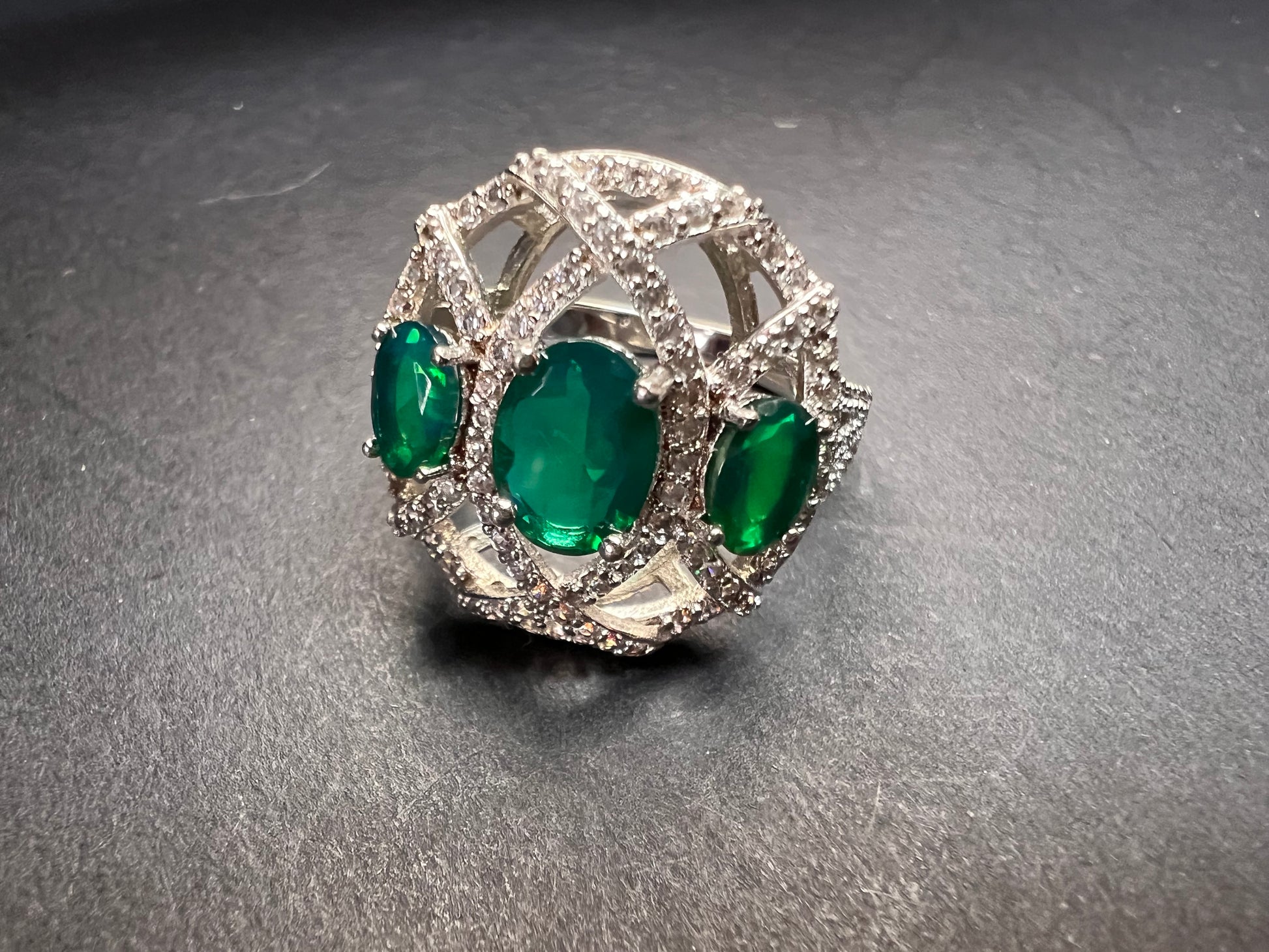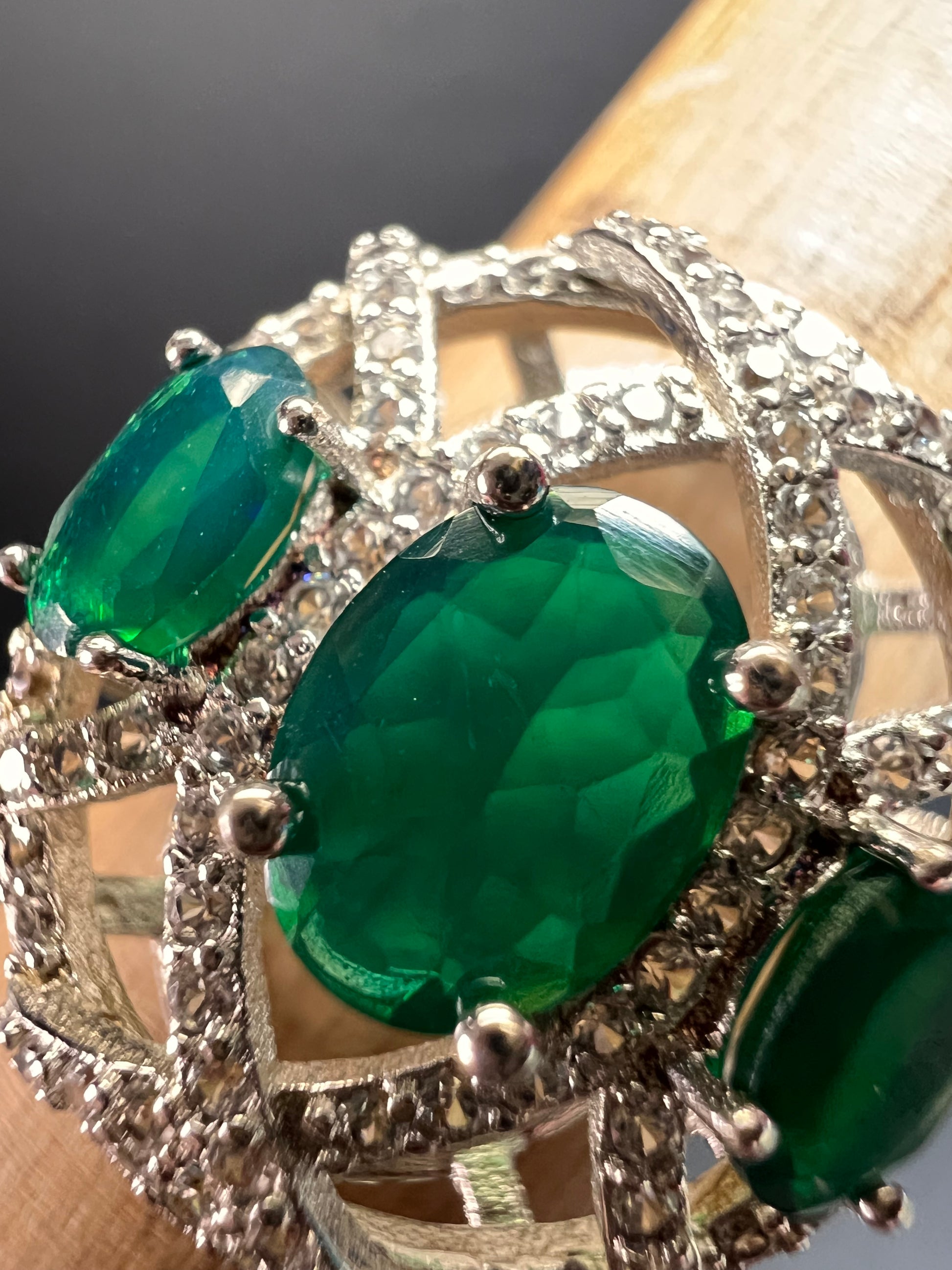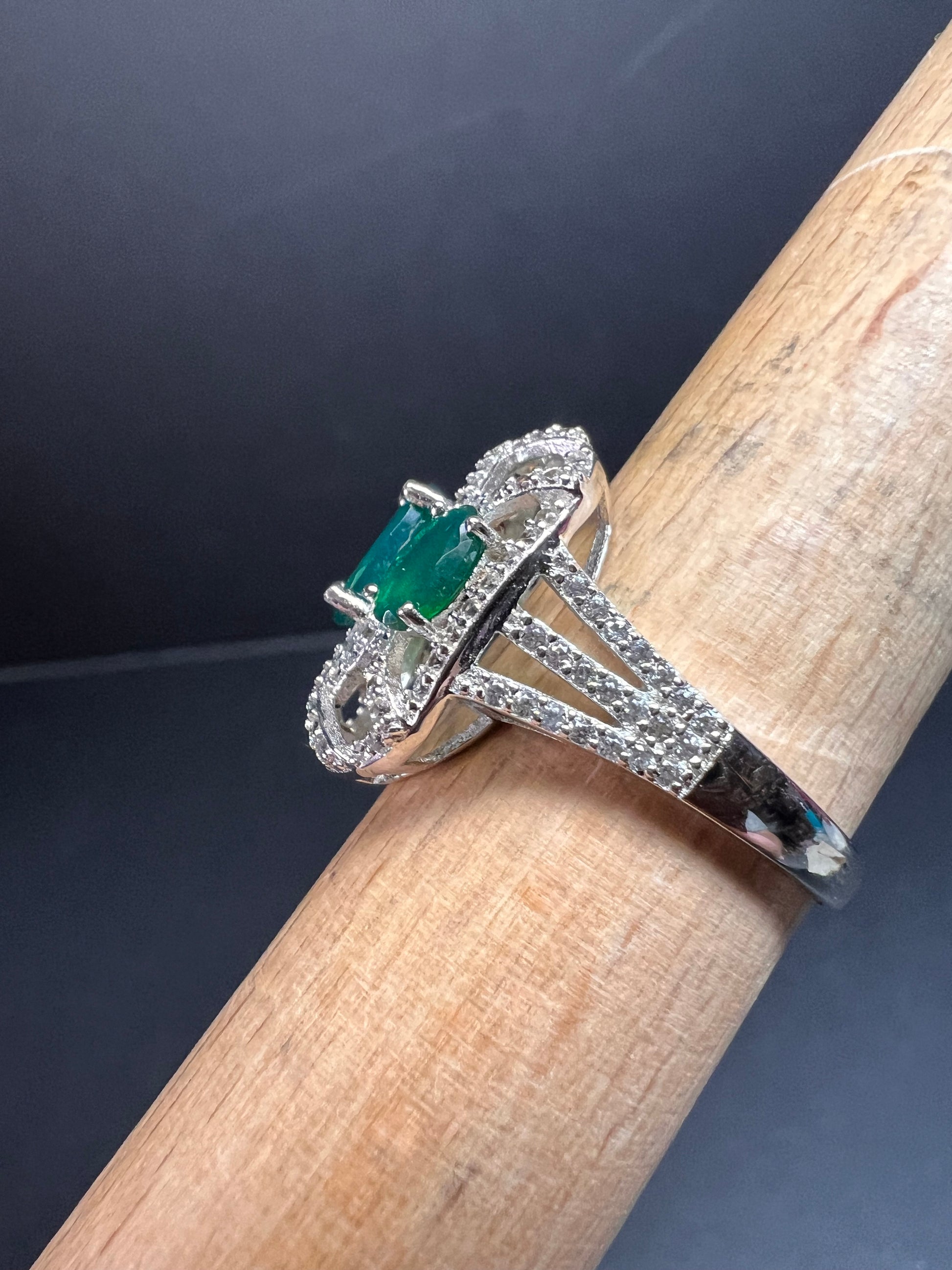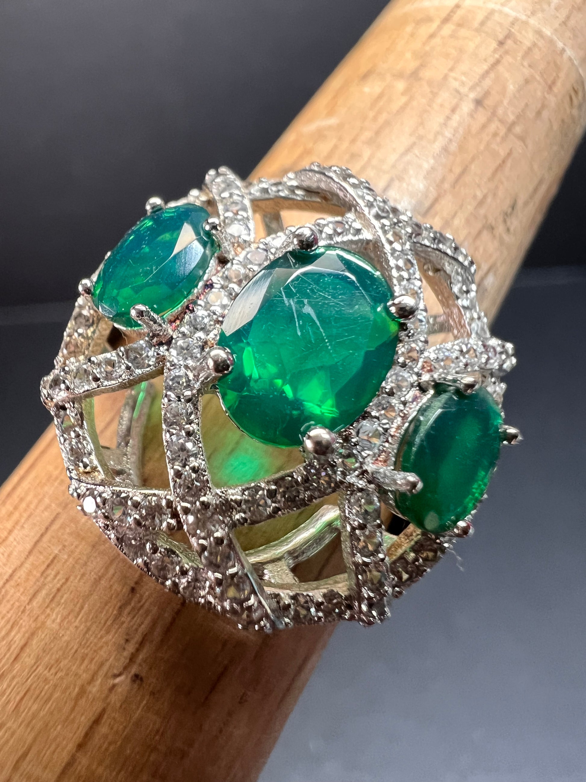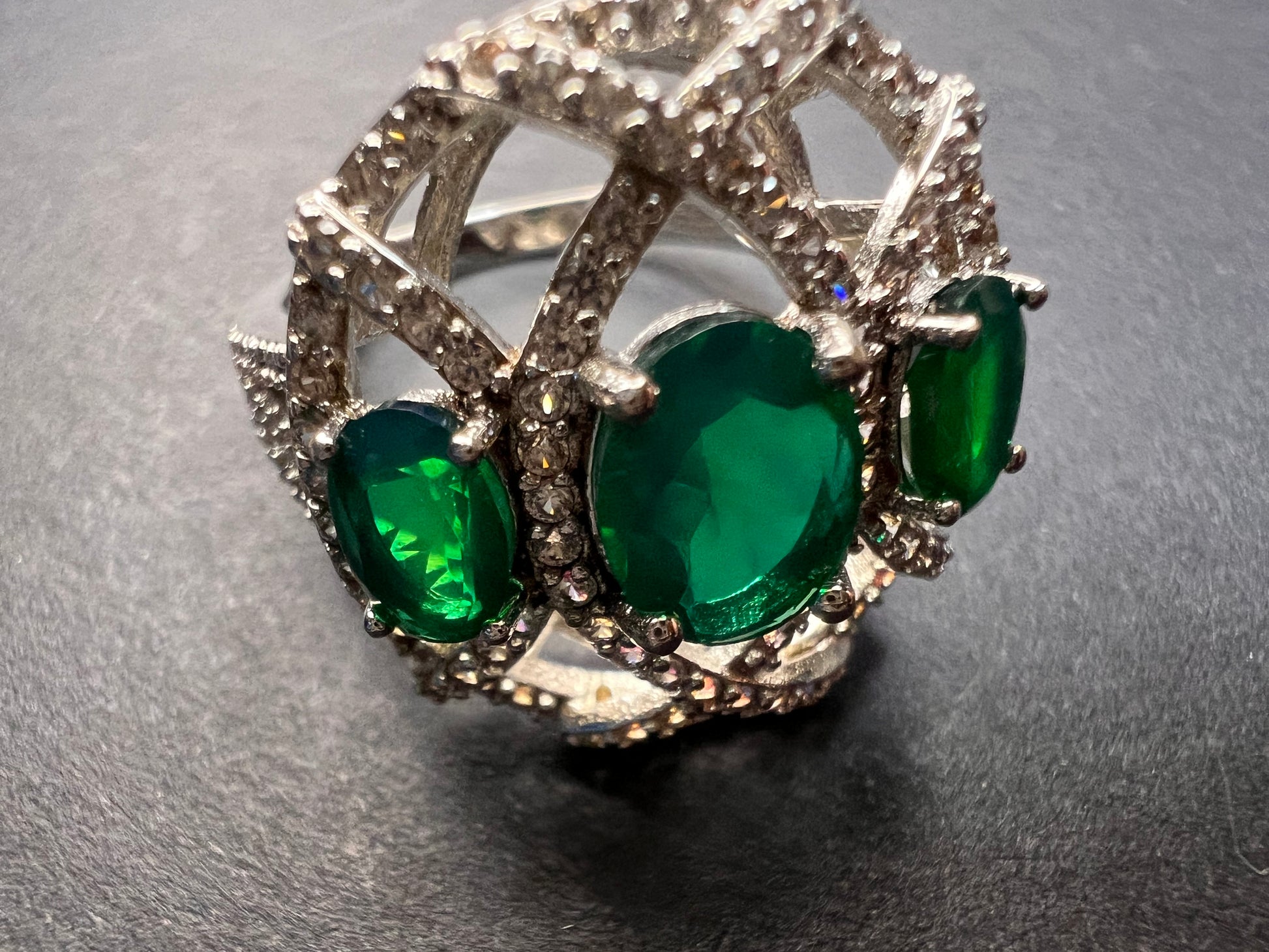 Synthetic emerald CZ sterling silver cocktail ring size 9