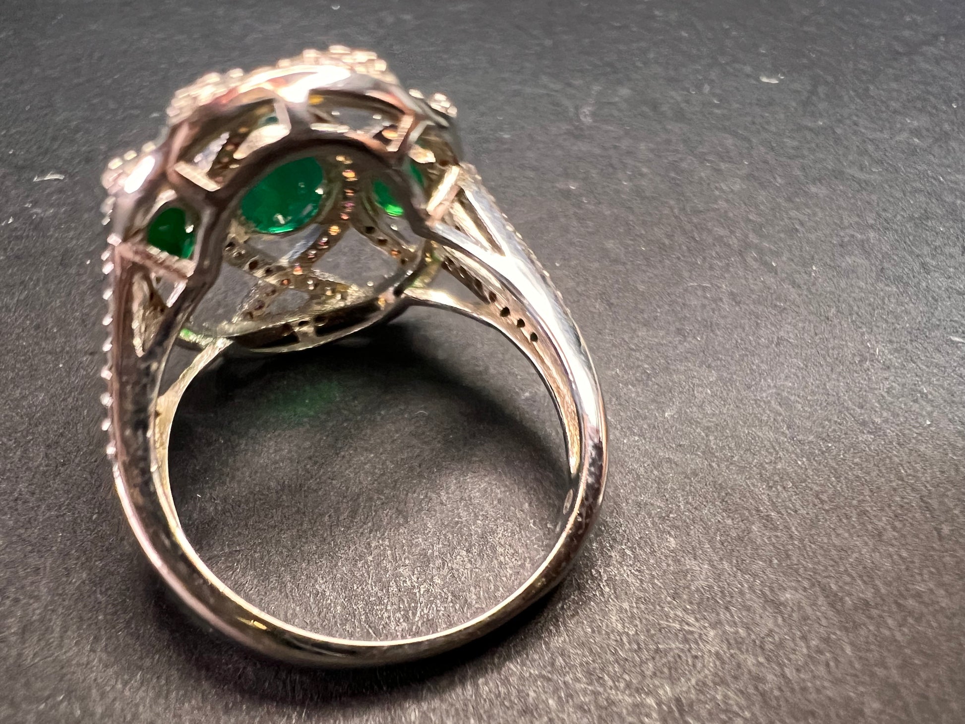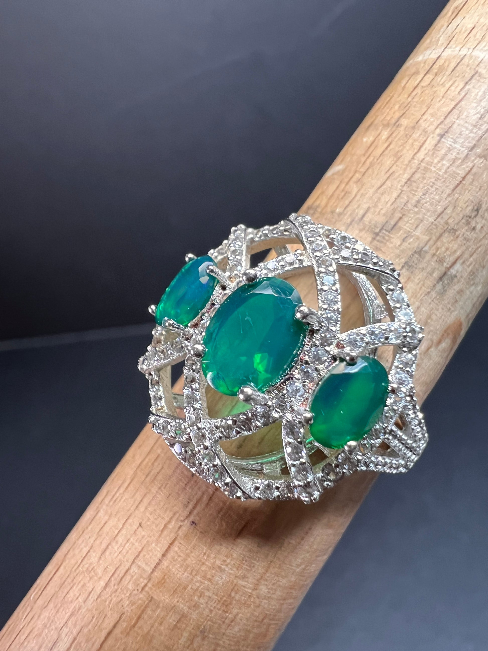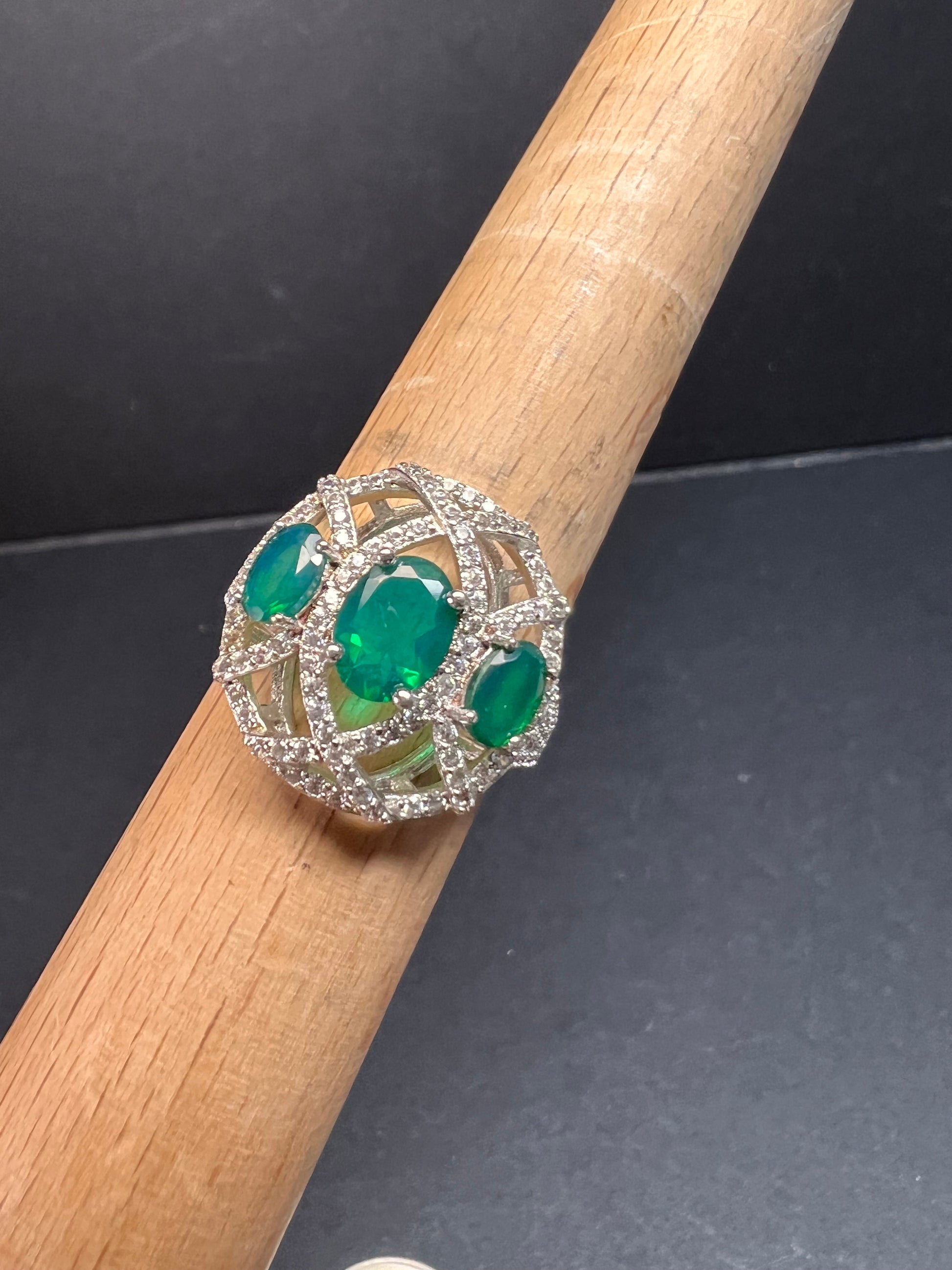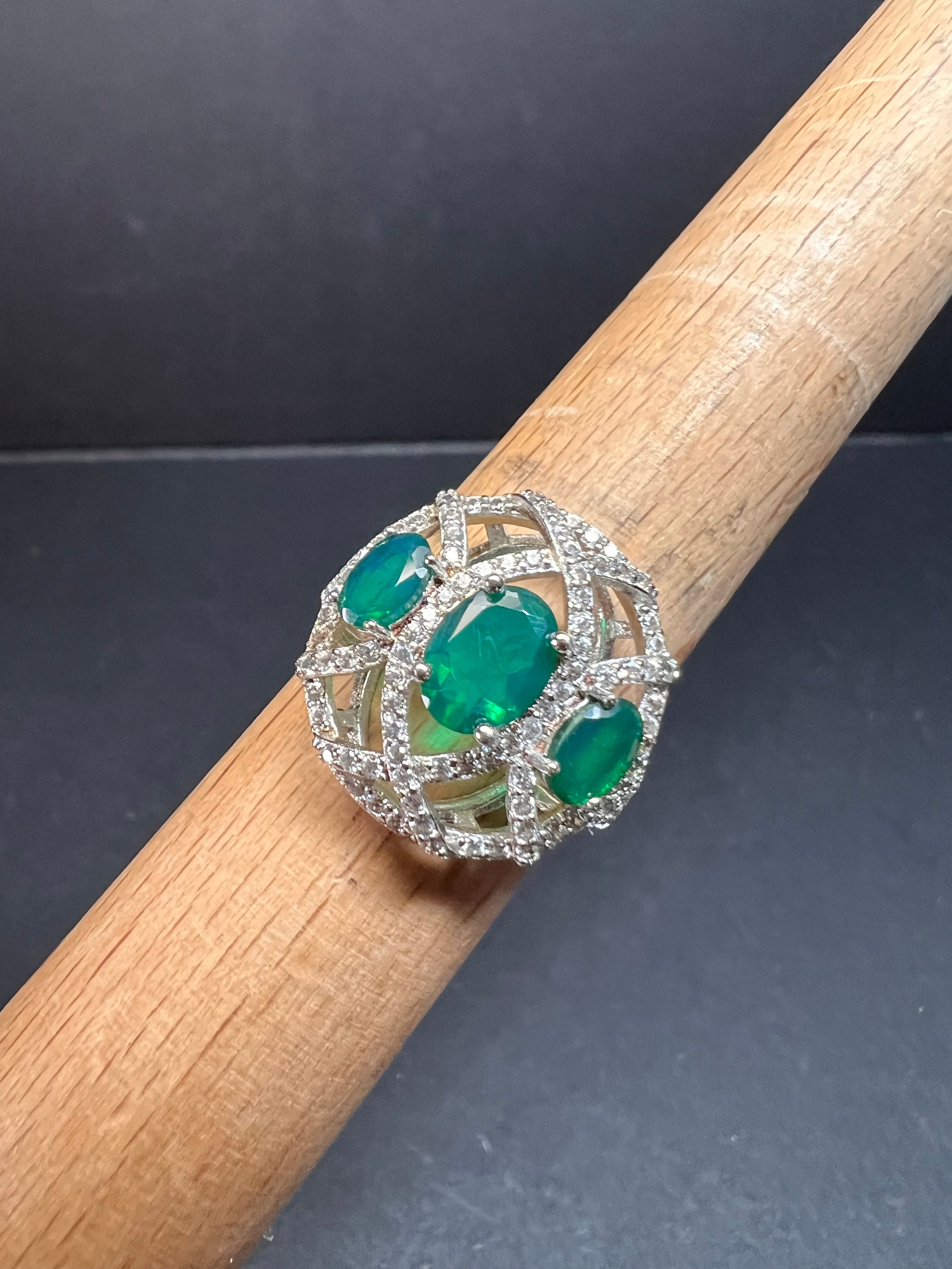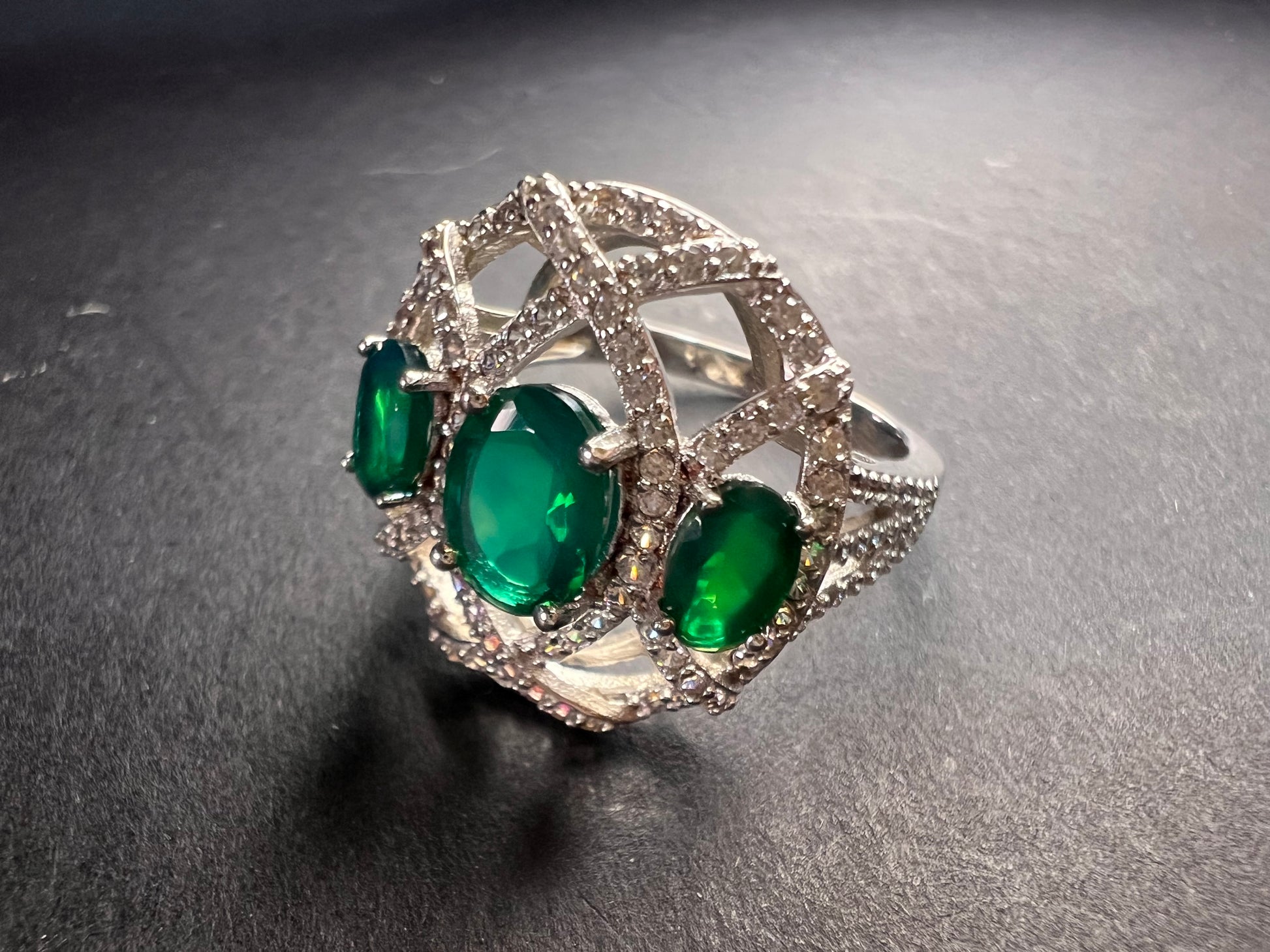 Synthetic emerald CZ sterling silver cocktail ring size 9