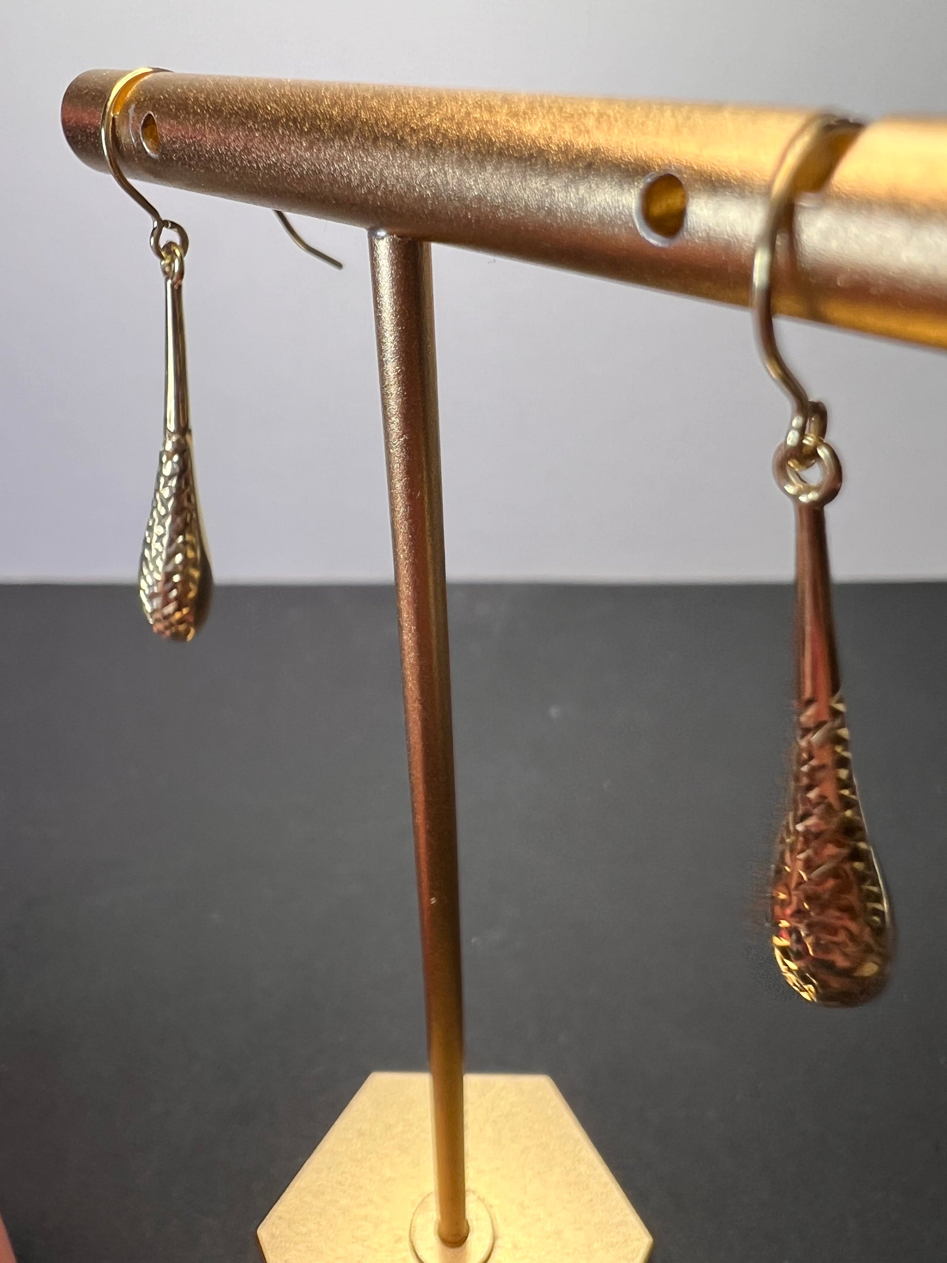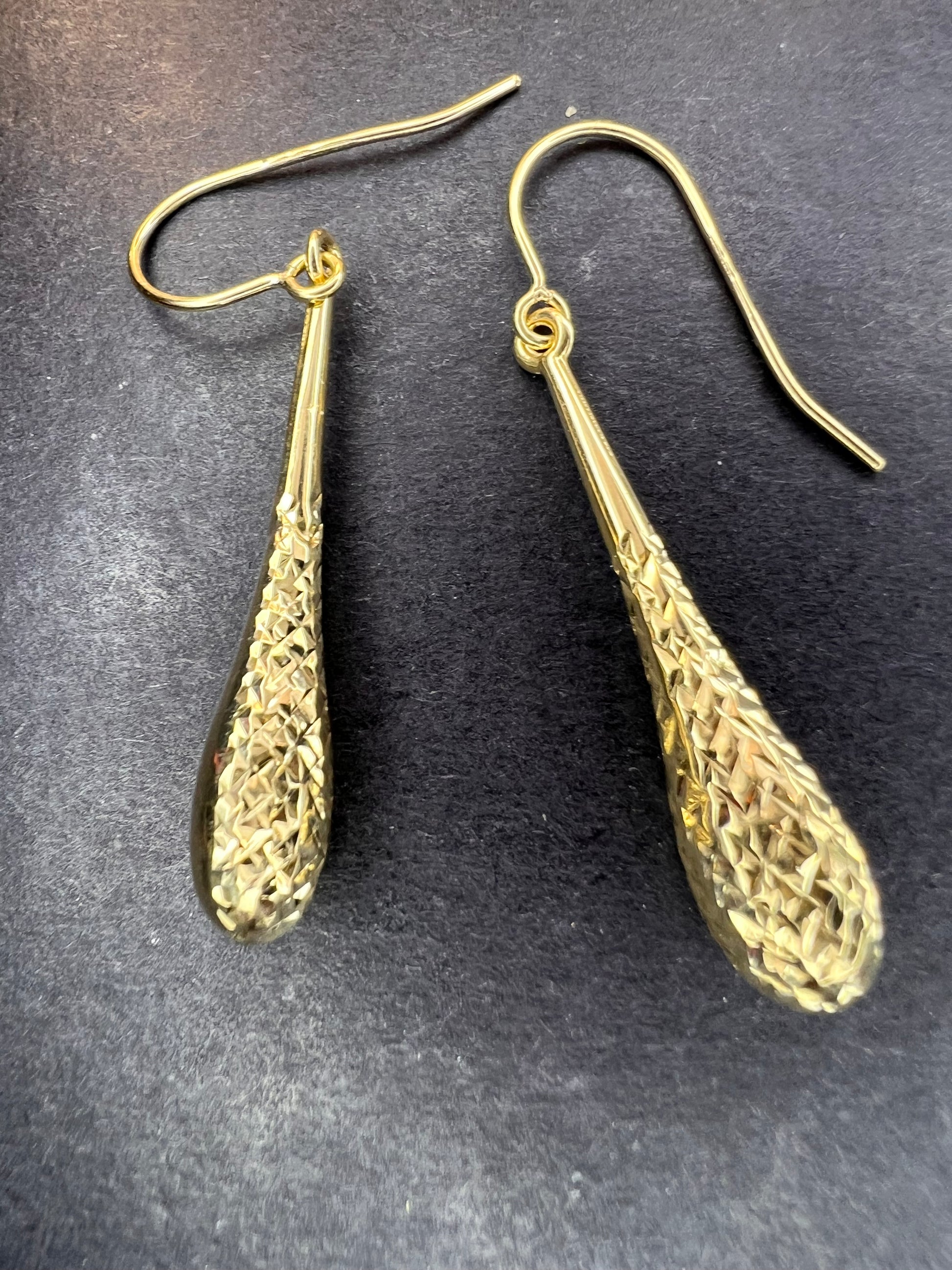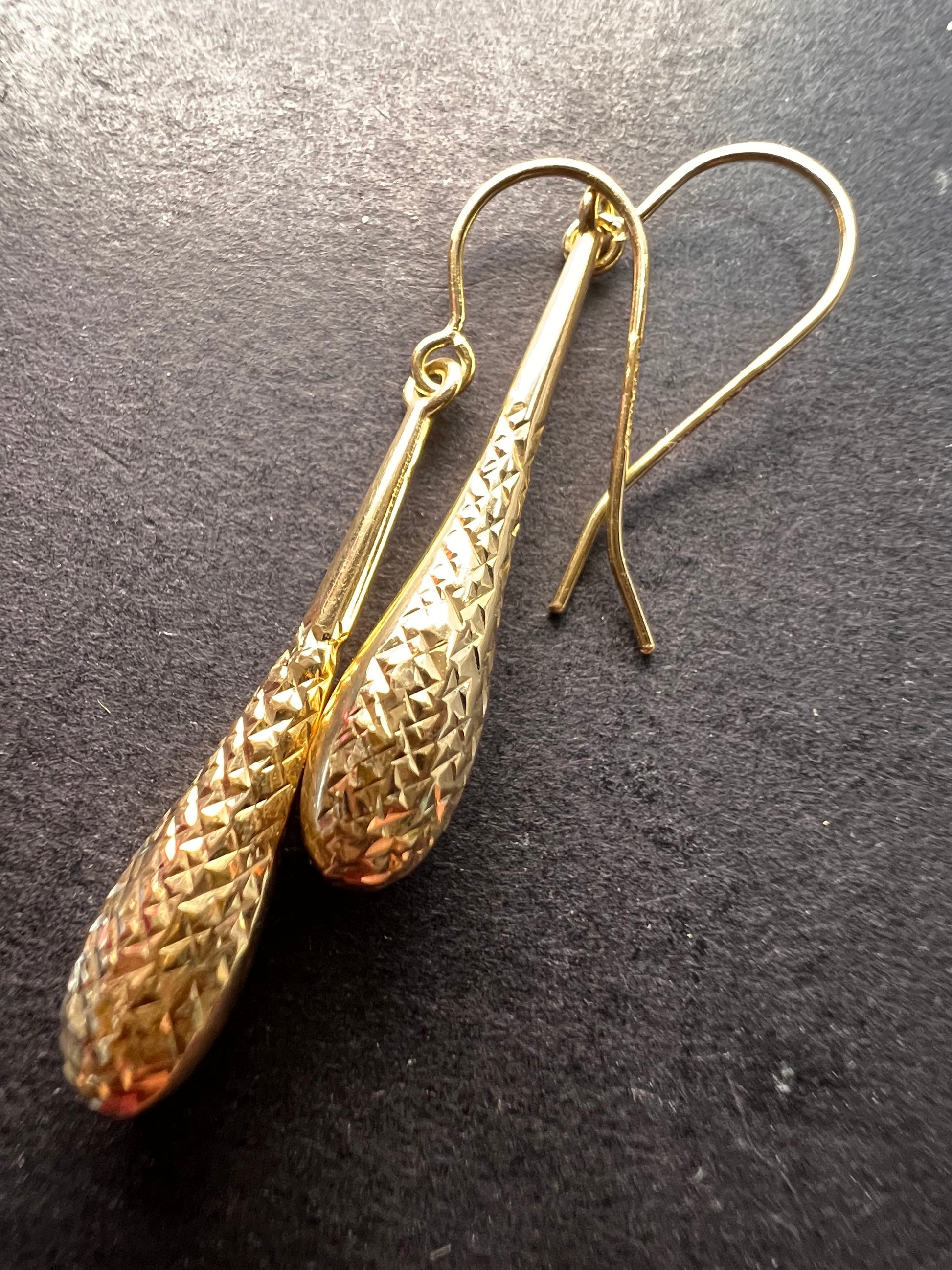Turkish 10k yellow gold diamond cut teardrop earrings