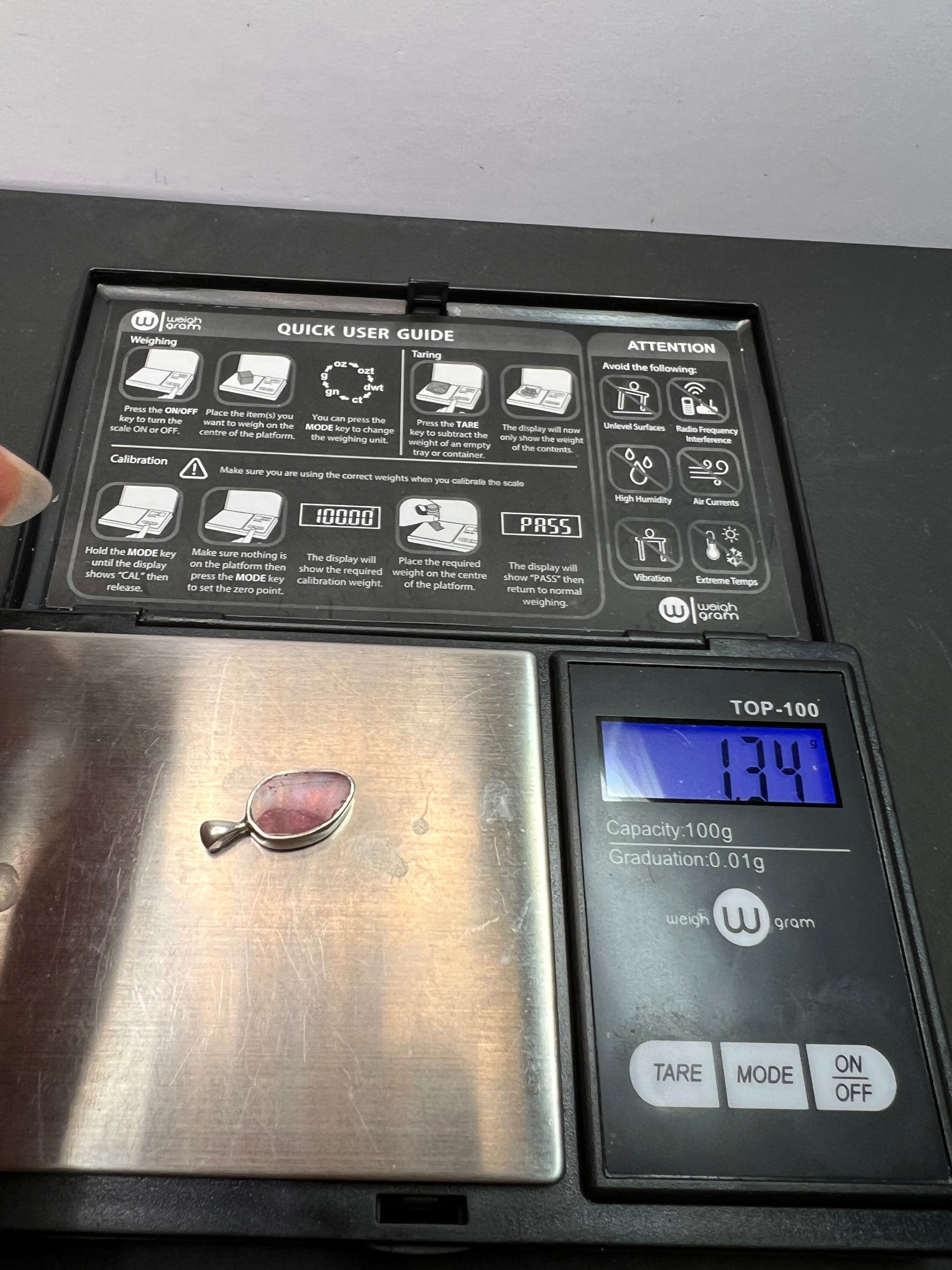 NEW Pink tri color tourmaline sterling silver pendant 1.34 grams