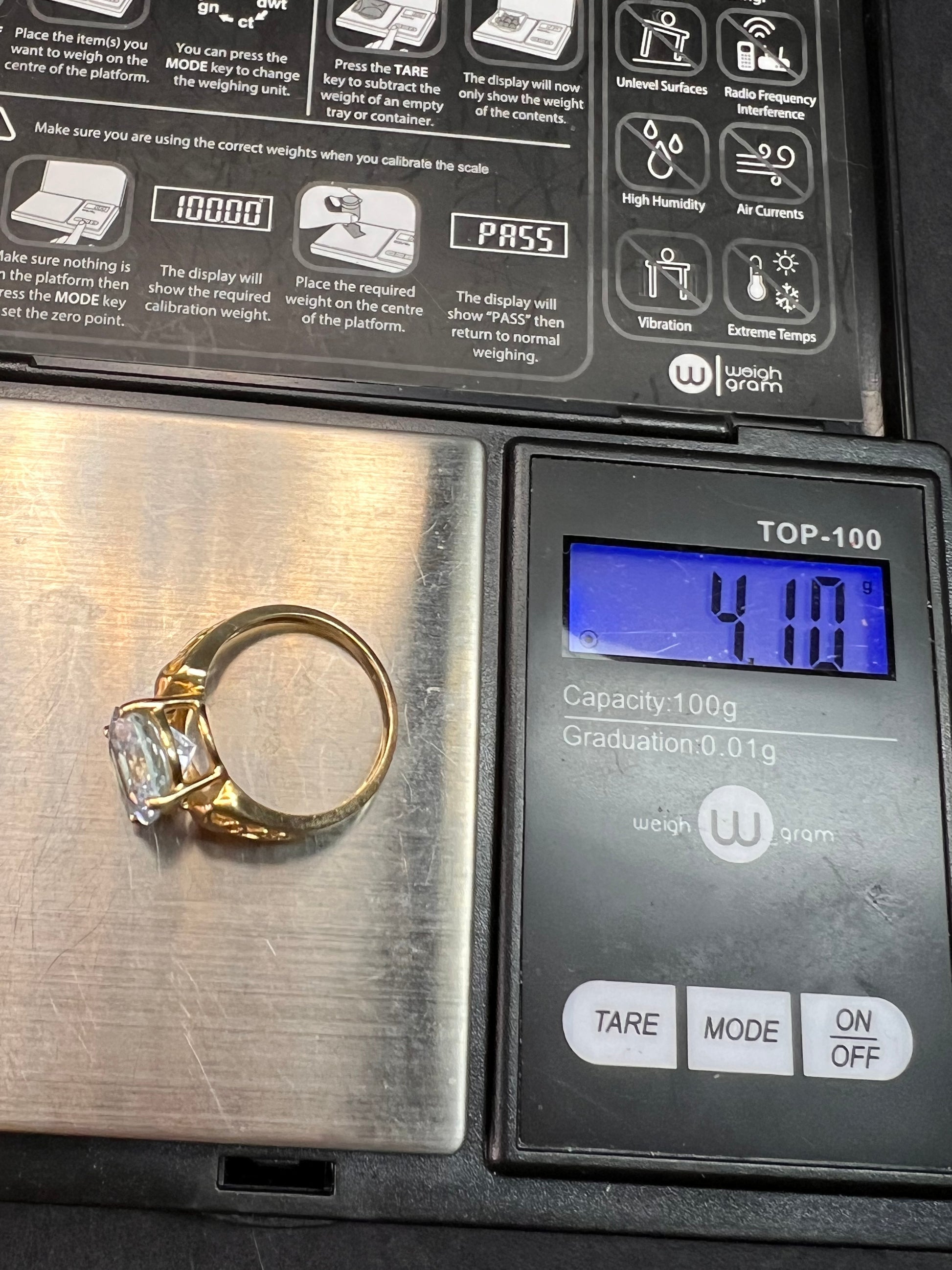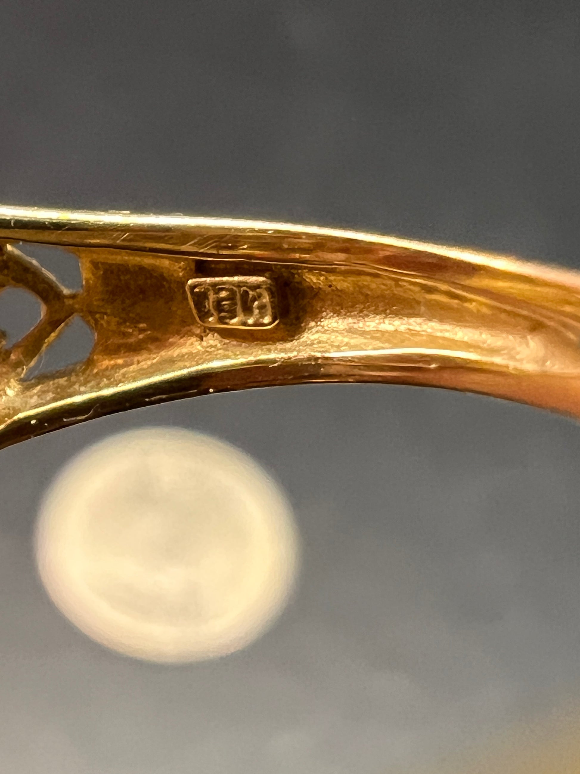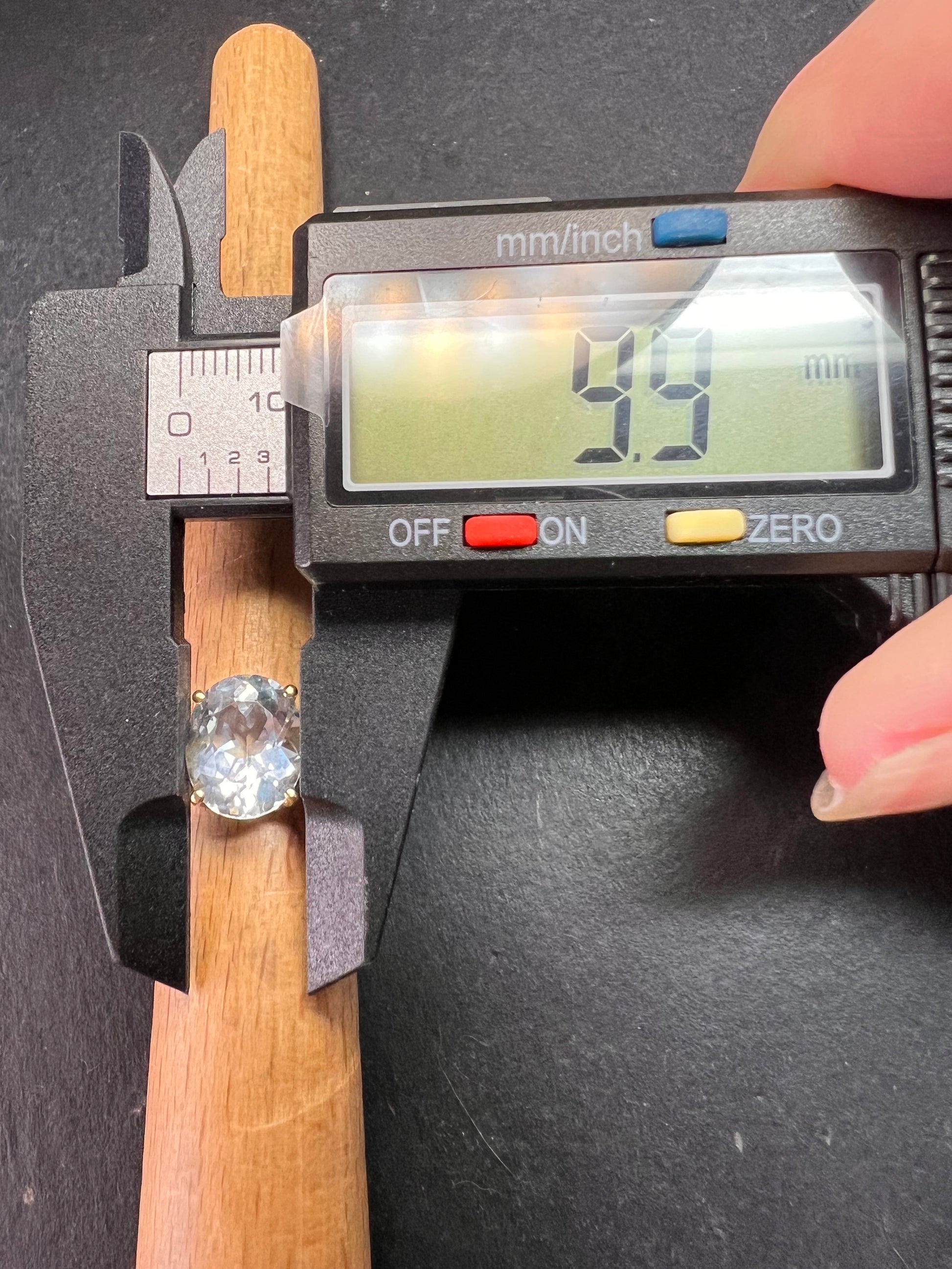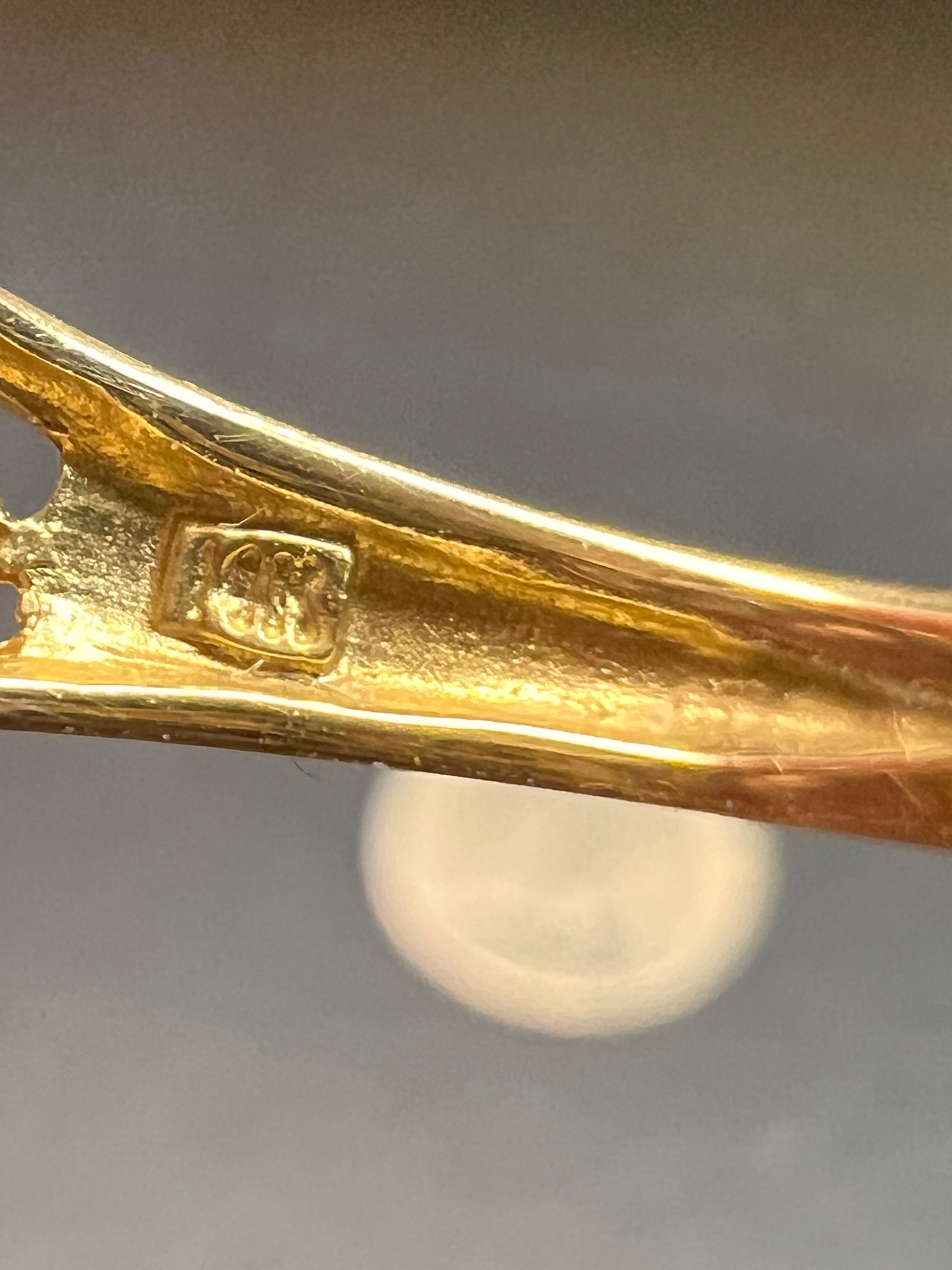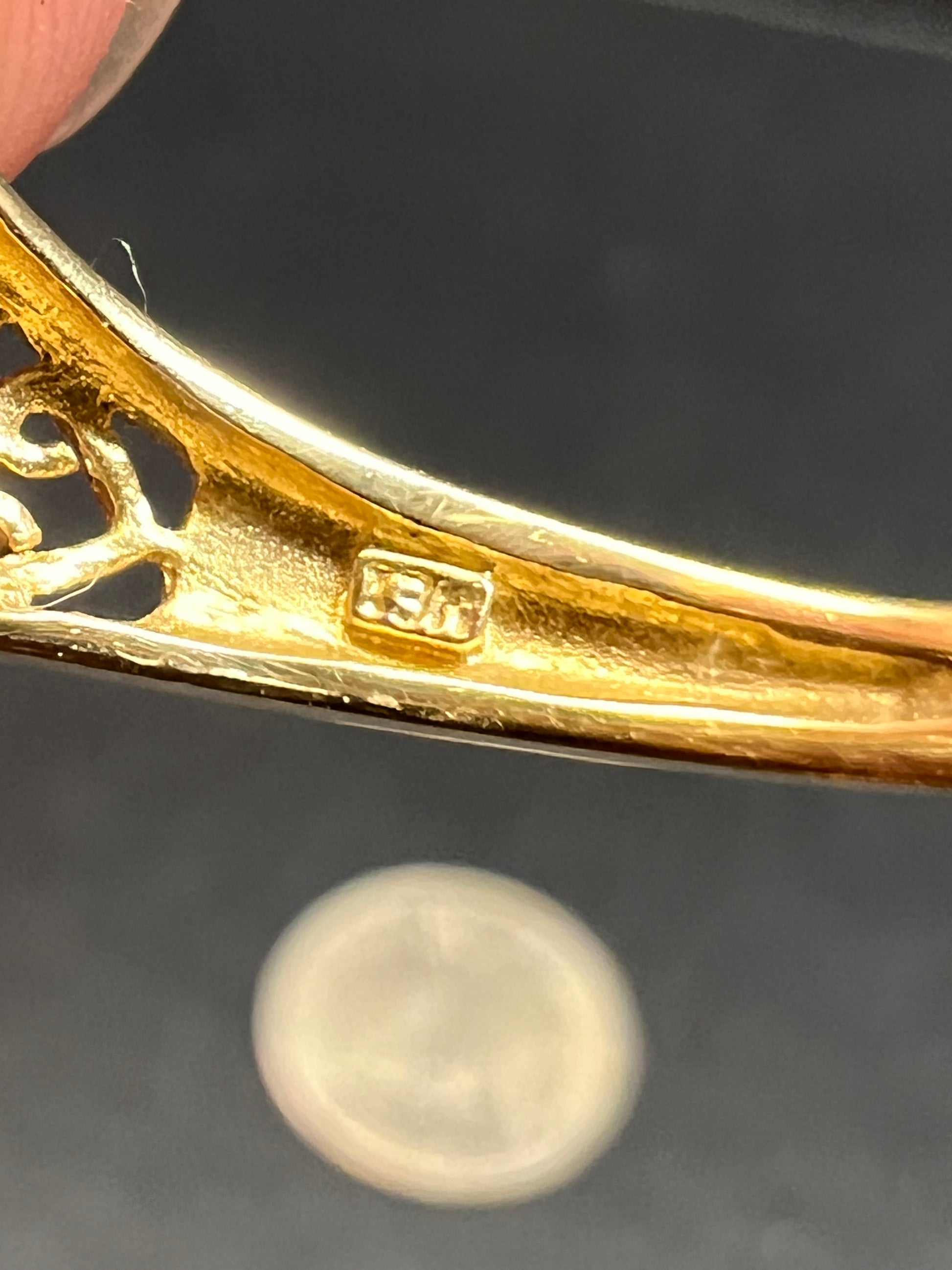 Excellent pre-owned condition — gemstone bright and clean, prongs tight, light gold surface wear consistent with age.