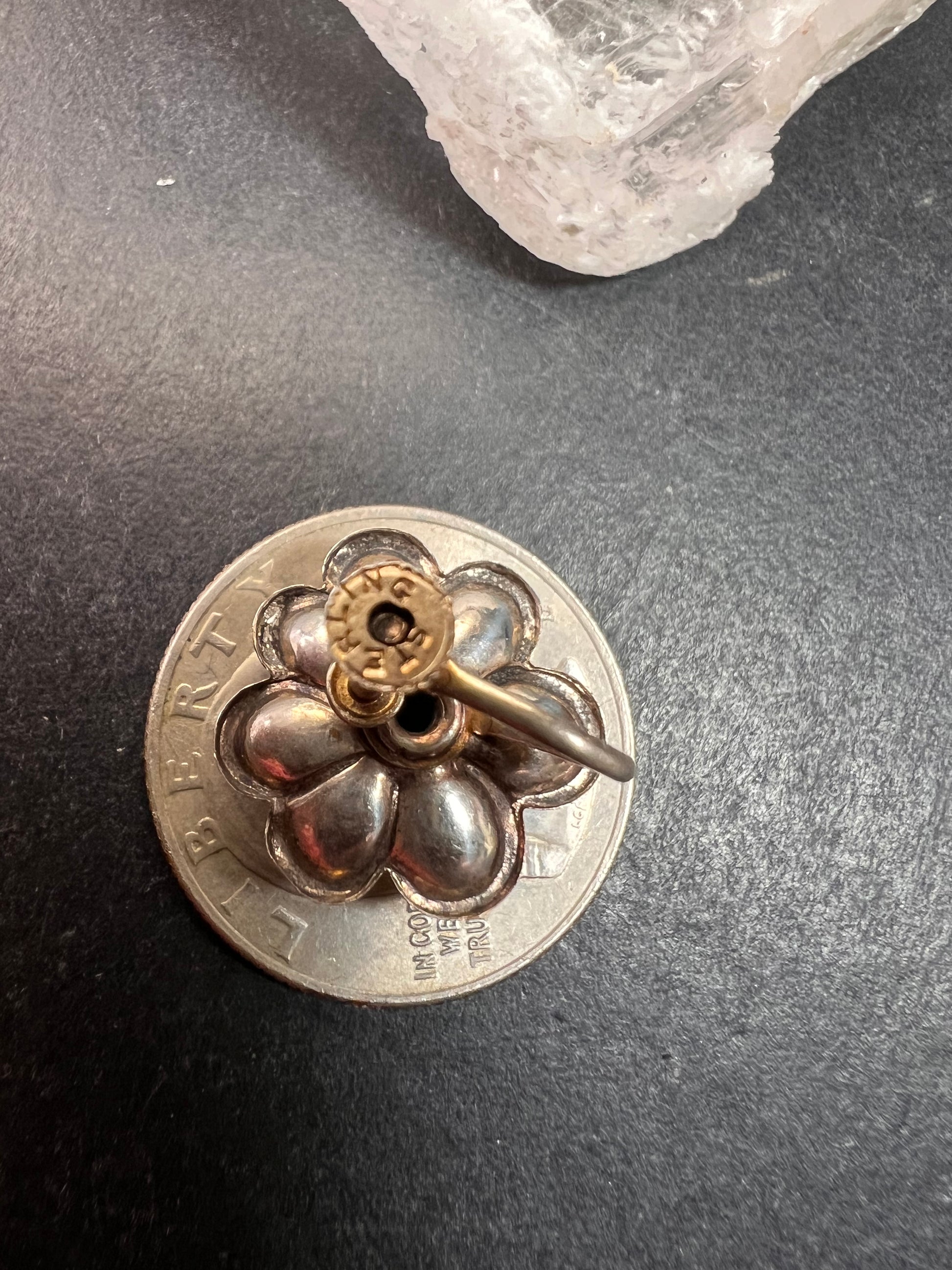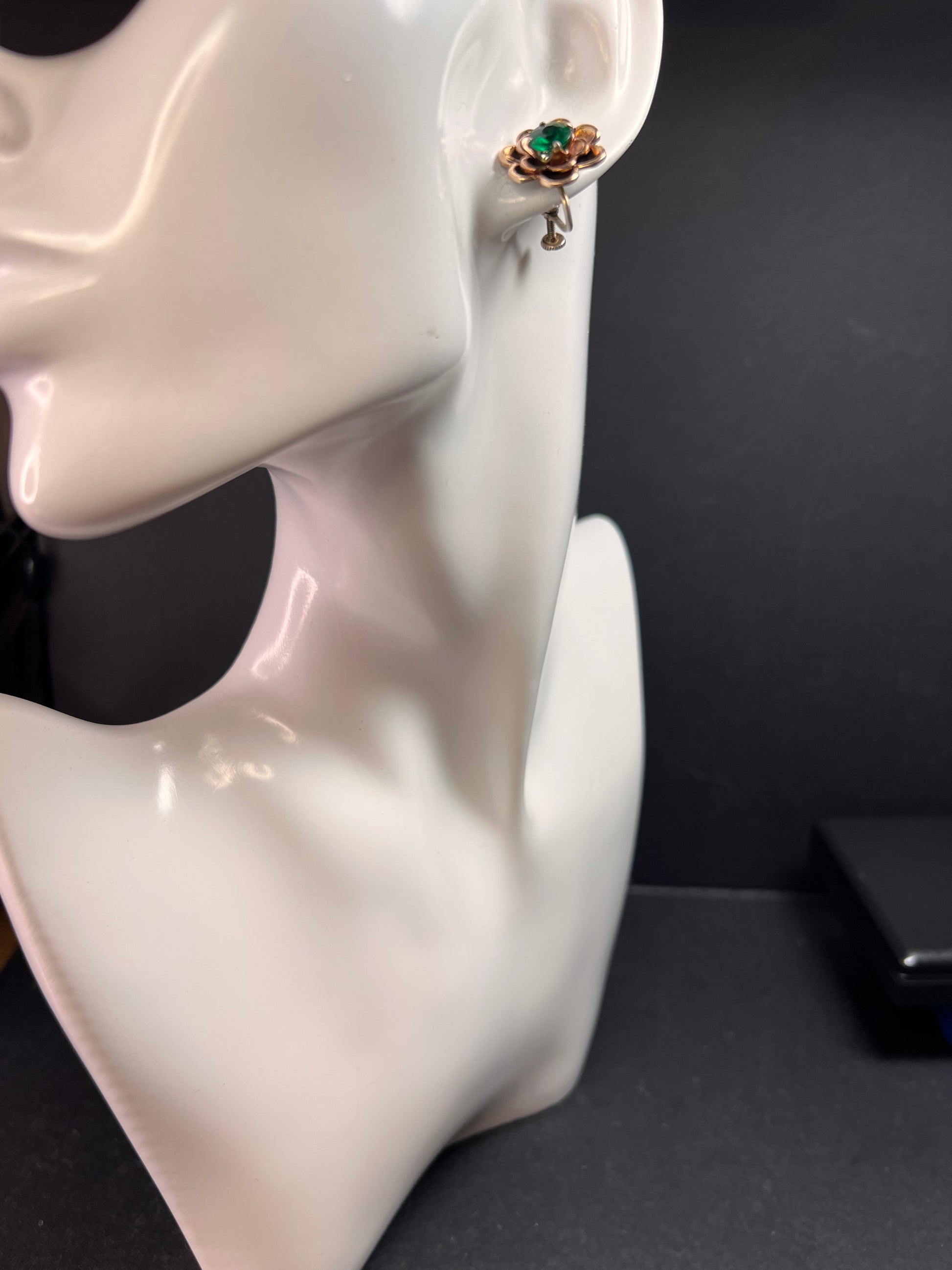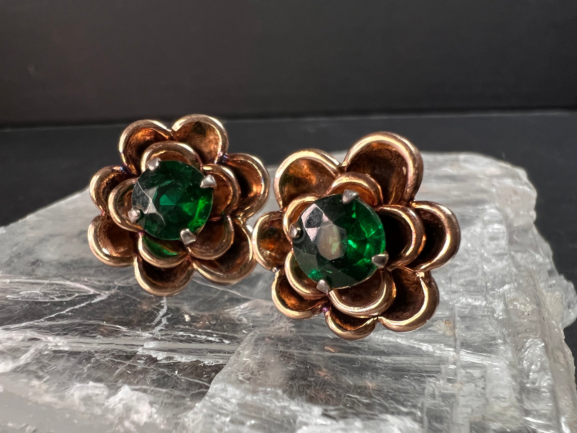 Vintage 1940s Vermeil Flower Screw Back Green Paste Earrings