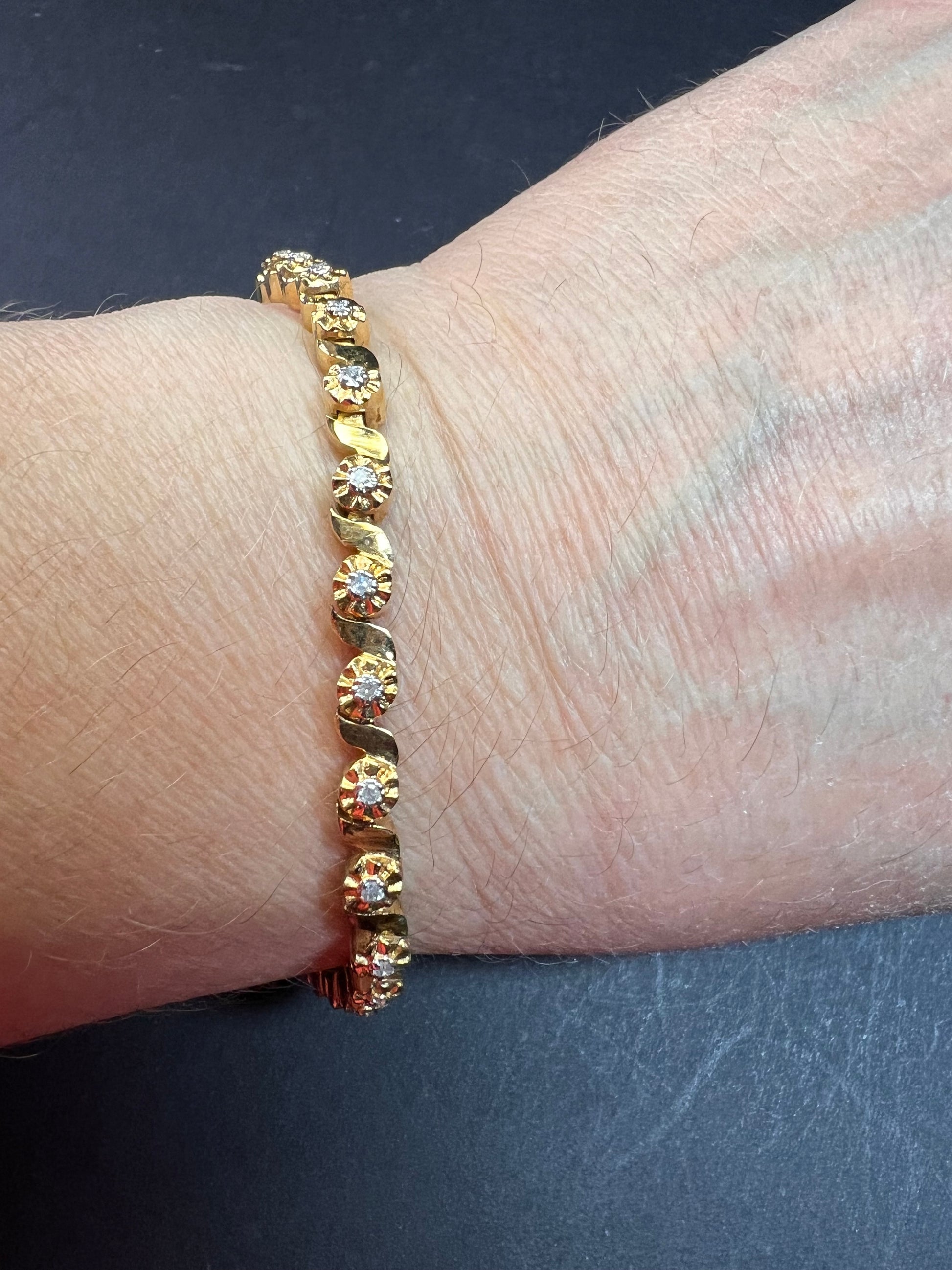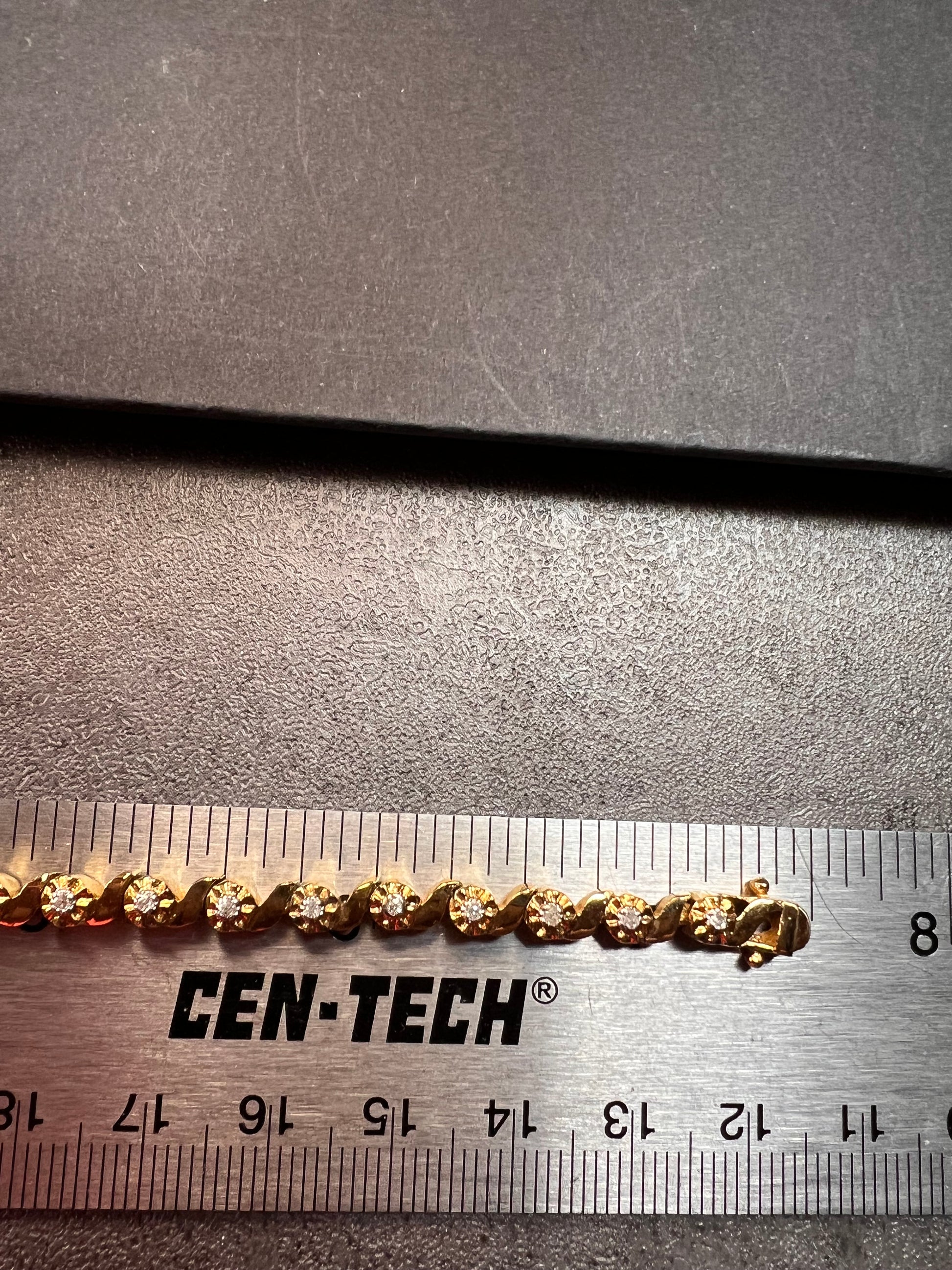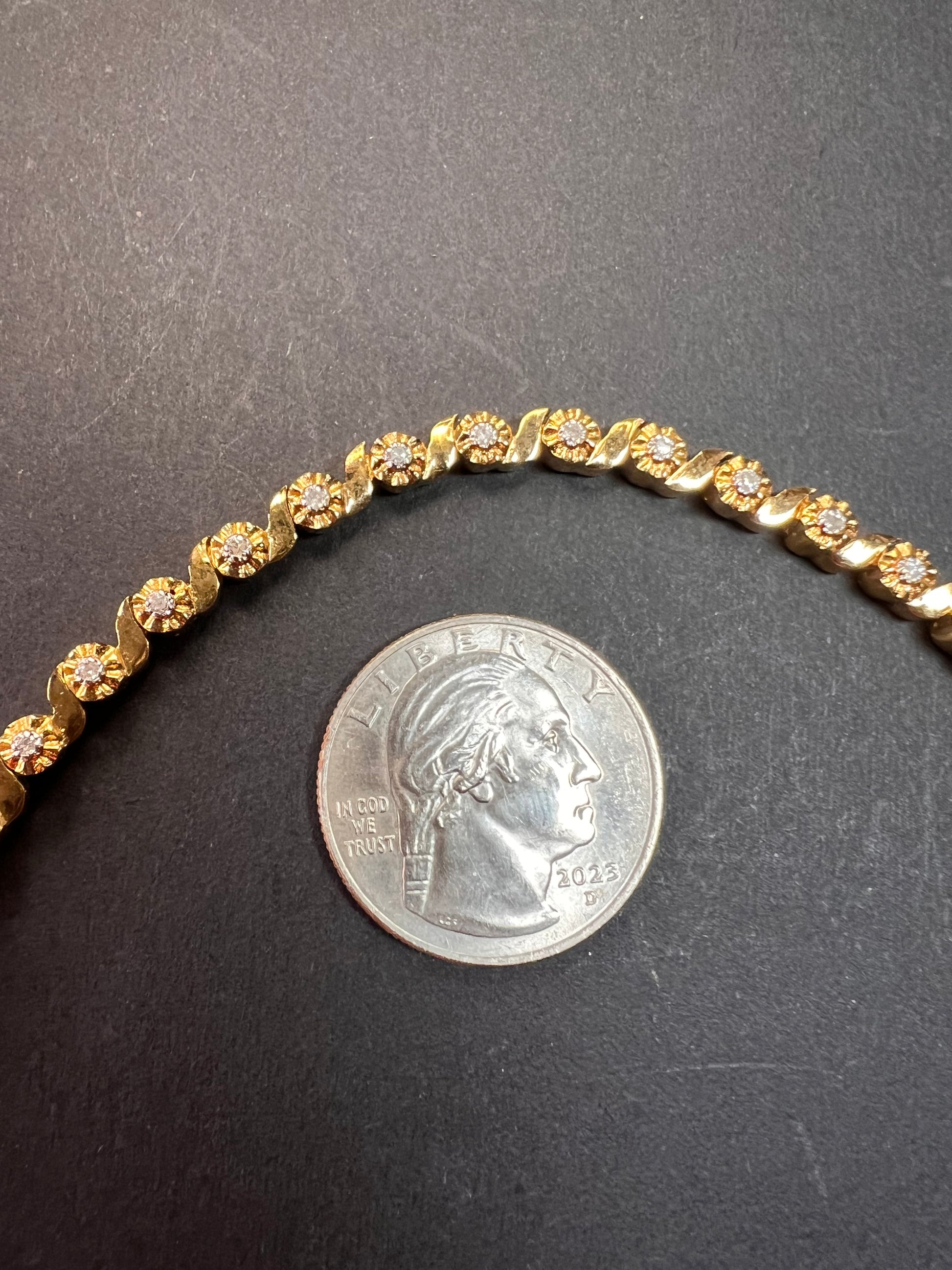 Vintage 28 diamond tennis bracelet in yellow gold over sterling silver 7.5 inch