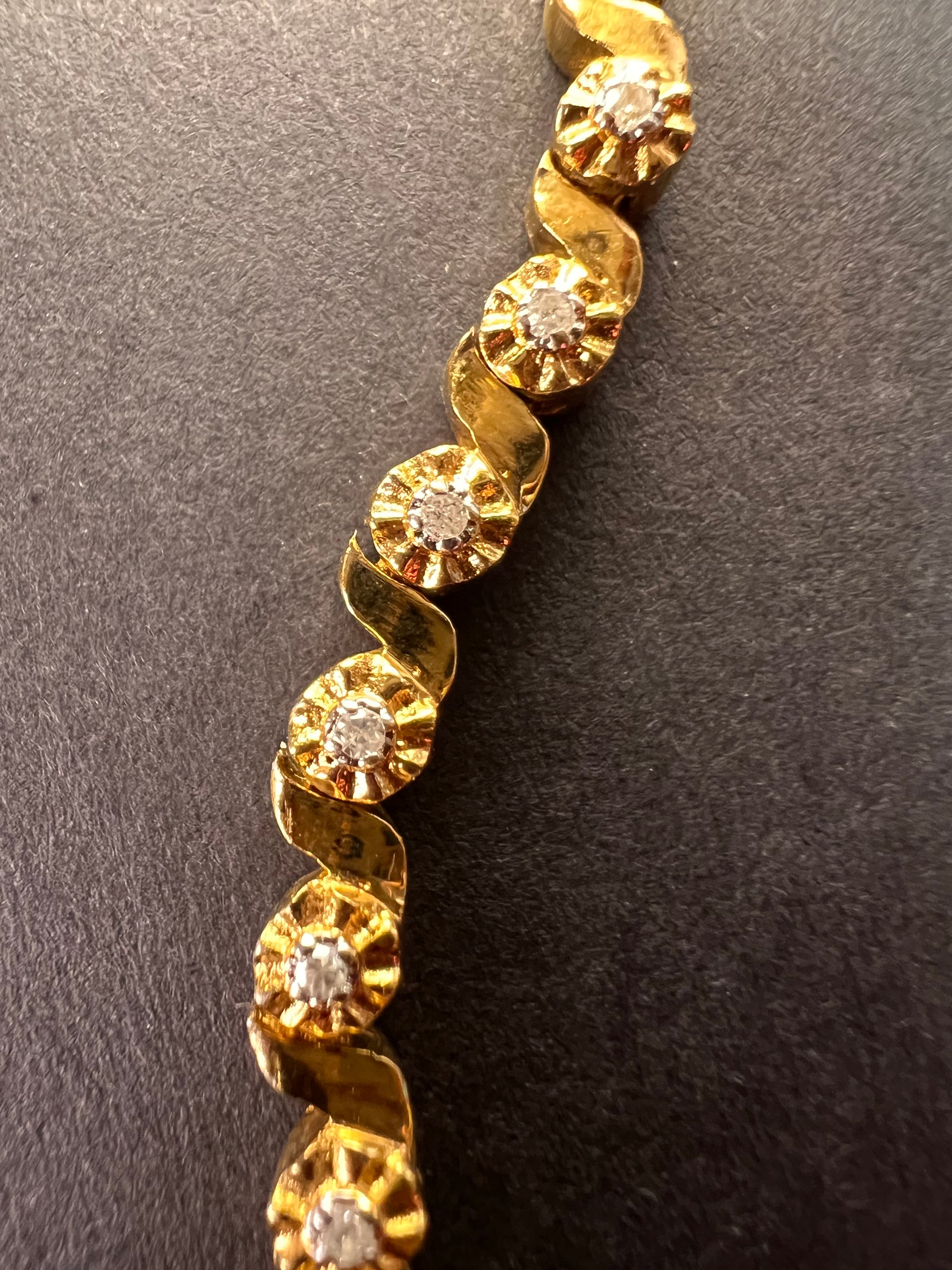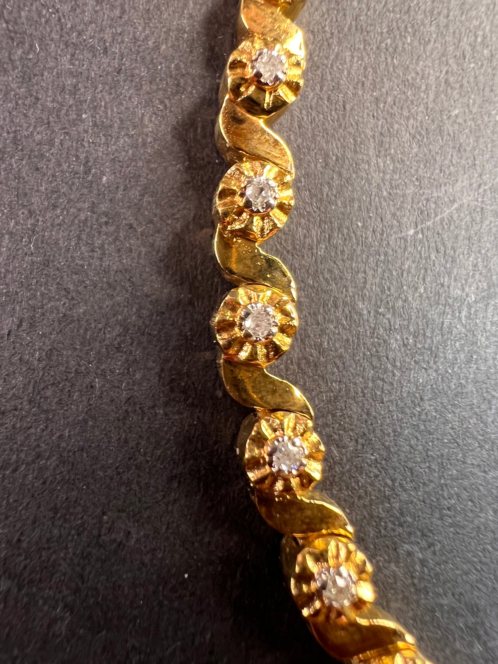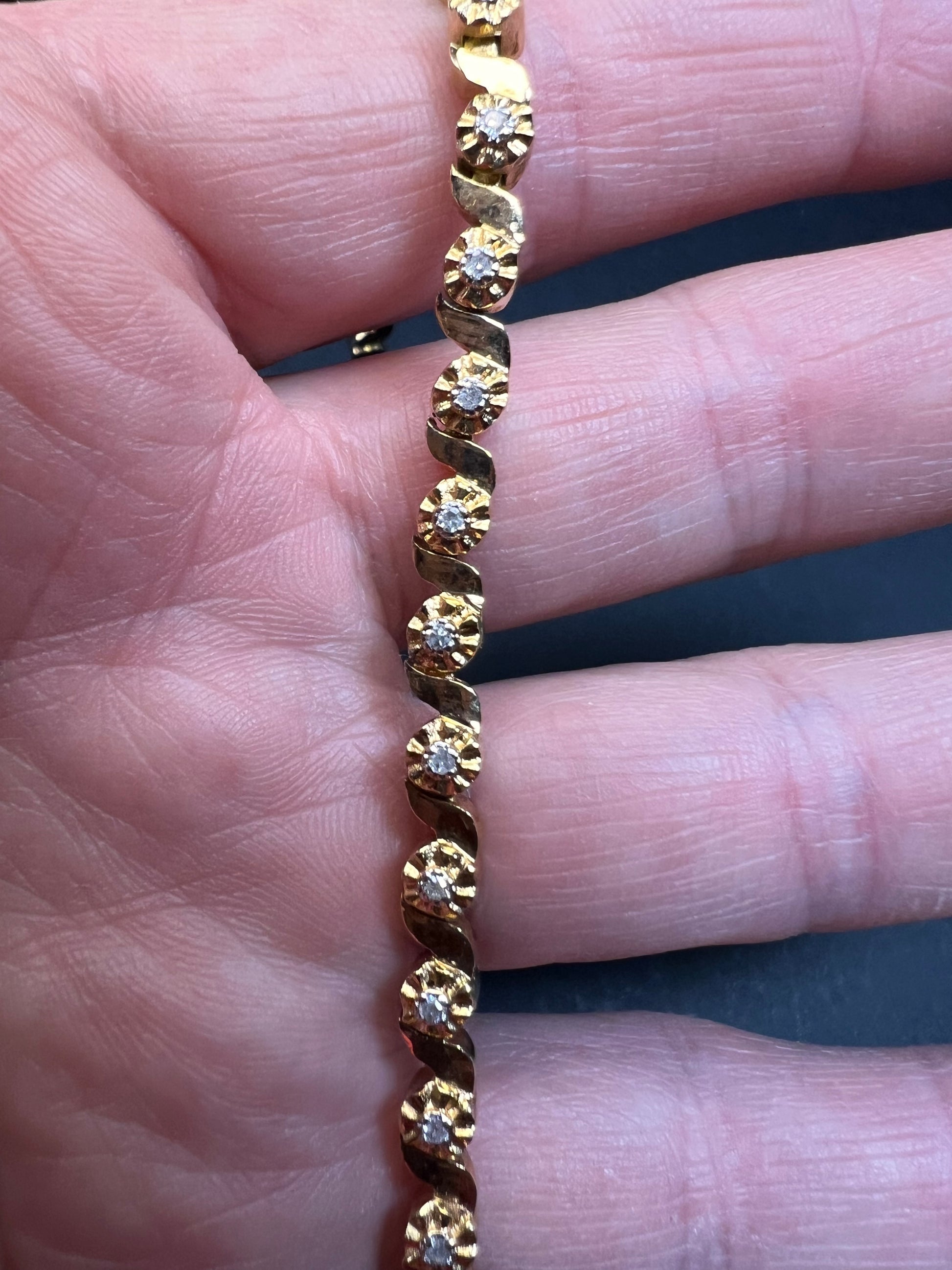 Vintage 28 diamond tennis bracelet in yellow gold over sterling silver 7.5 inch
