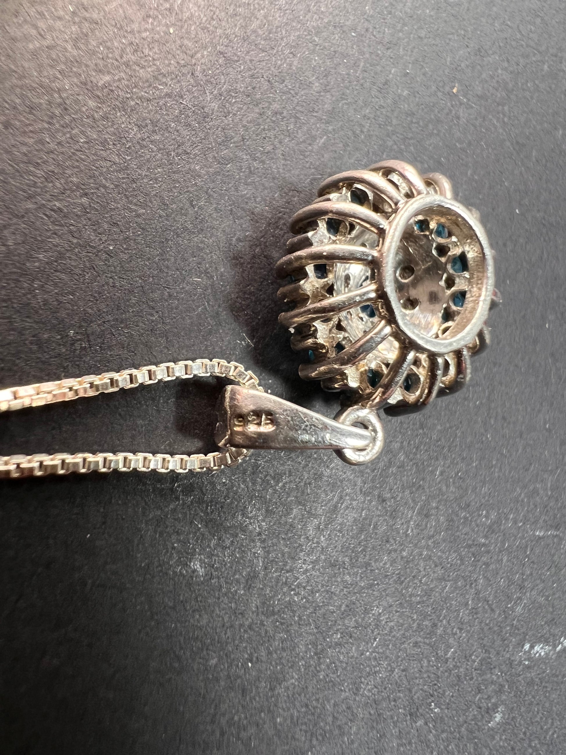 Vintage 925 Sterling Silver Blue Apatite & Diamond Halo Pendant Necklace