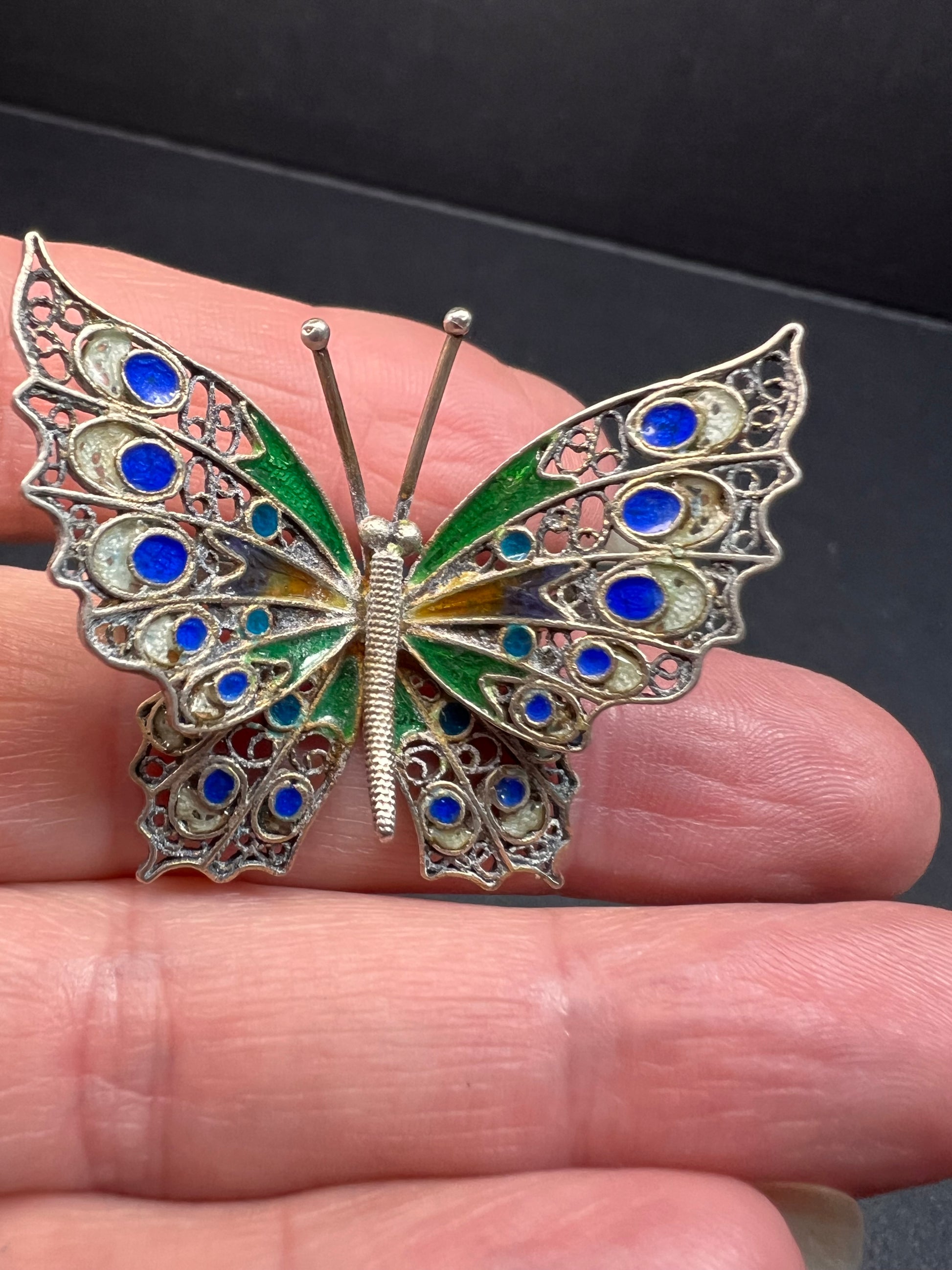 Vintage Alieti Adriana 800 silver Italian enameled filigree butterfly brooch pin