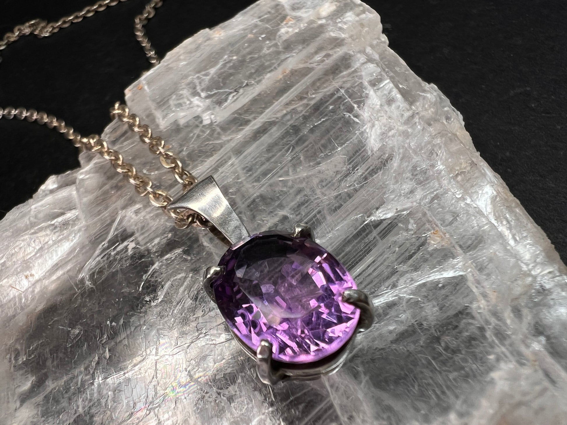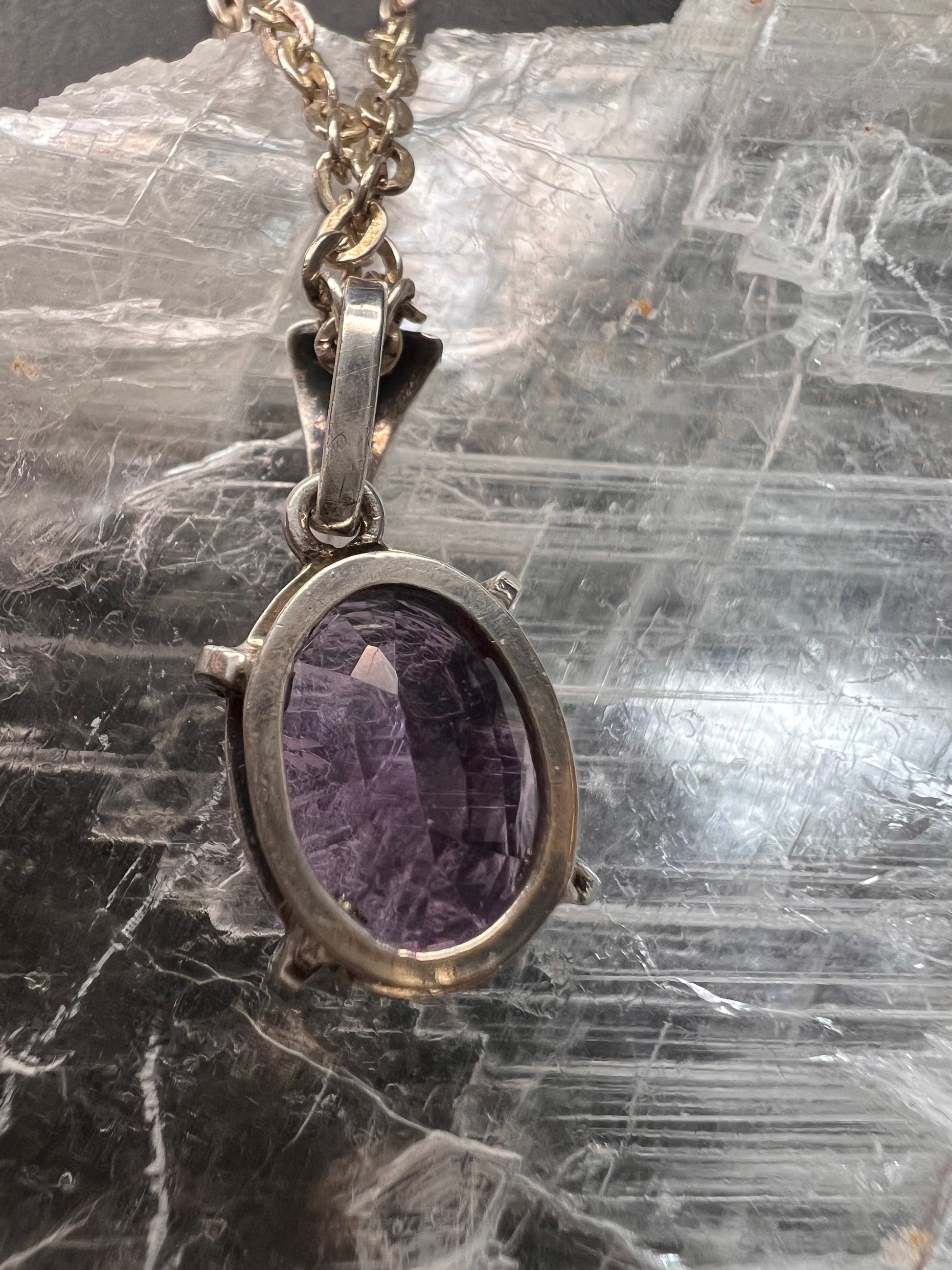 Vintage Amethyst Sterling Silver Pendant on 960 Silver Chain 18”