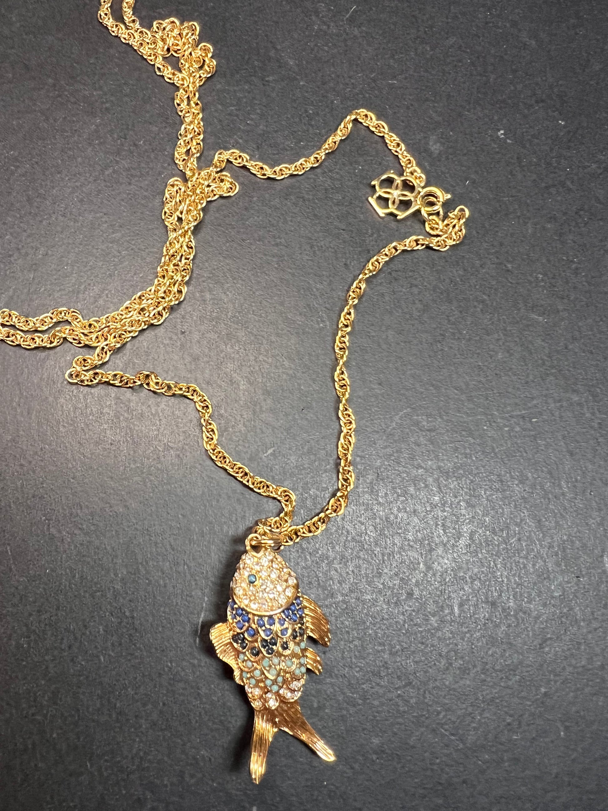 Vintage Ann Taylor gold tone fish pendant necklace