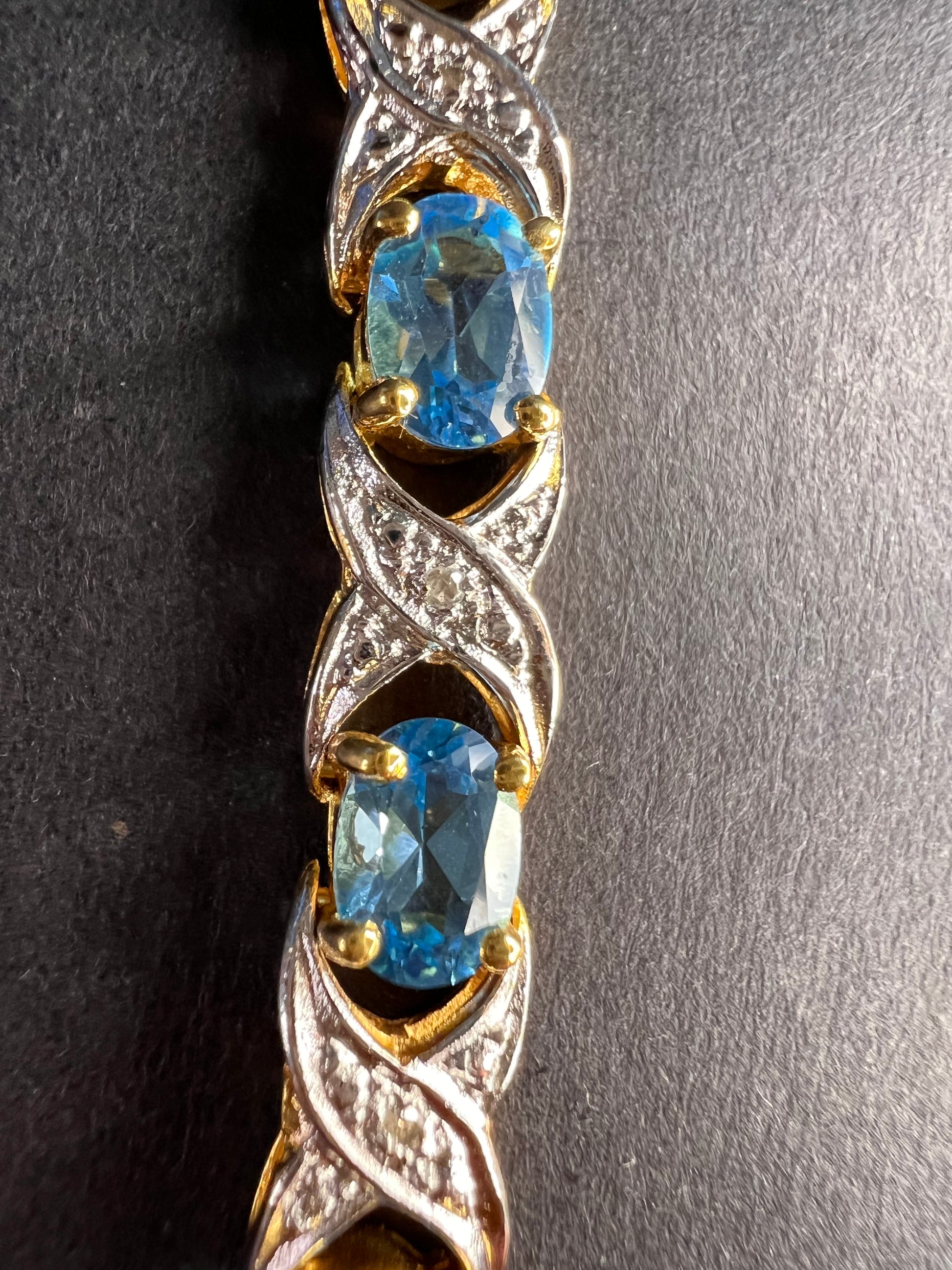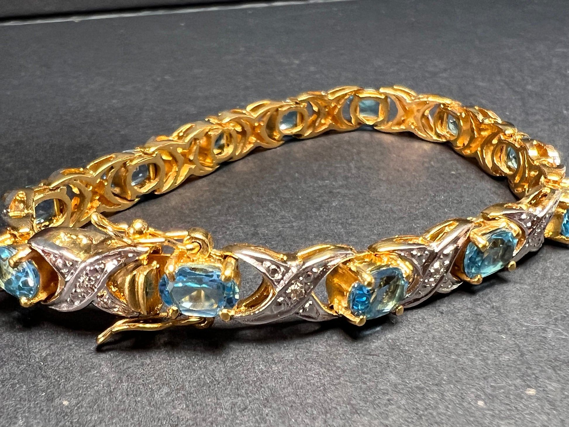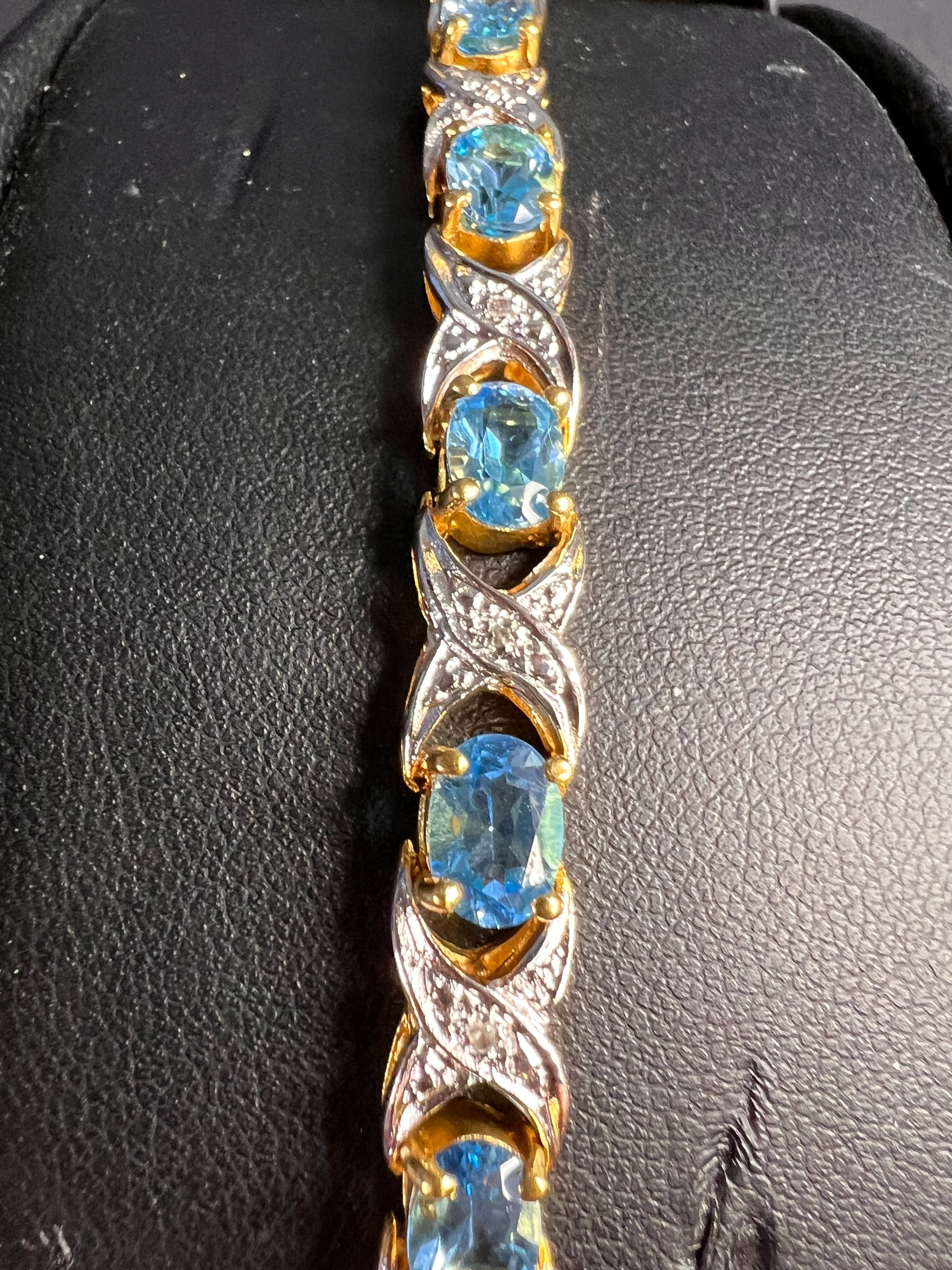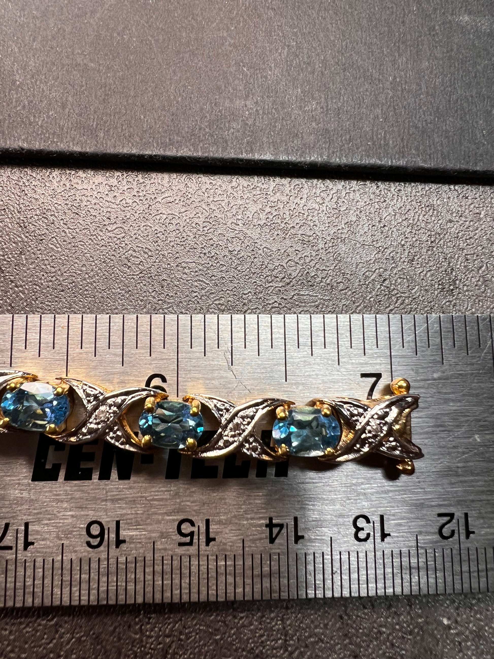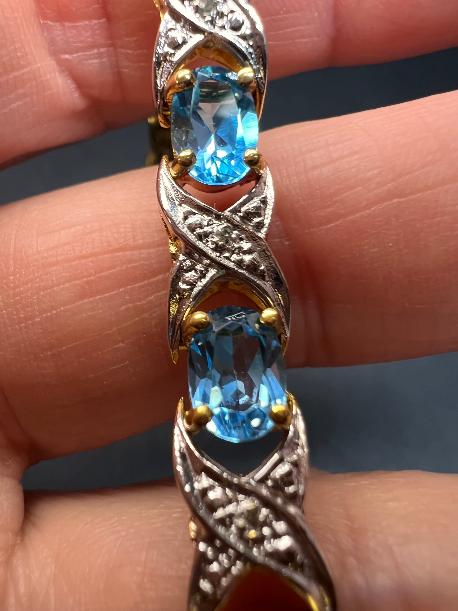 Vintage blue topaz and diamond gold over sterling silver tennis bracelet