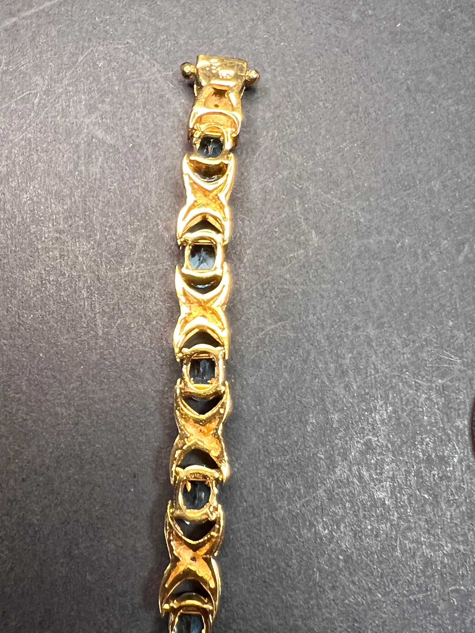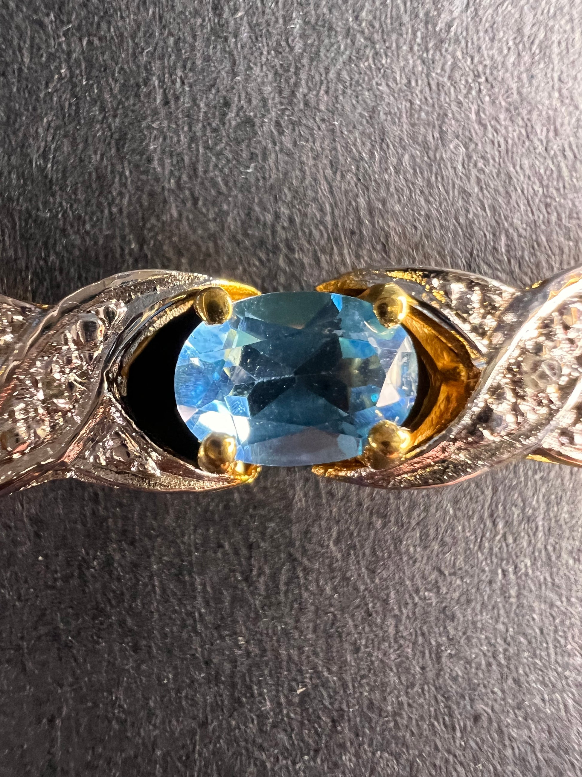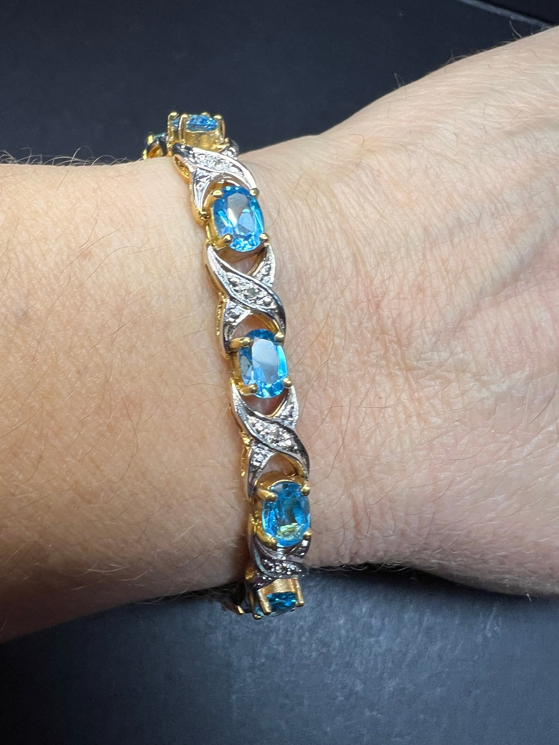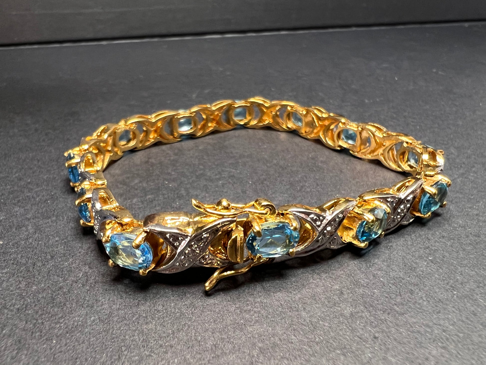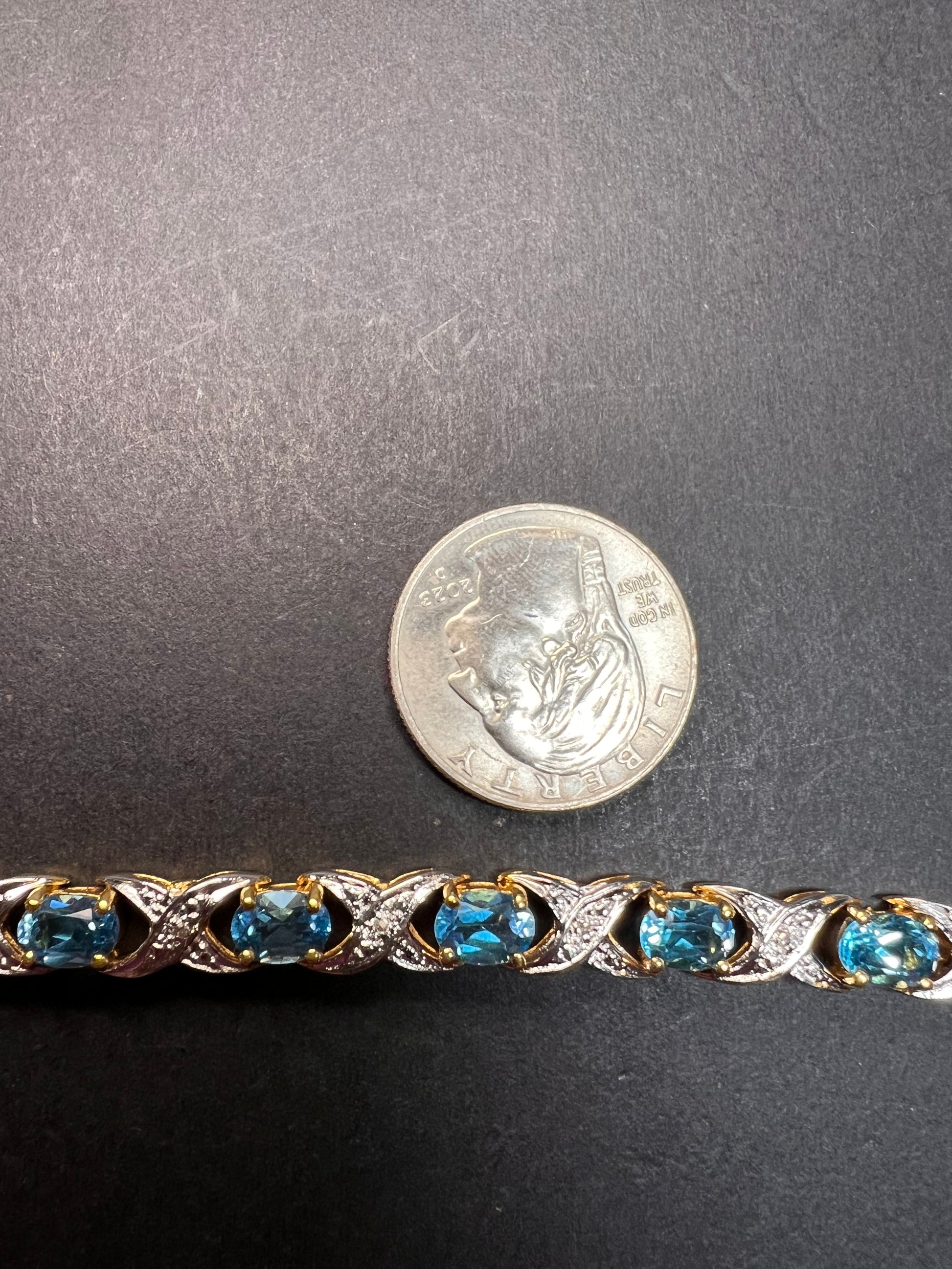 Vintage blue topaz and diamond gold over sterling silver tennis bracelet