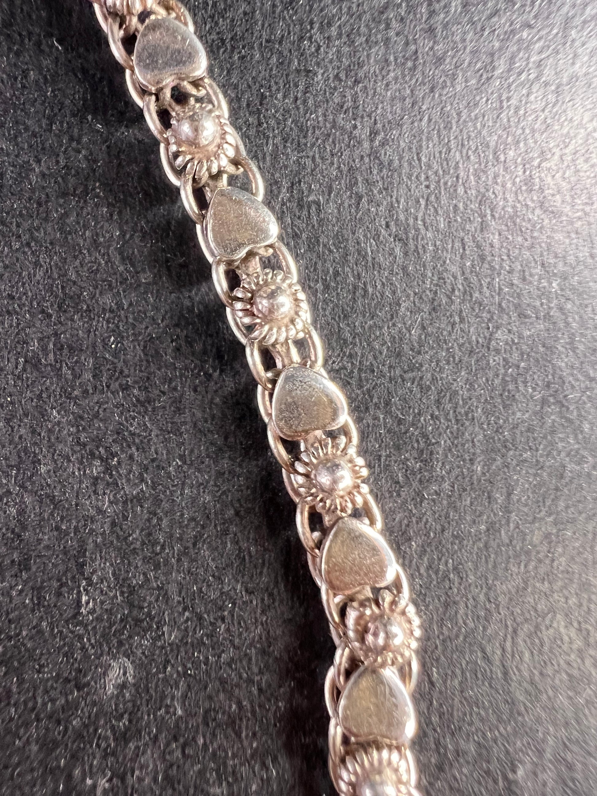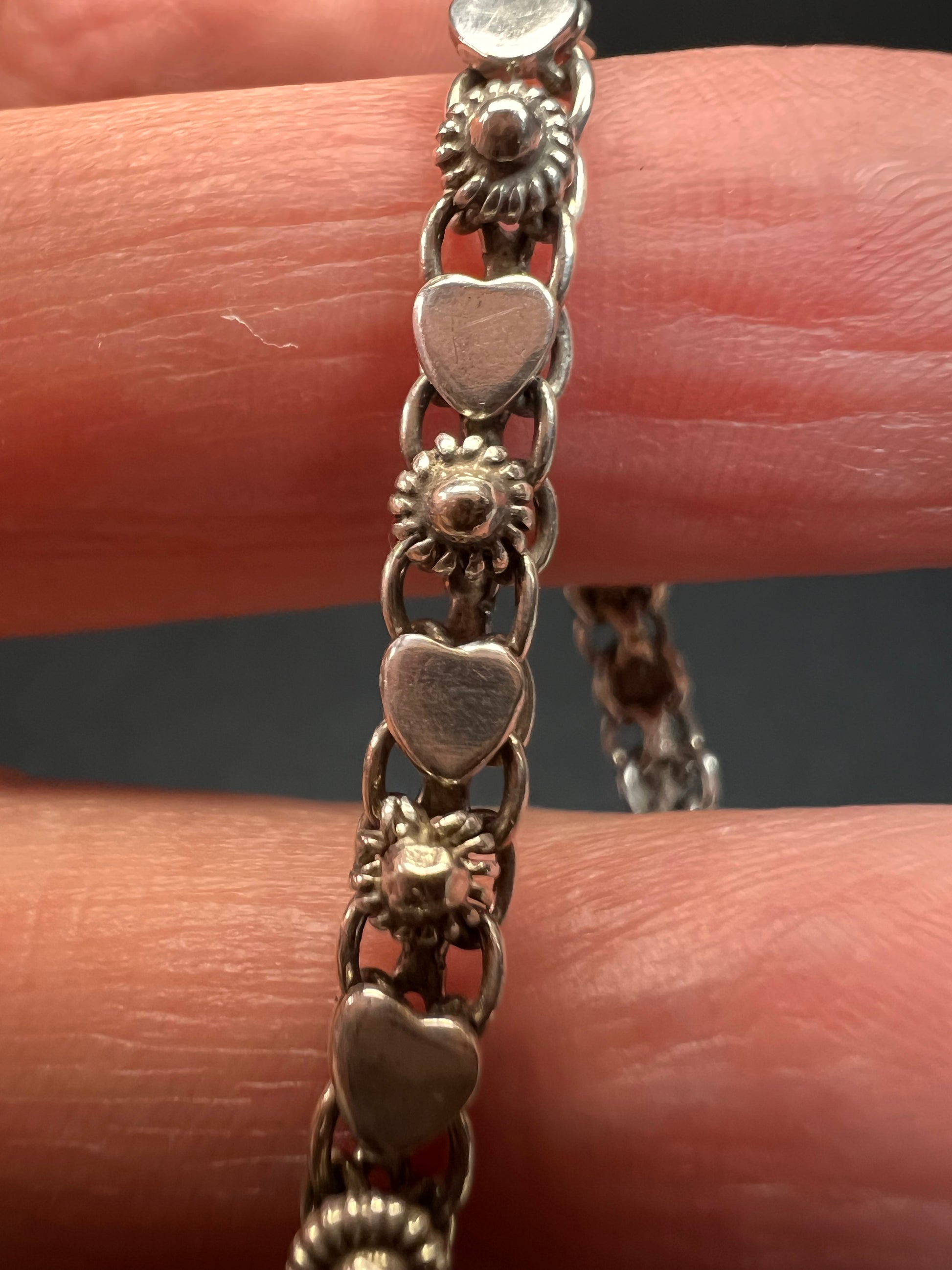 Vintage Cannetille and hearts sterling silver bracelet with charm