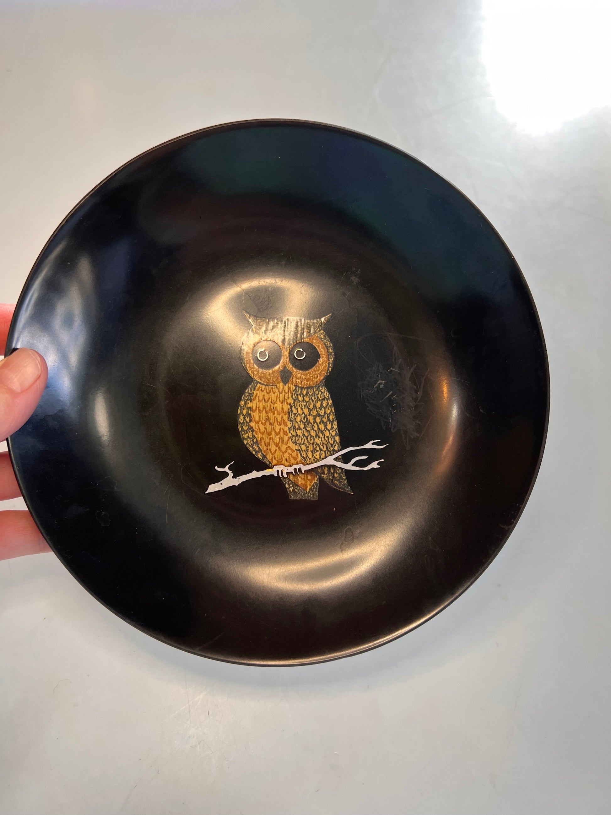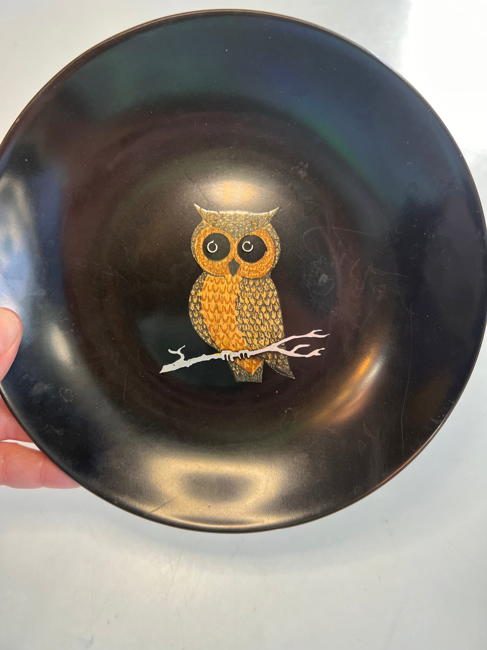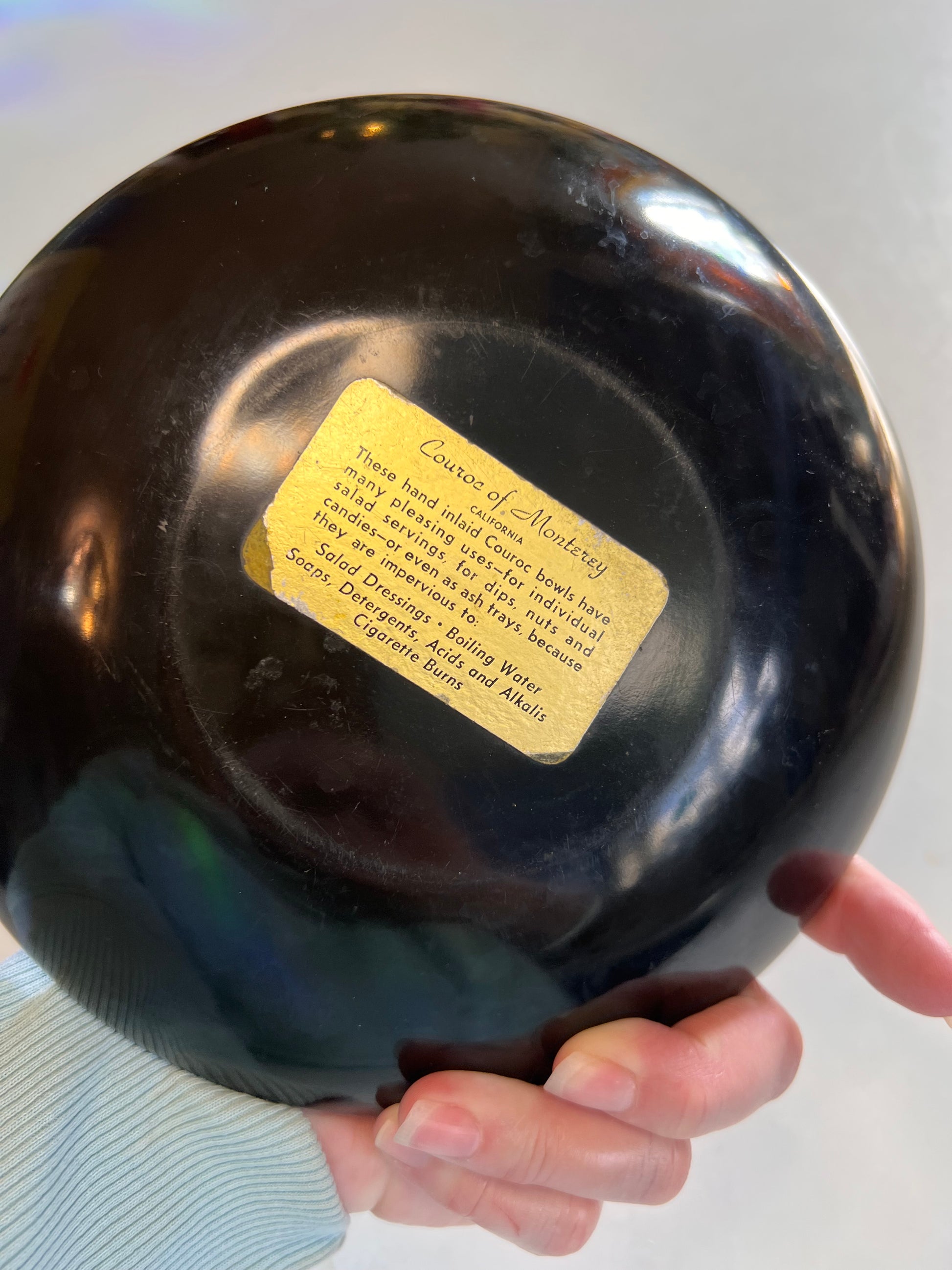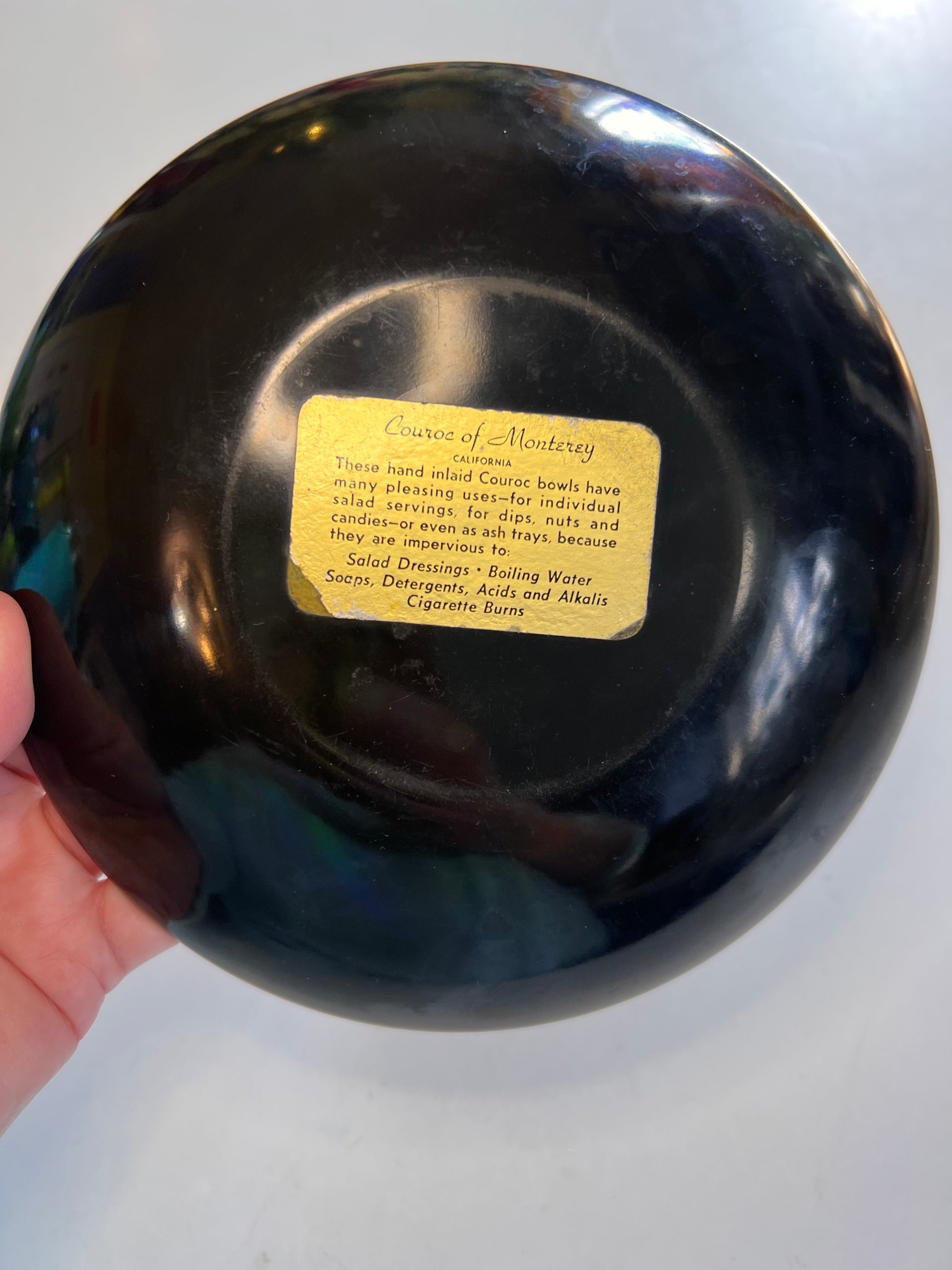 Vintage Couroc of Monterey Owl Inlay Bowl | MCM Black Resin Serving Dish 7.5"