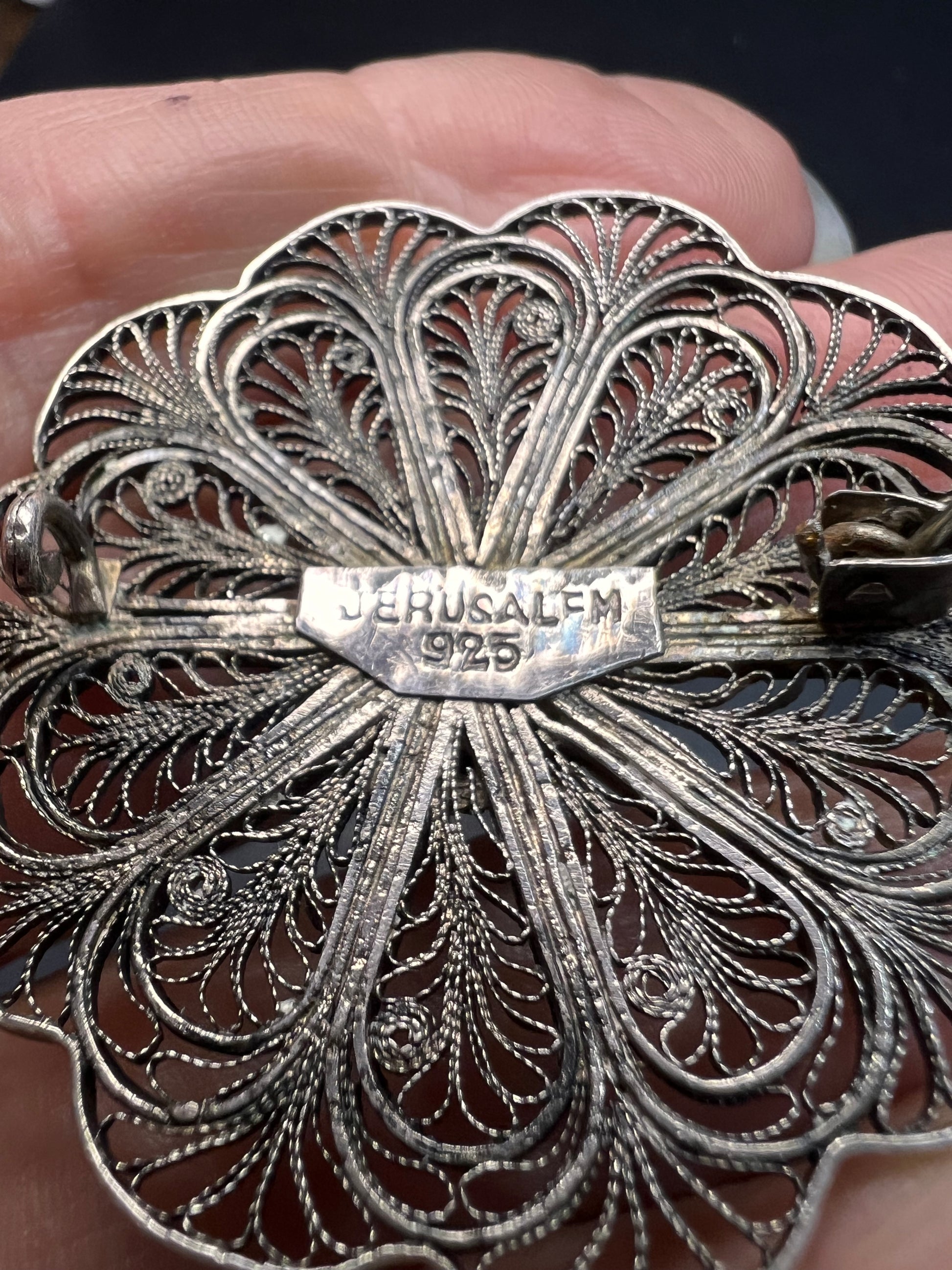 Vintage filigree amethyst sterling silver brooch made in Jerusalem