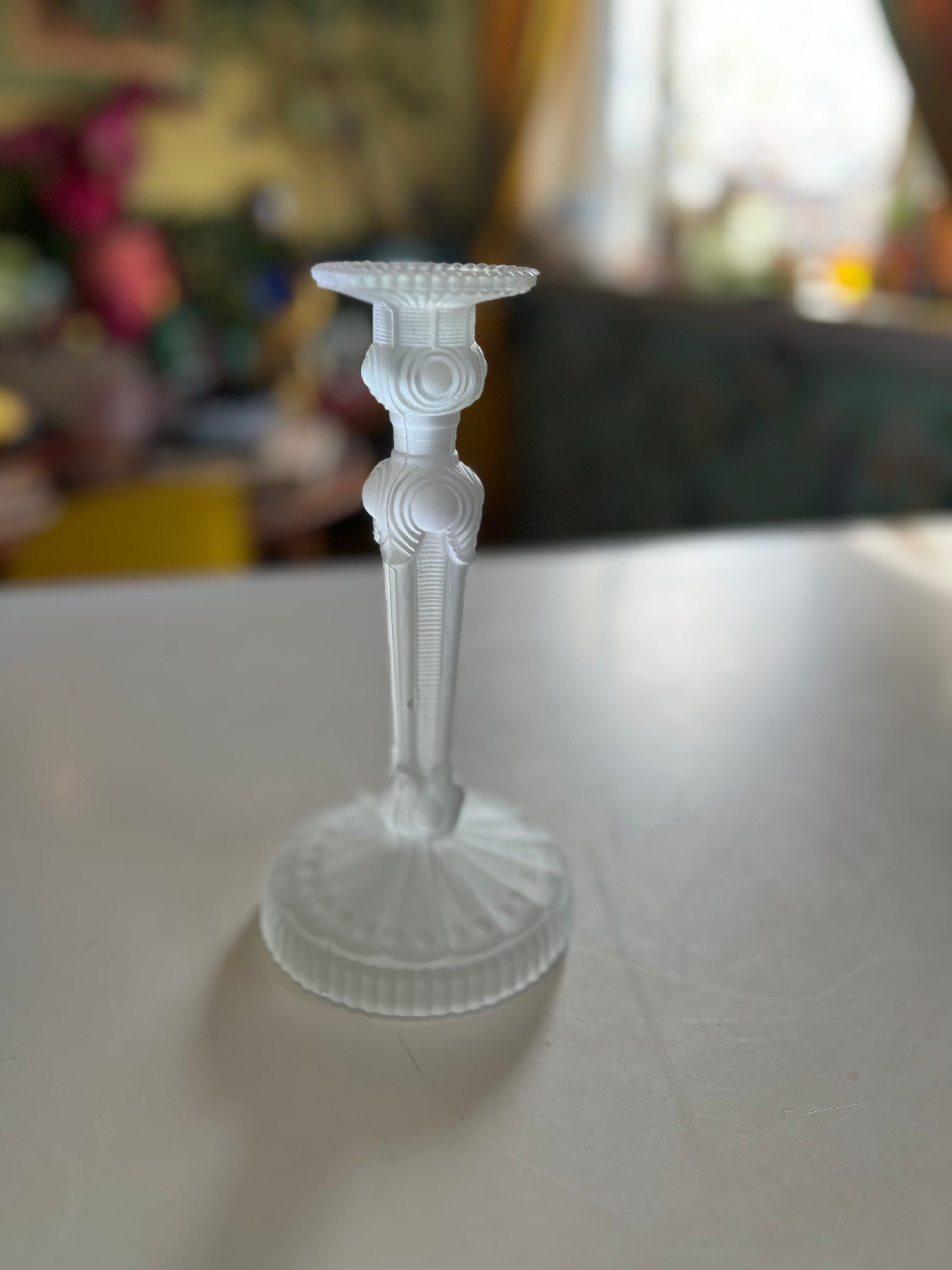 Vintage Frosted Glass Candlestick | Lalique Style Art Deco Taper Holder 6.75"
