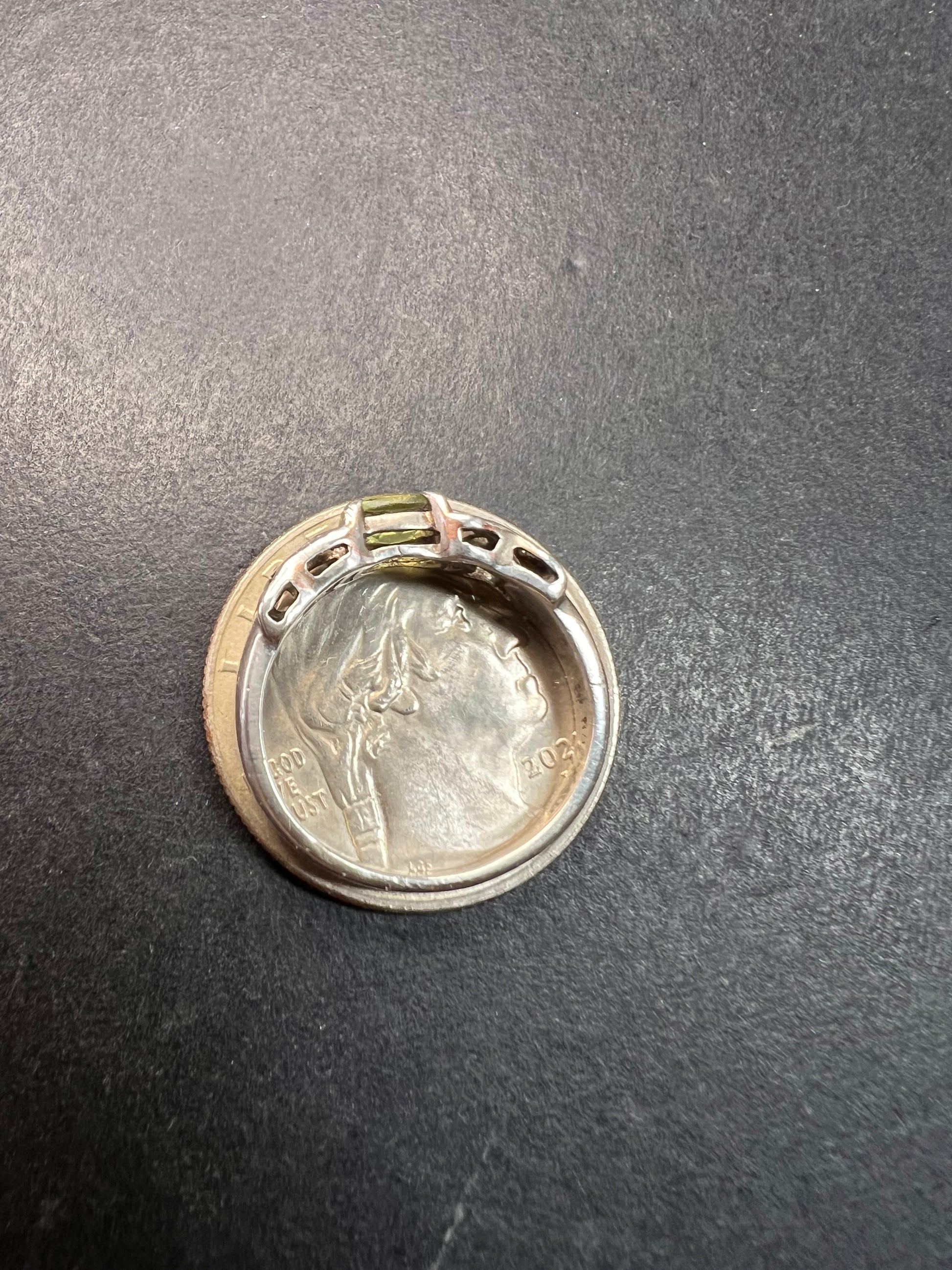 This is a vintage pre owned ring in fair condition with obvious signs of use, age and damage. Please see all photos. The peridot gemstone has visible scratches and damage to its