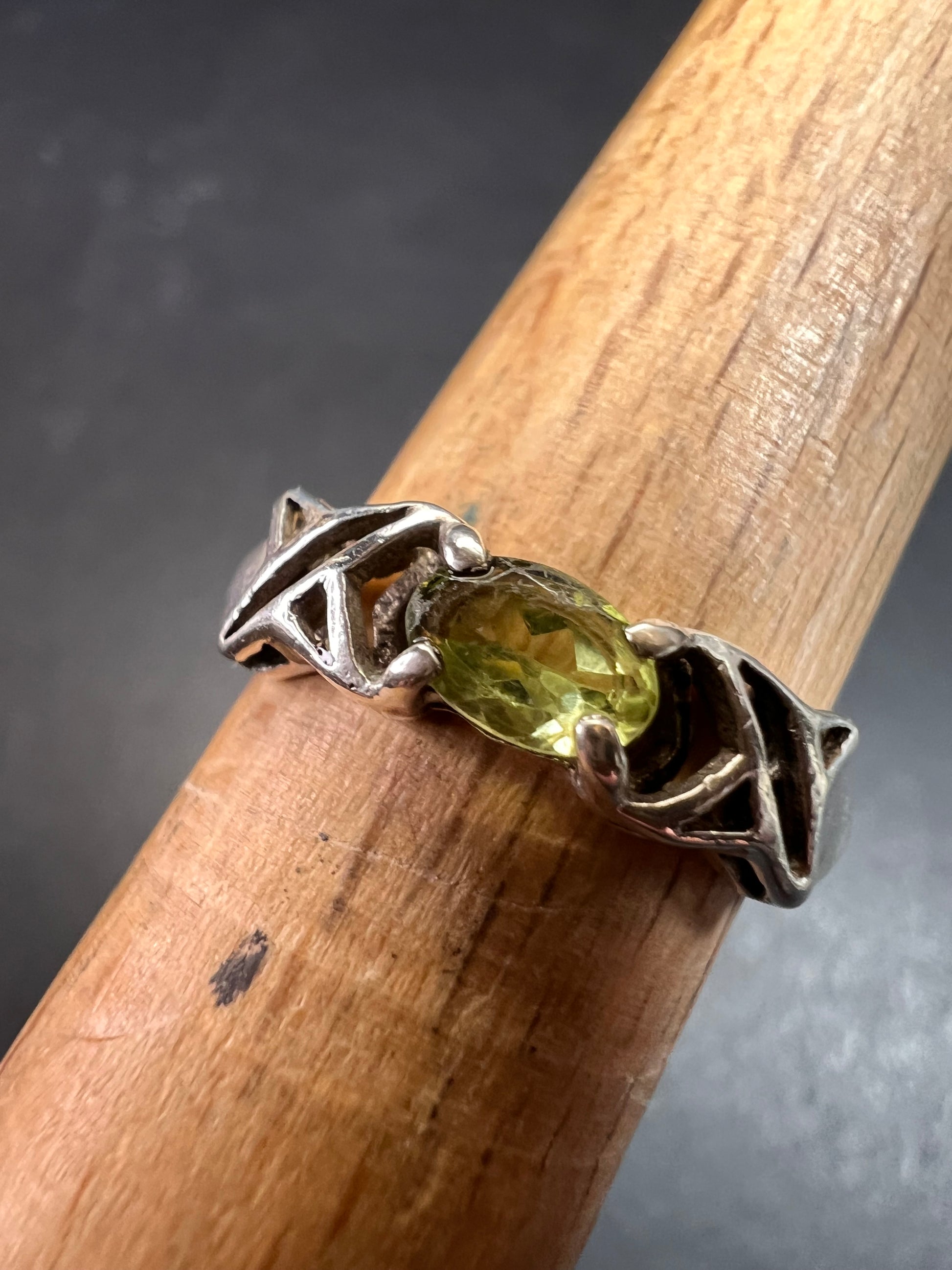 Vintage Helen Andrews peridot hugs and kisses Sterling silver ring size 6.5