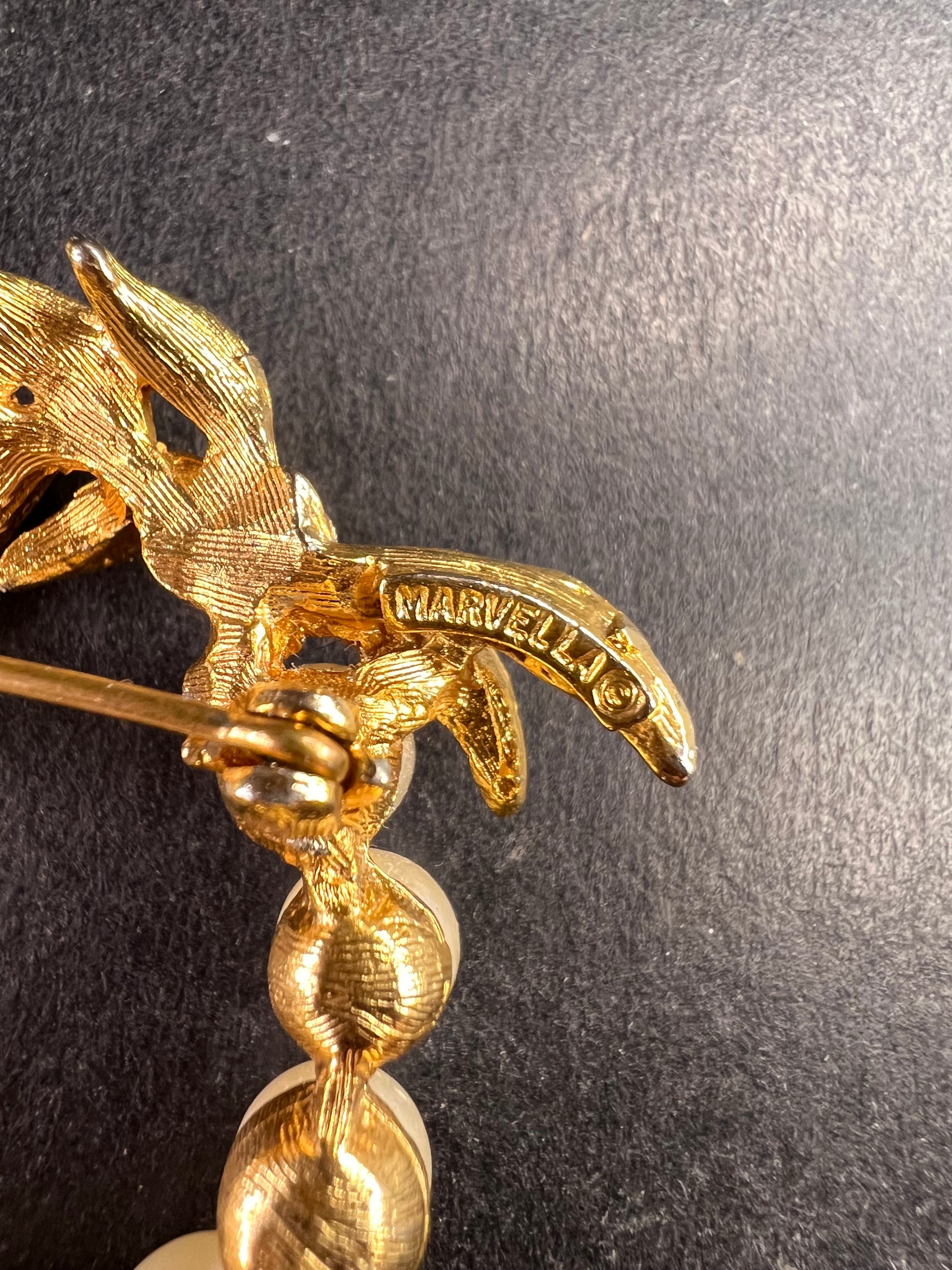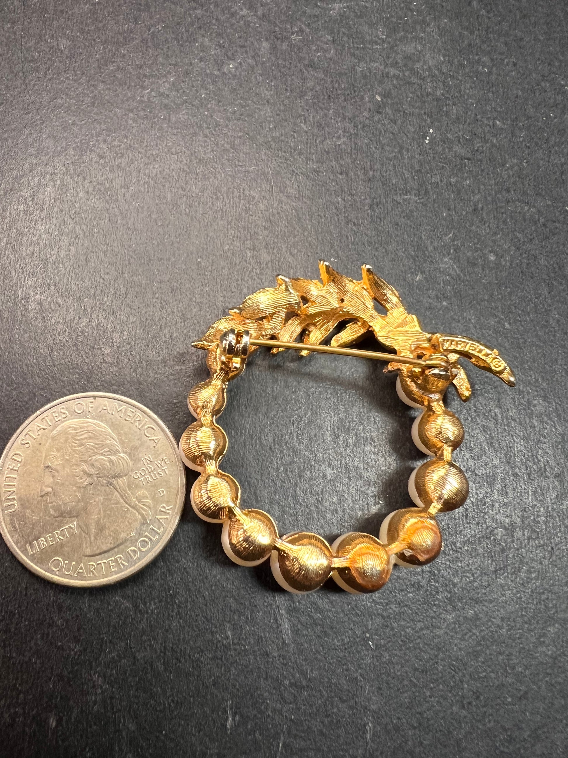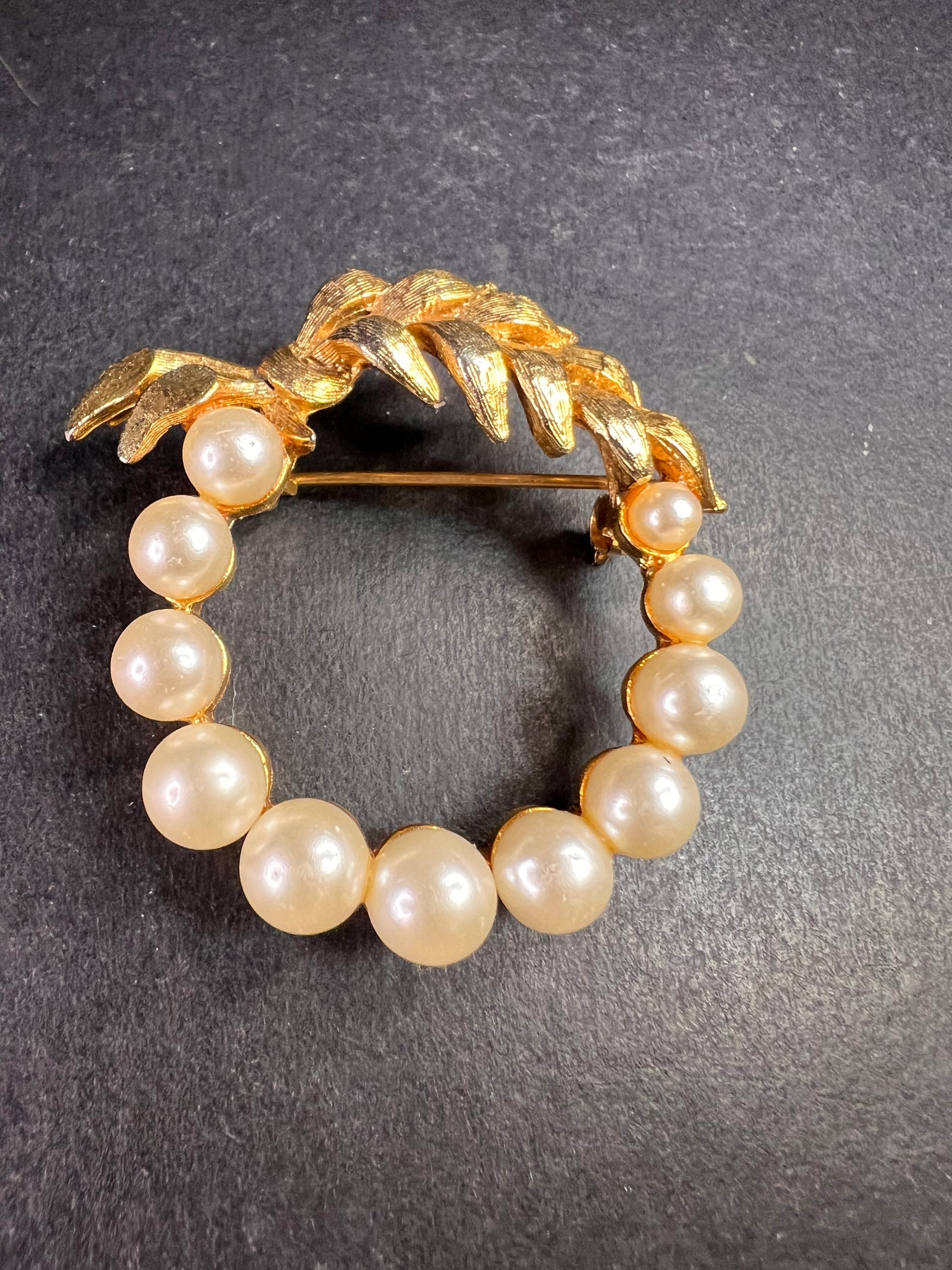 Vintage Marvella Faux Pearl Gold Tone Wreath Brooch Mid Century