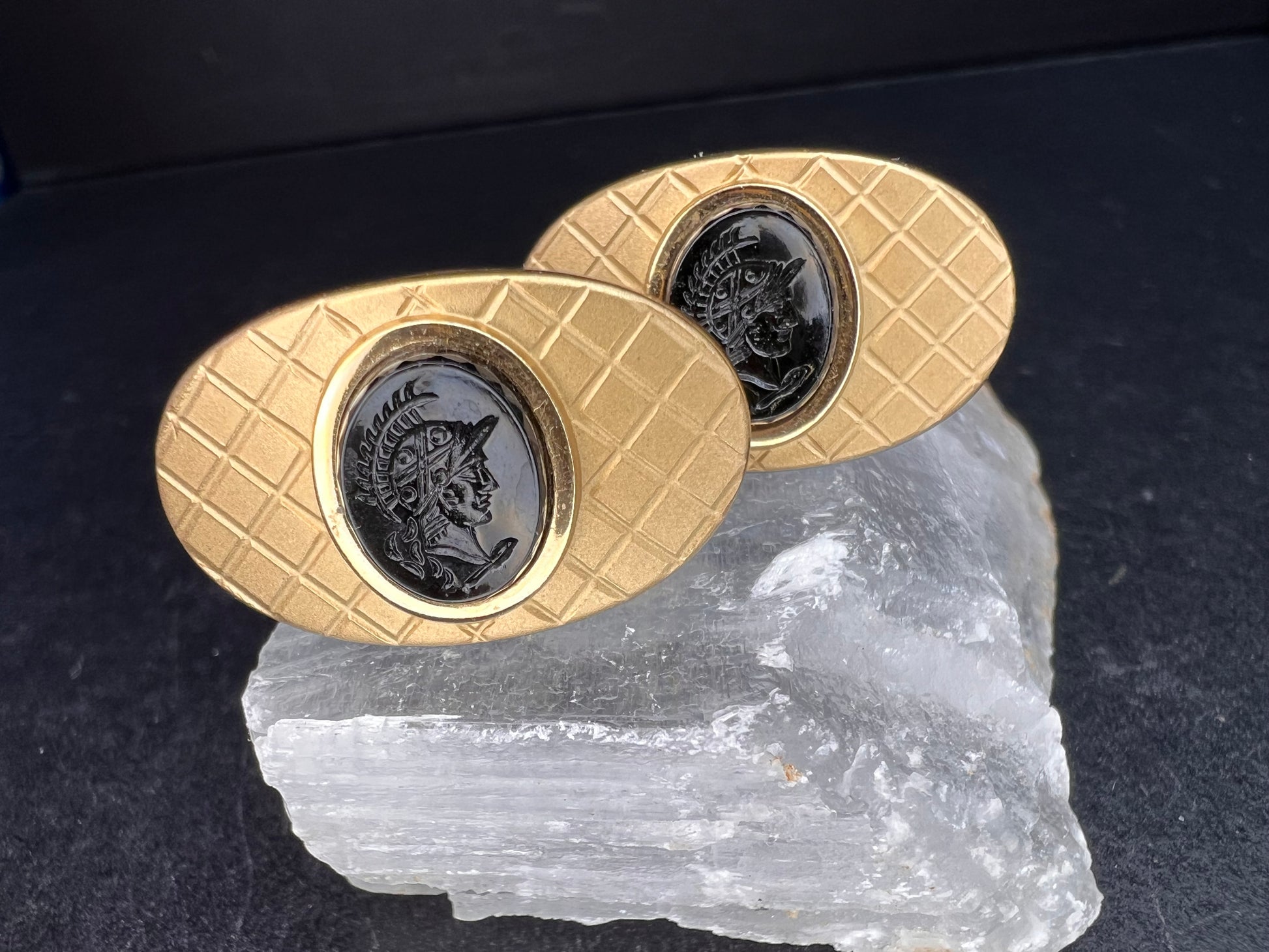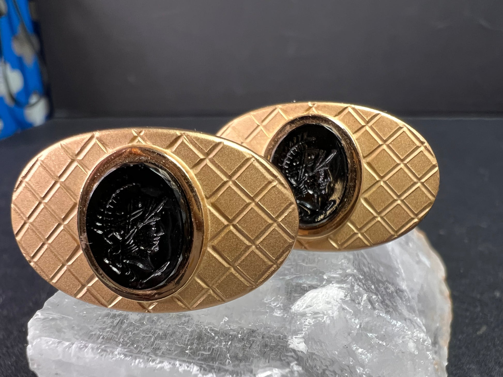 Vintage MCM Swank Gold Tone Centurion Cameo Cufflinks