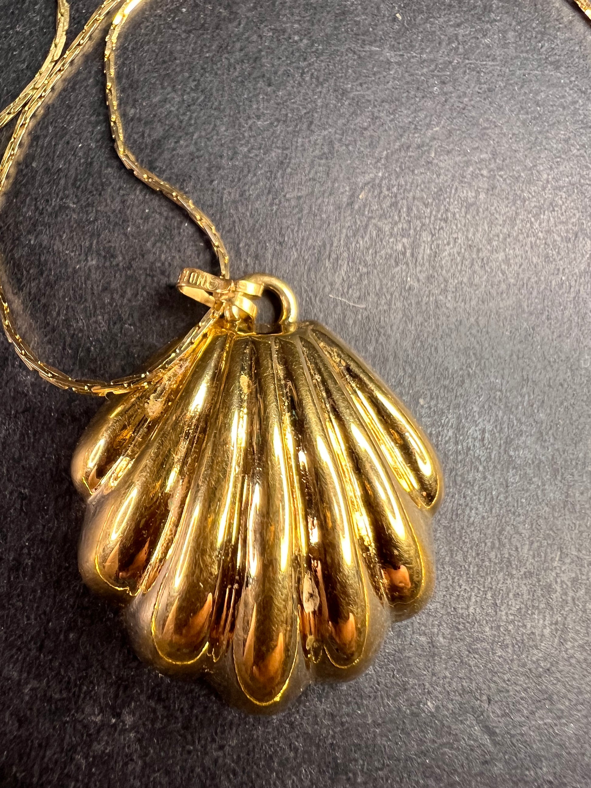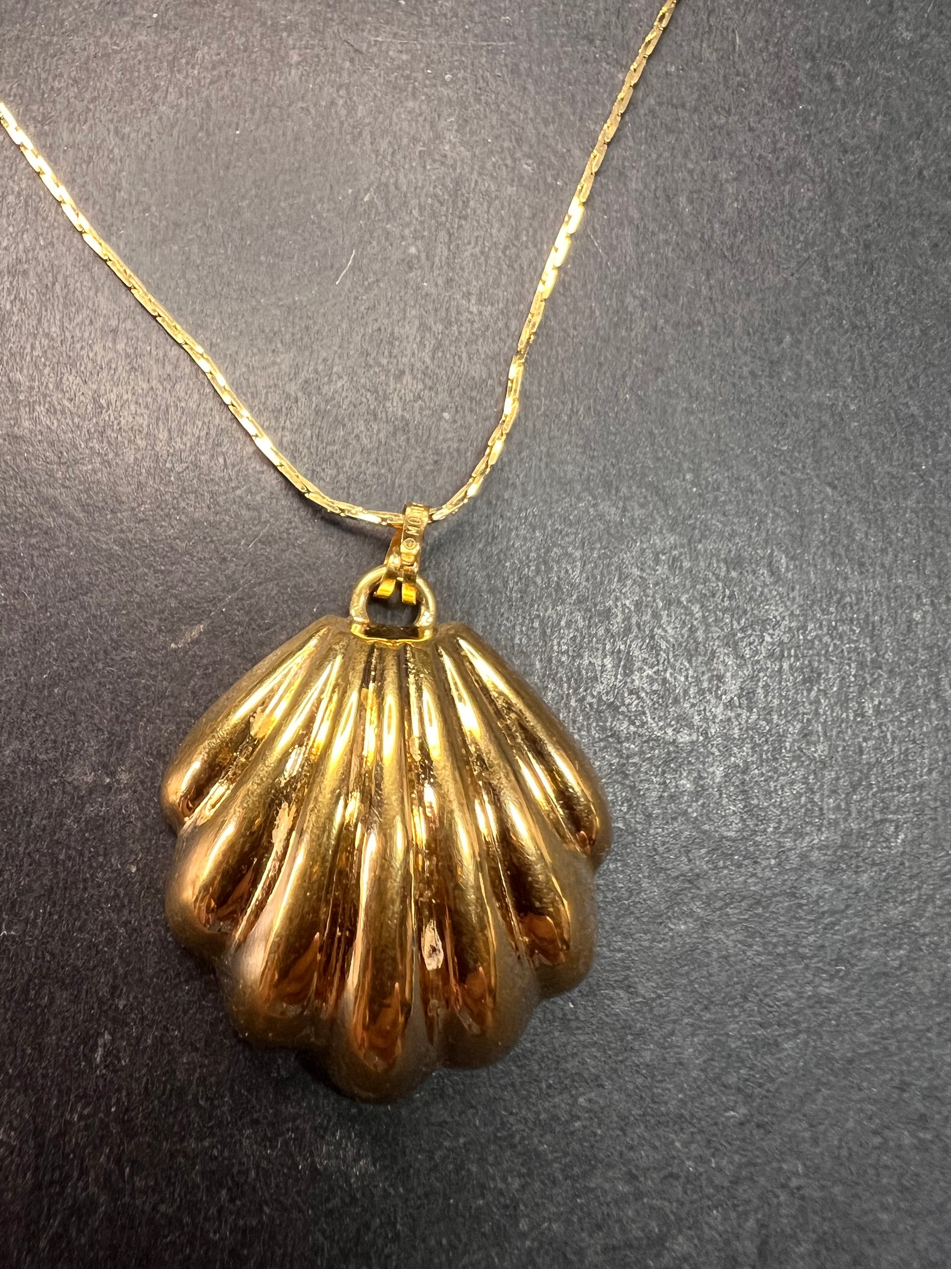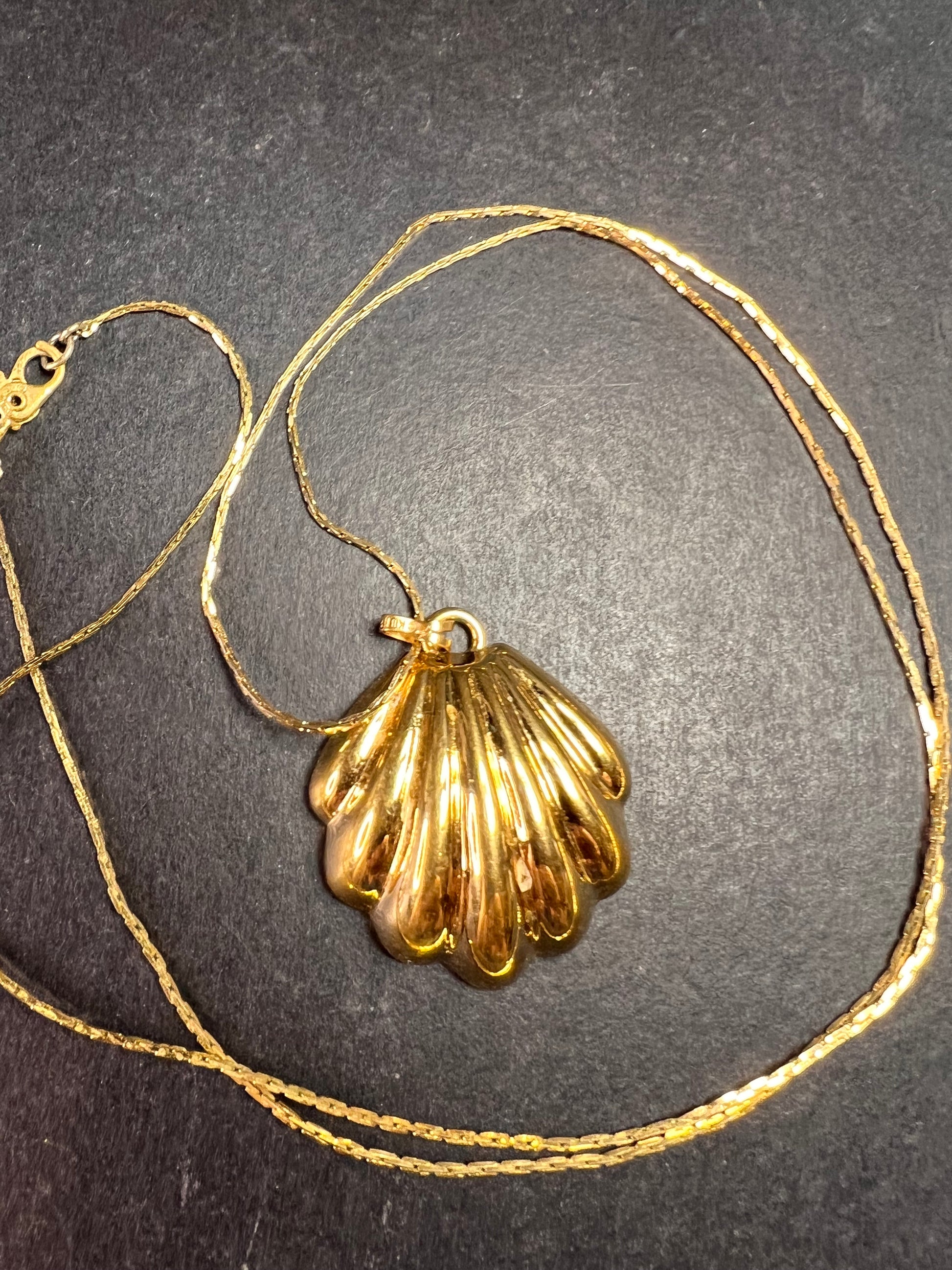 Vintage Monet Shell Pendant Necklace Gold Tone 24 Inch Coastal MCM