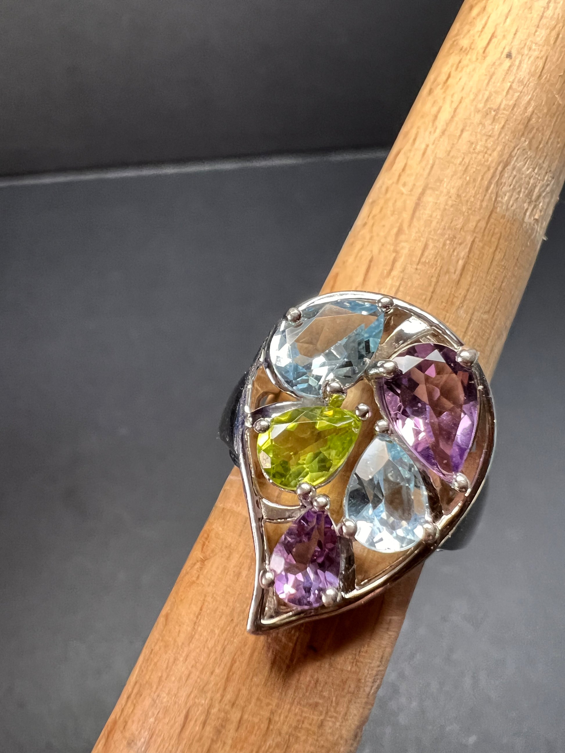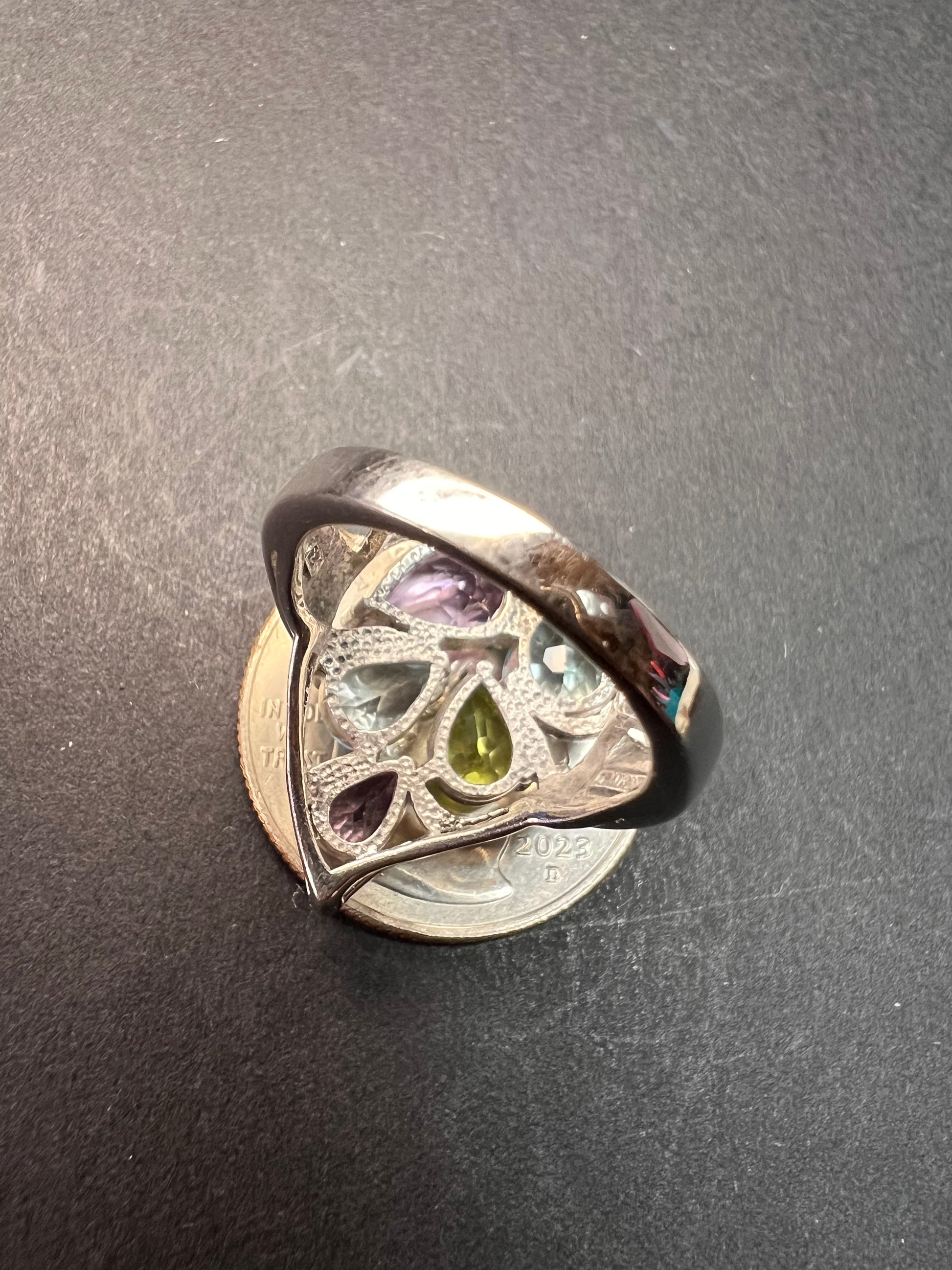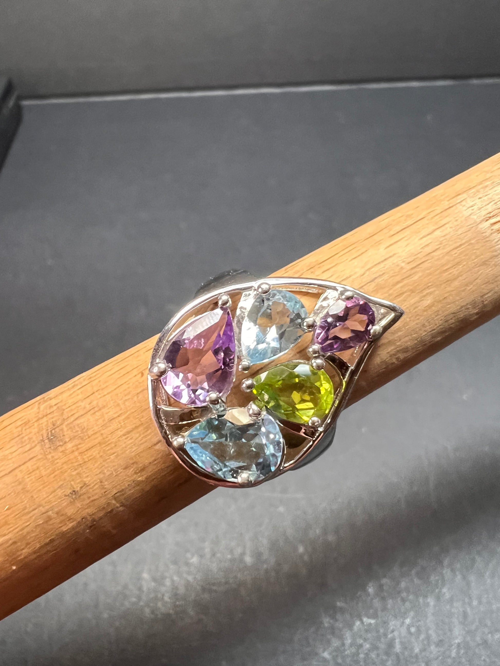Vintage multi gemstone sterling silver cluster ring size 7