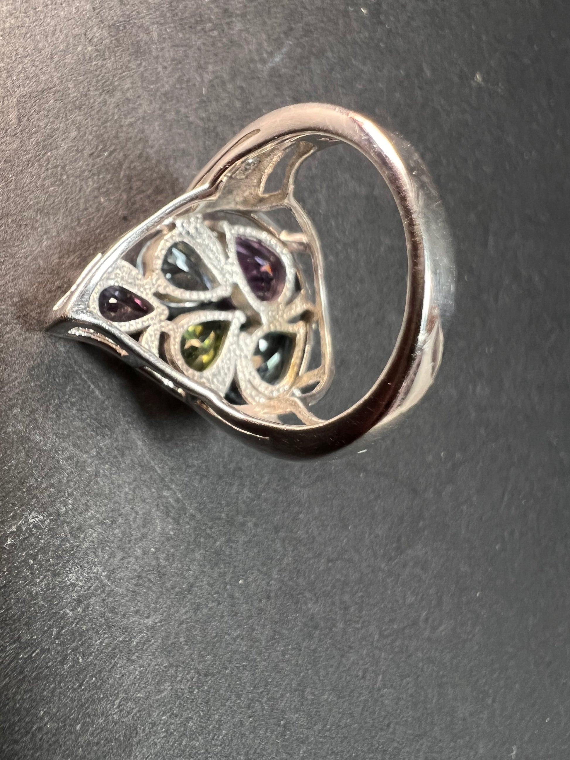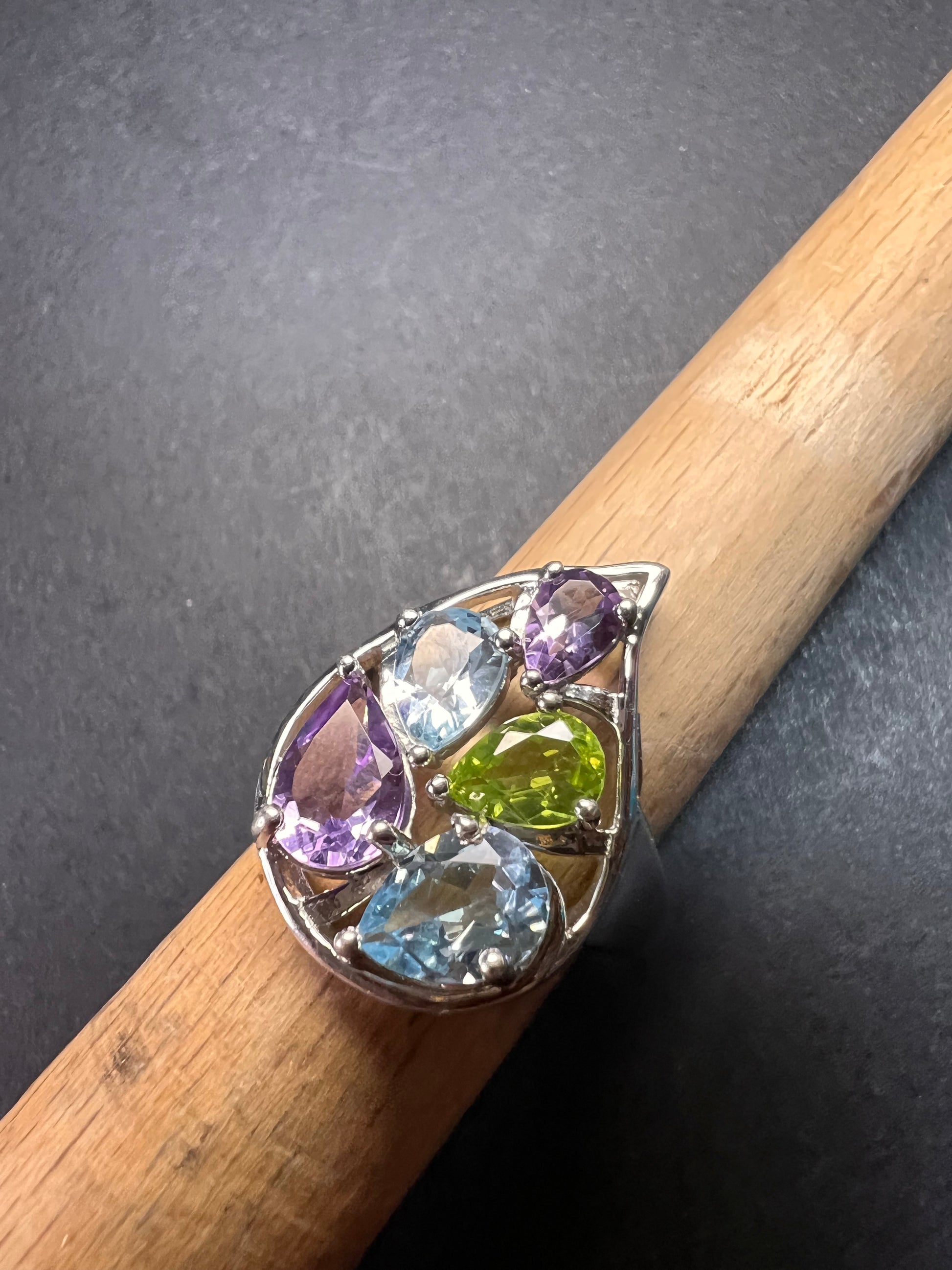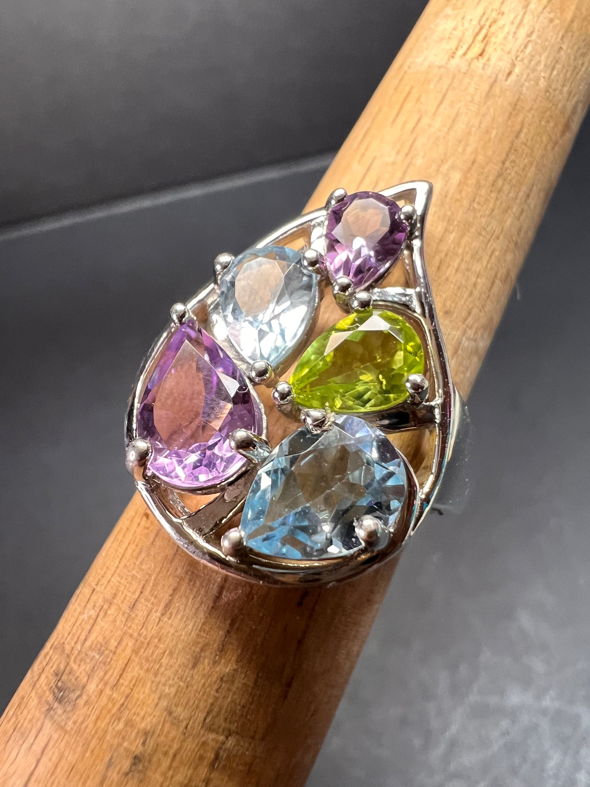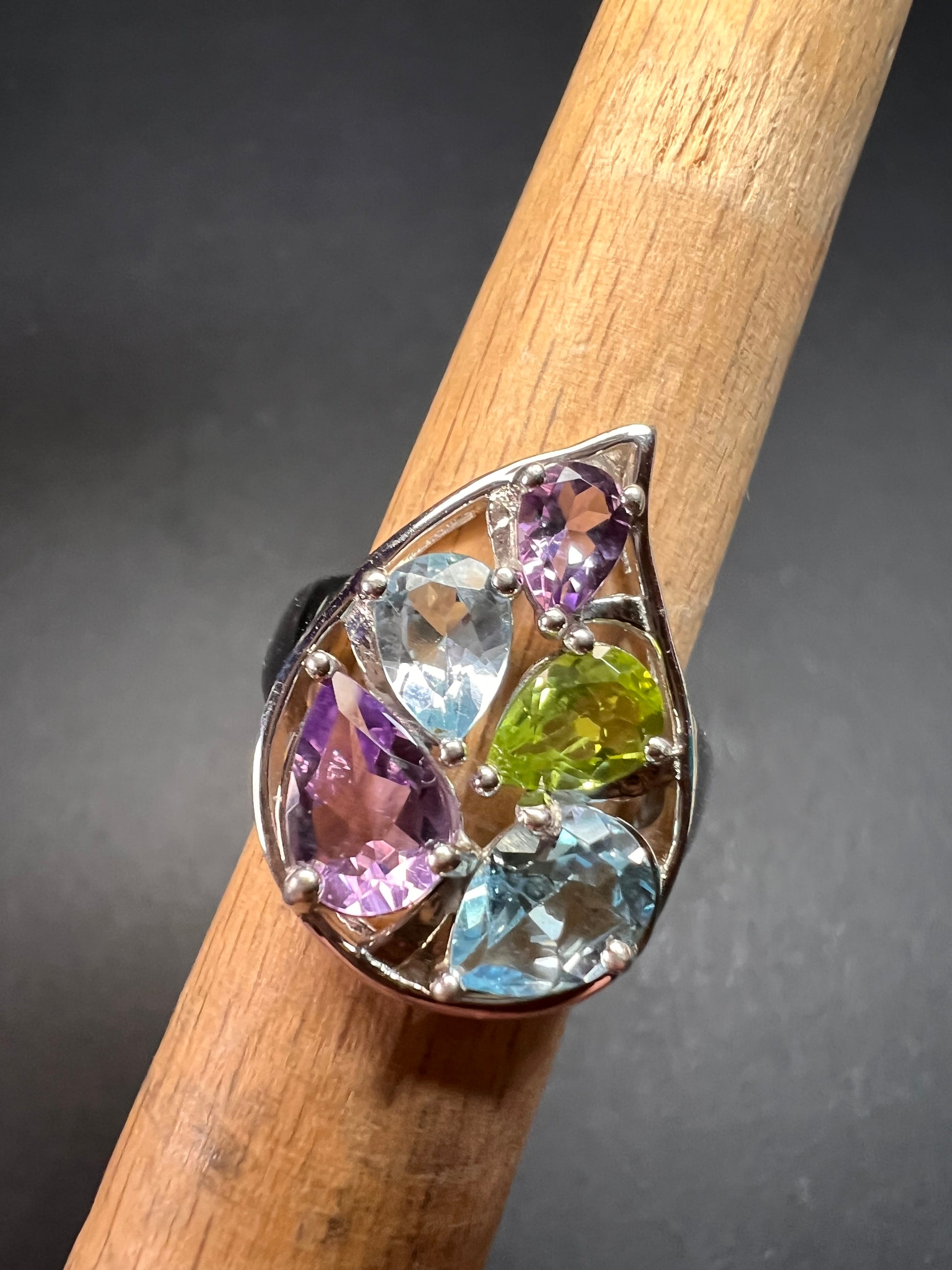 Vintage multi gemstone sterling silver cluster ring size 7