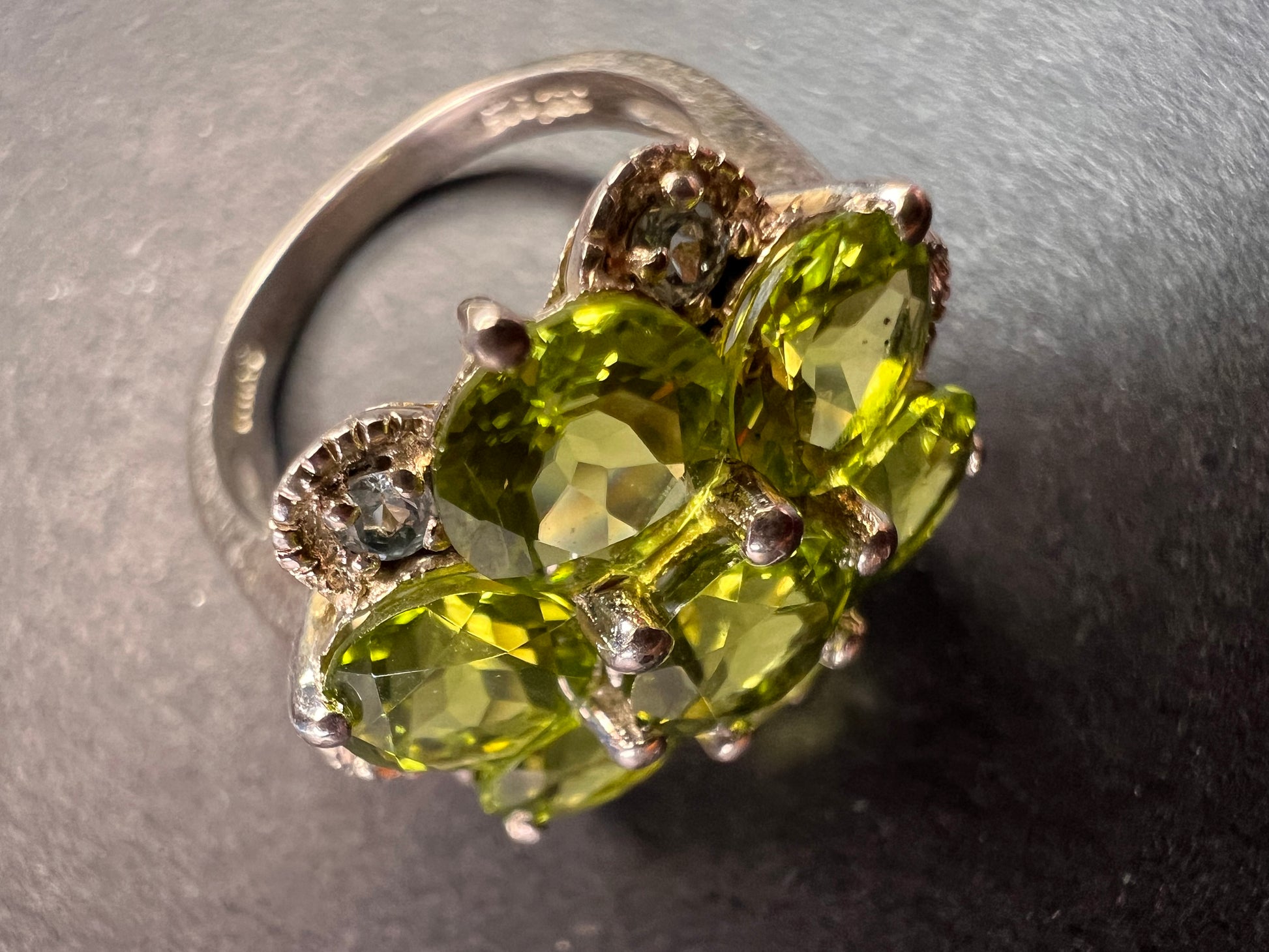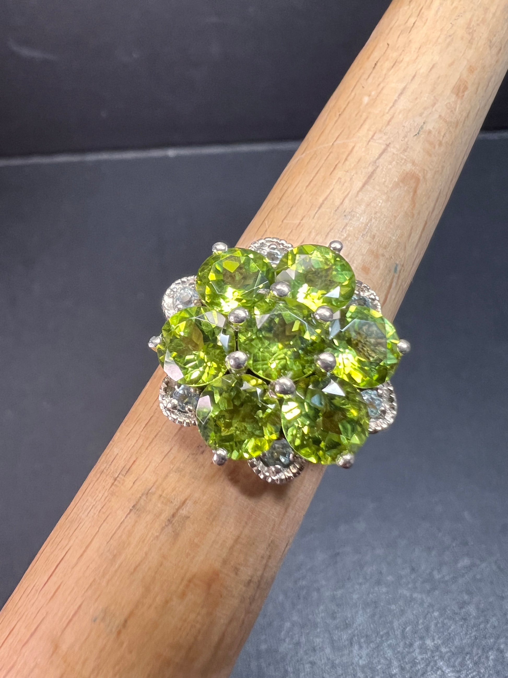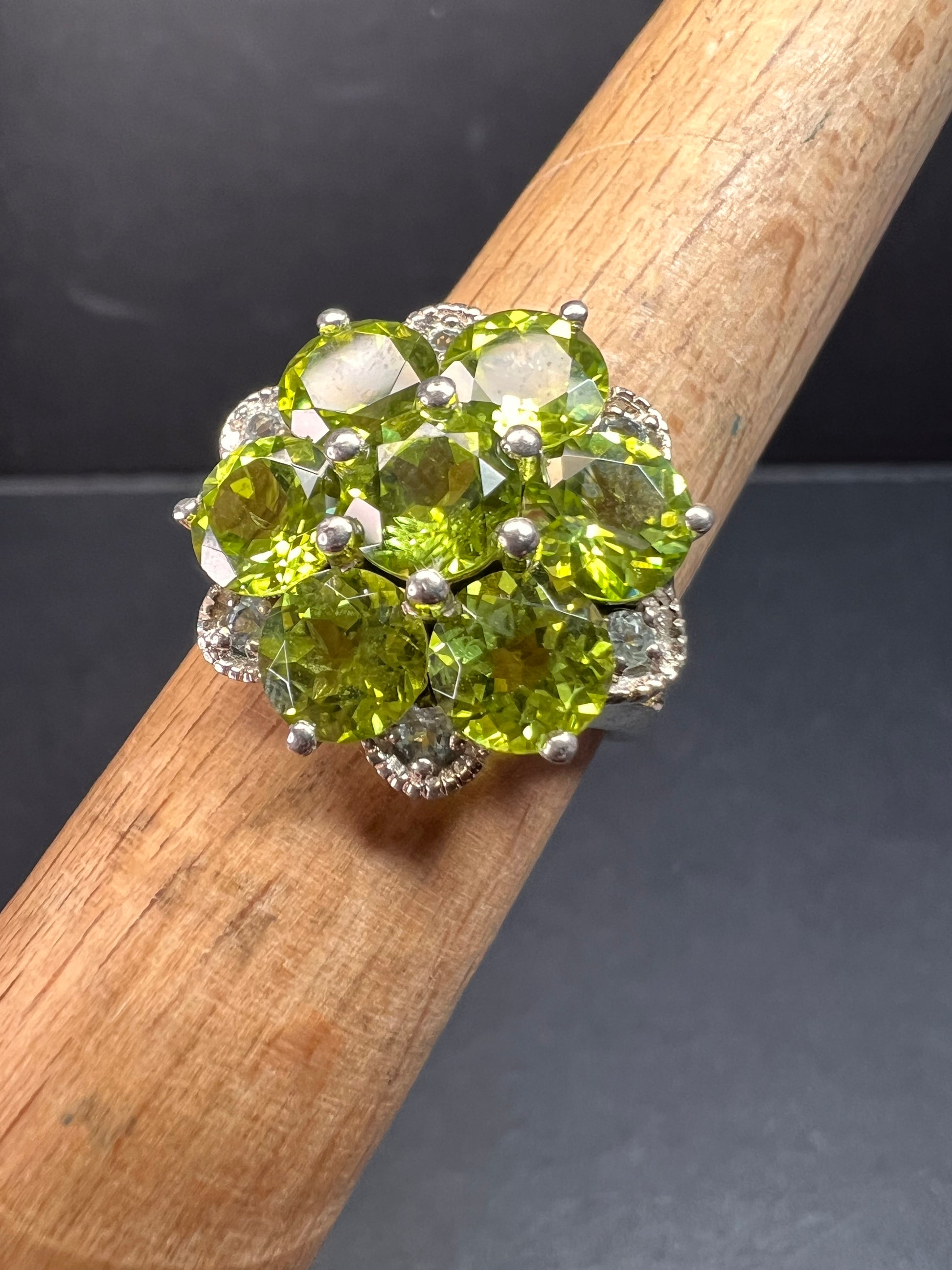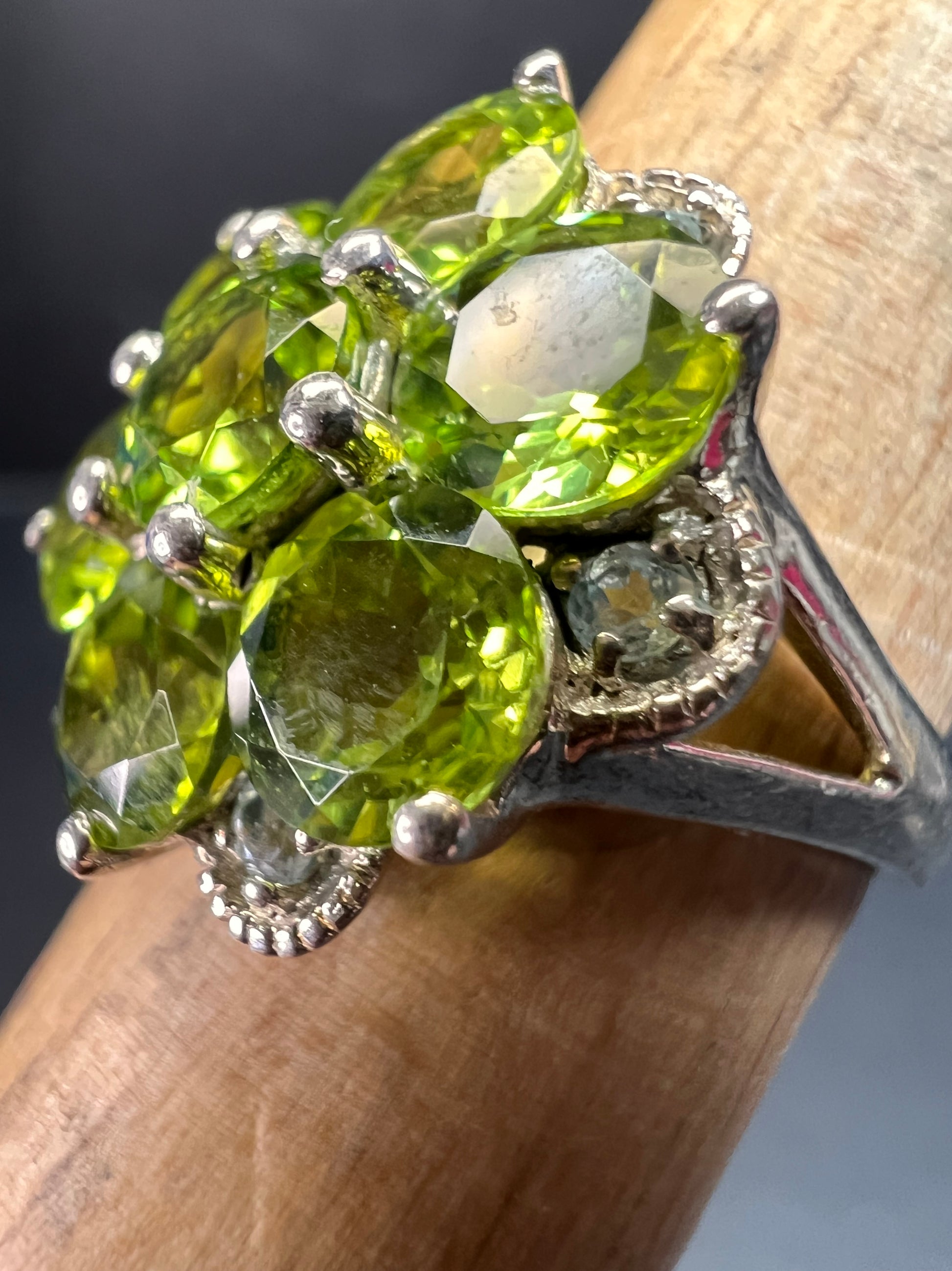 Vintage peridot and aquamarine sterling silver cluster ring size 7